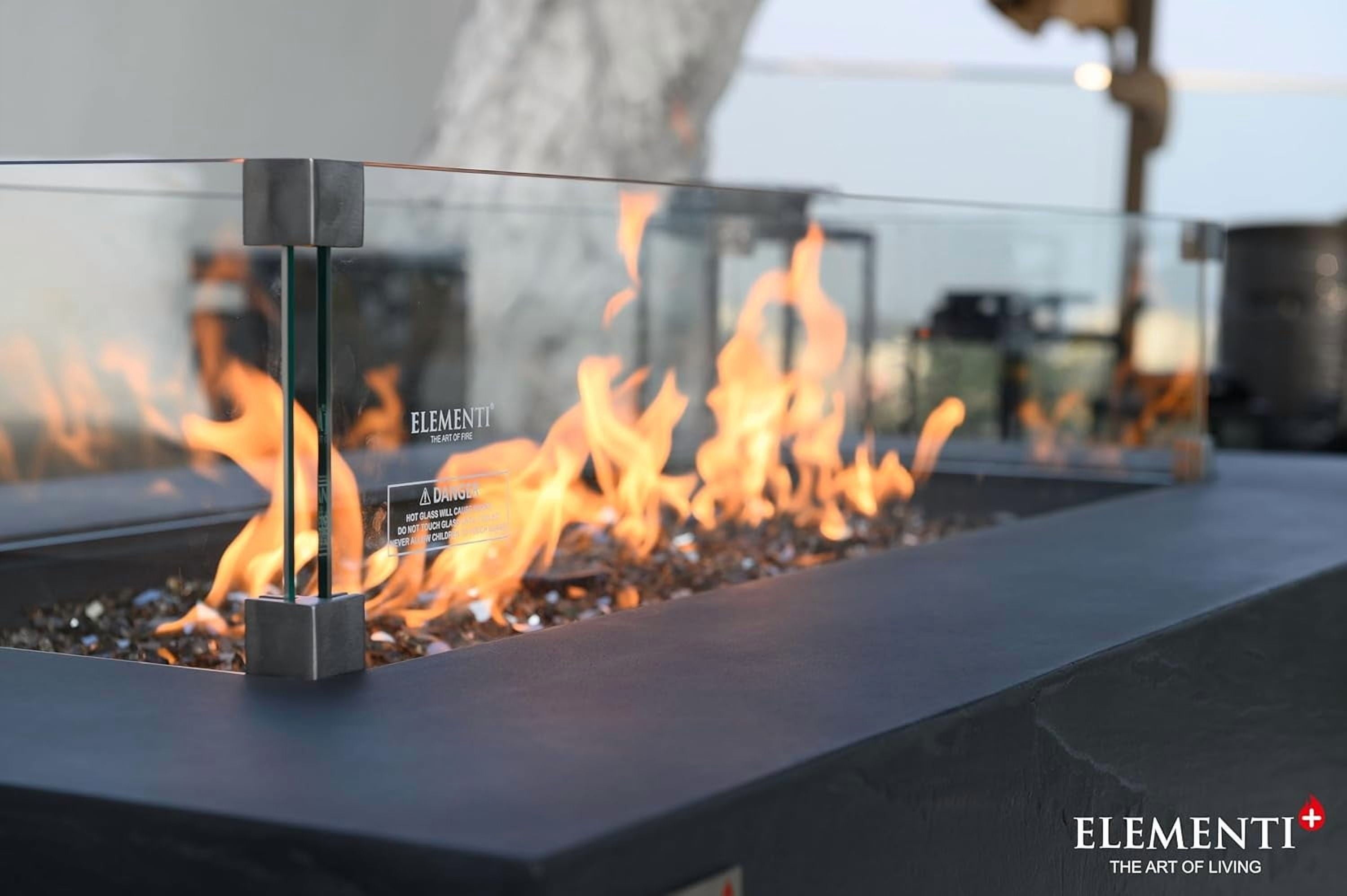 - Fire Pit Accessories Wind Guard – The rectangle fire table wind guard is a perfect fit for Riviera, Meteora, Colorado, Cape Town and Positano Fire Pit Table of Elementi+ Brand. This tempered glass wind screen fits both the natural gas and liquid propane versions keeping your firepit and your loved ones enjoying it safe.