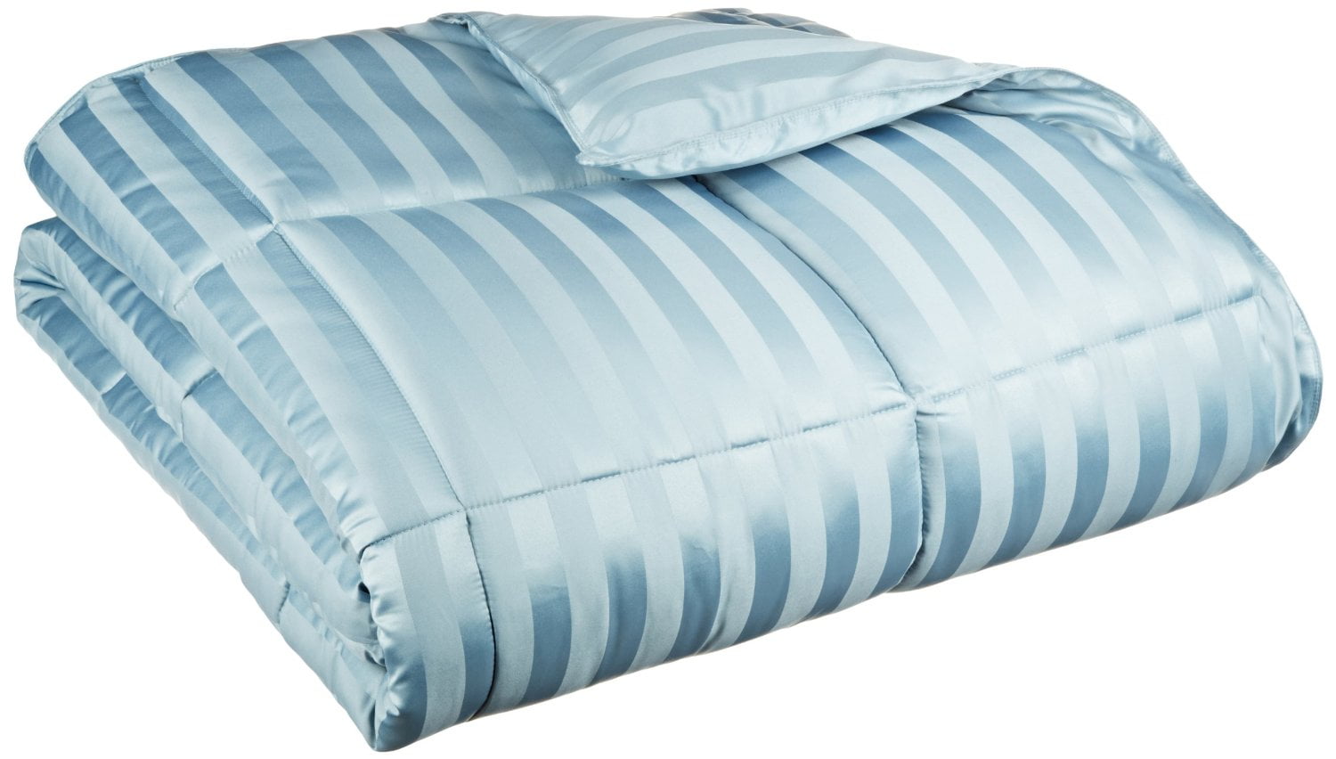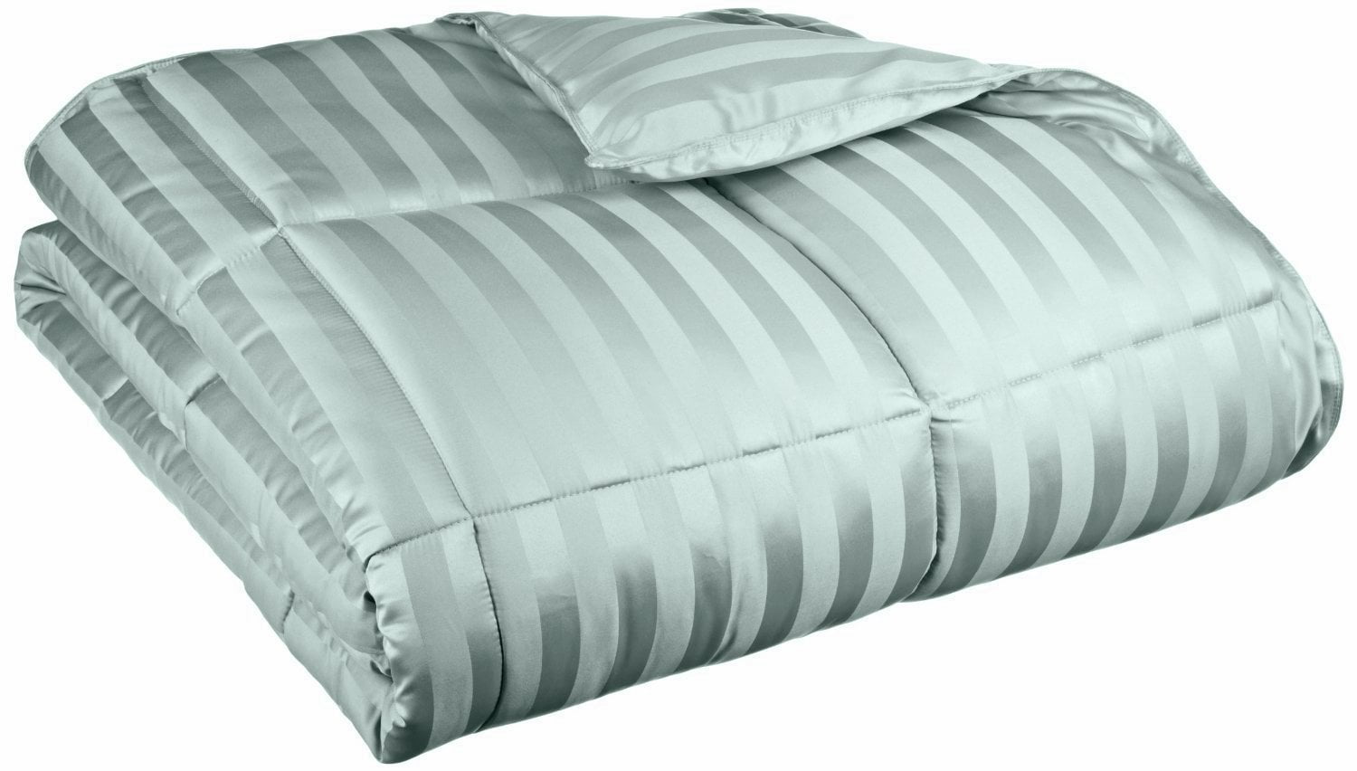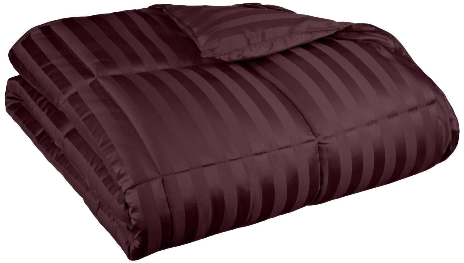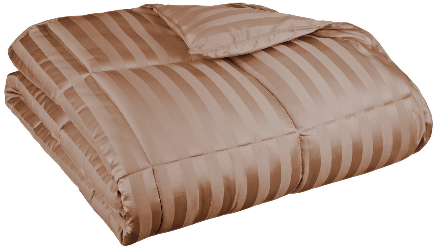 STYLE: Soft brushed comforter emulates real down in fluffiness and warmth; baffle box, double-needle stitching ensures an even fill and prevents it from shifting between boxes; wrinkle and fade-resistant sturdy comforter boasts a tonal stripe pattern