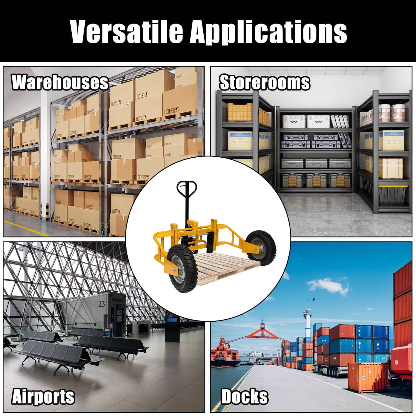 Suitable for warehouses, workshops, trucking, home furniture moving, retail stacking, airports, docks, distribution centers, construction sites, grocery stores, etc.