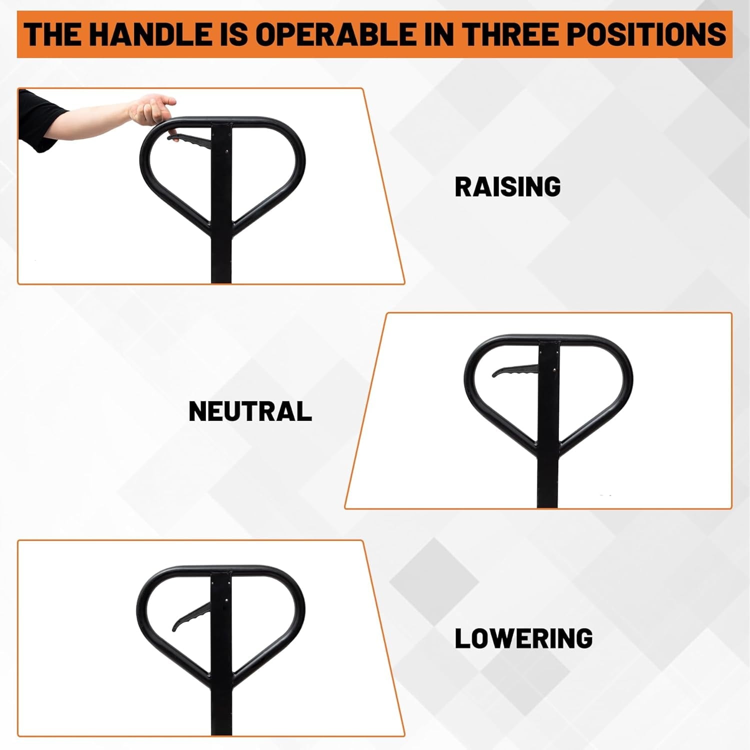 Three position handle( up, down, and neutral) make it easy to operate.
