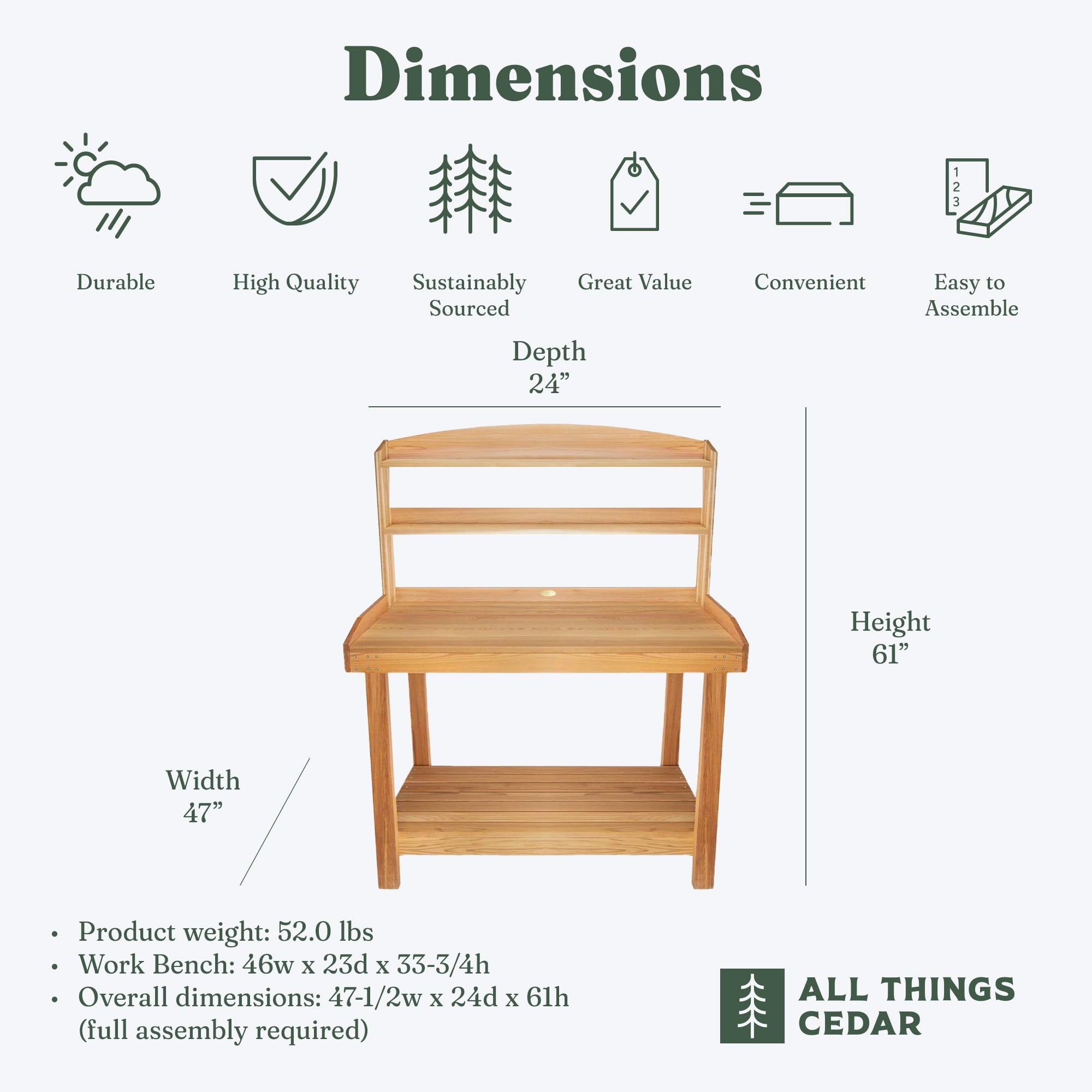 This gardening station is a striking centerpiece in any backyard, patio, or porch. Whether you’re potting seedlings, propagating cuttings, or simply admiring your handiwork, the All Things Cedar Deluxe Potting Bench is your dedicated partner in cultivating a thriving outdoor sanctuary.
