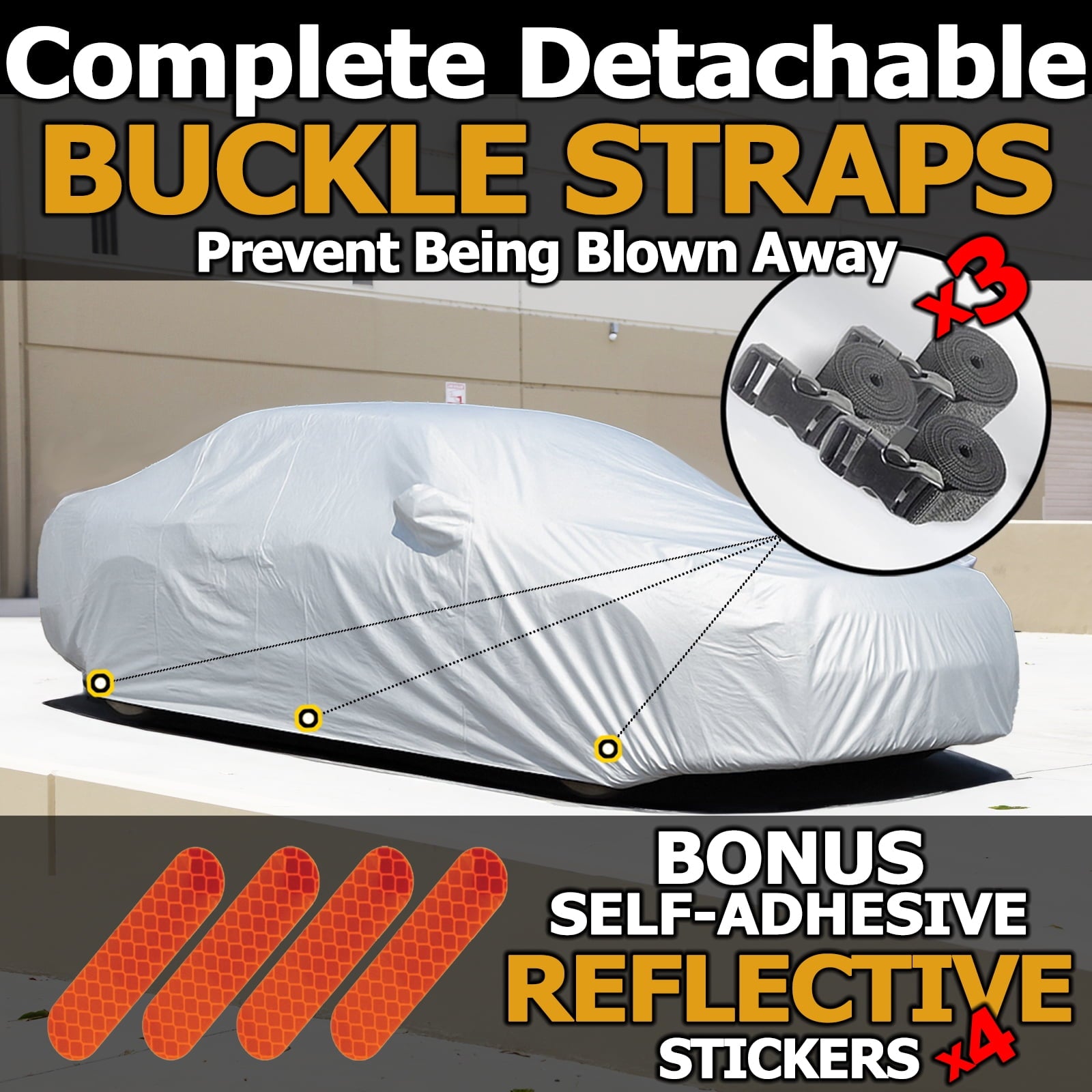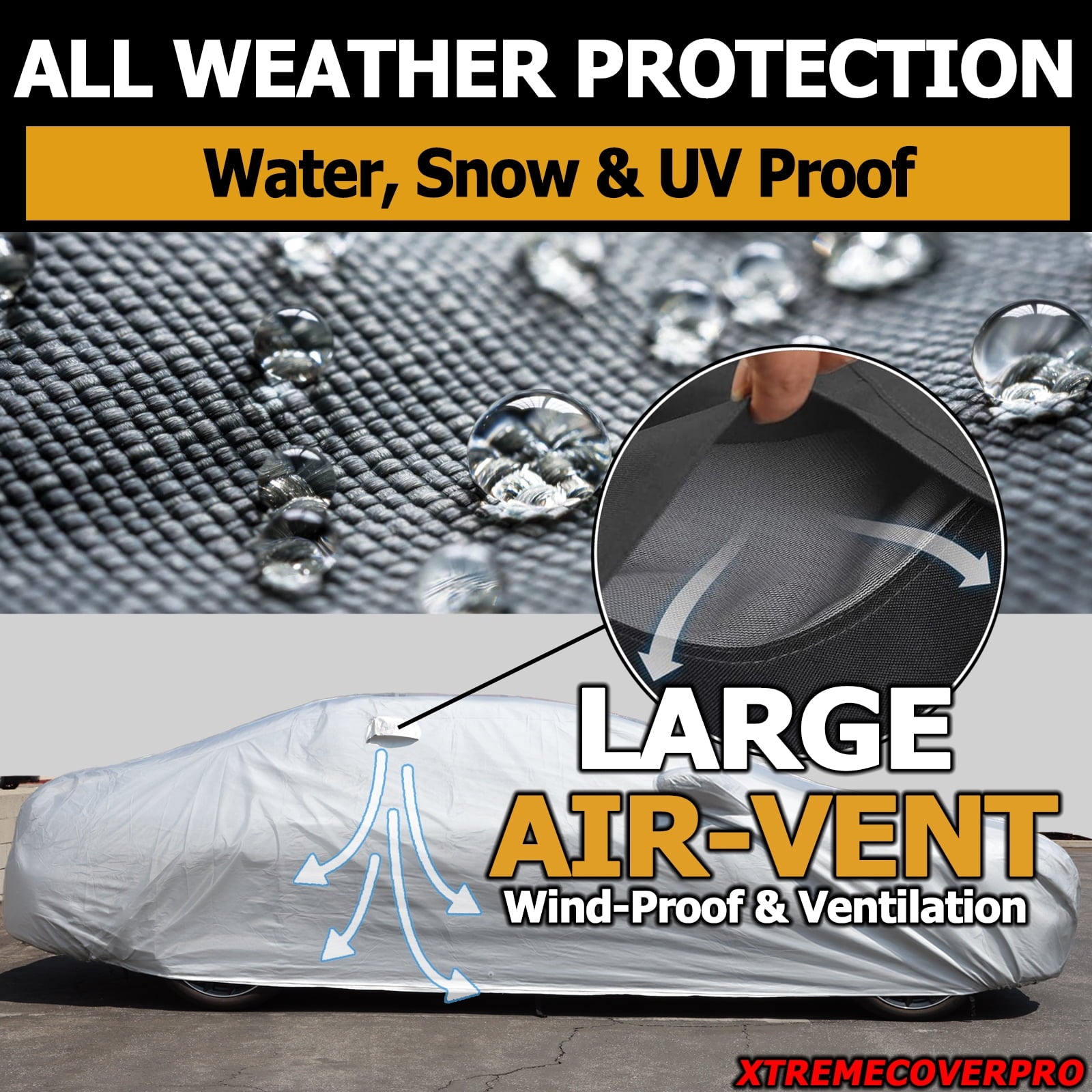 - 100% wind-proof design: Front and rear under body Elastic Hems. 3 detachable straps in front, middle, and rear of the cover. Large air-vent for ventilation