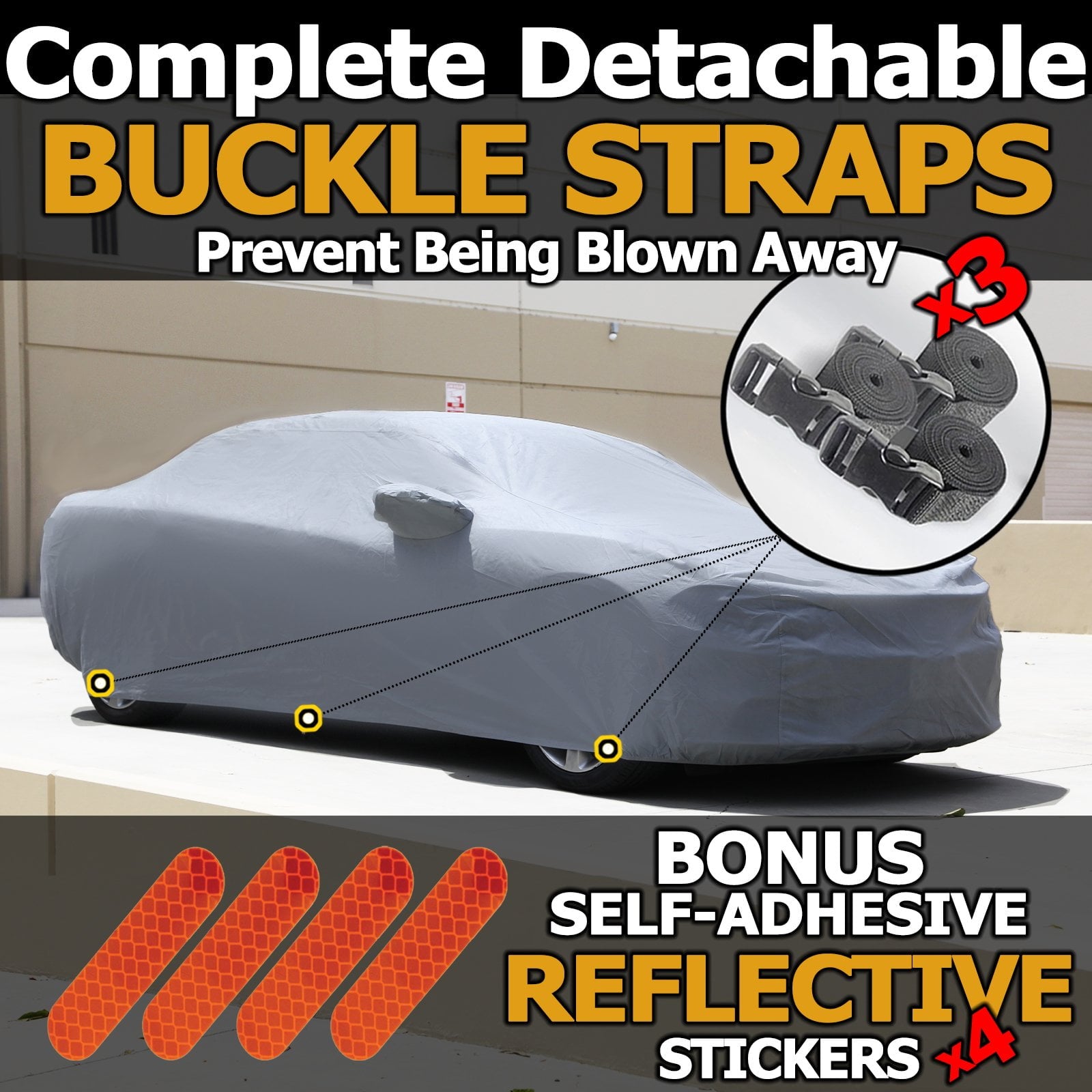 - 100% wind-proof design: Front and rear under body Elastic Hems. 3 detachable straps in front, middle, and rear of the cover. Large air-vent for ventilation
