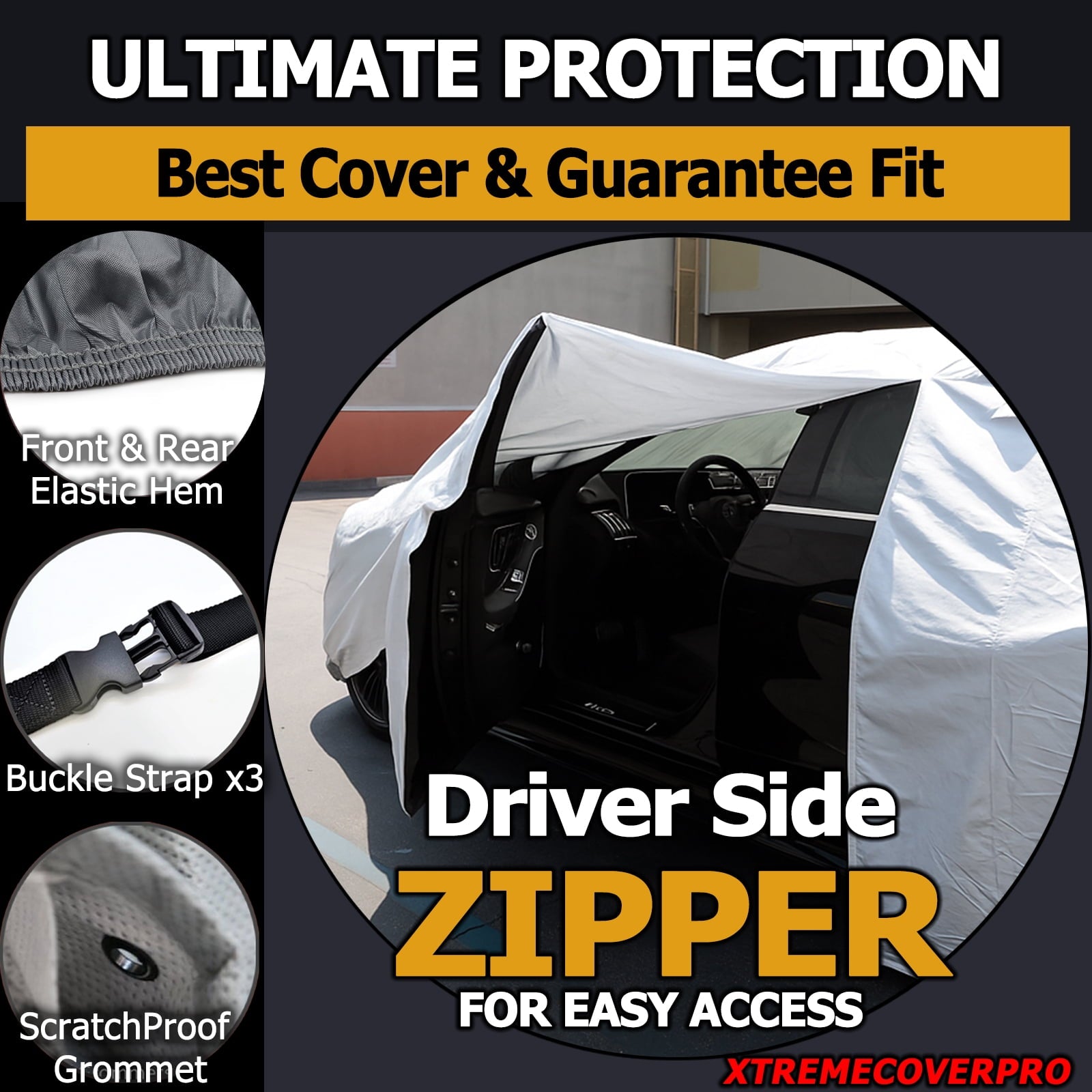- 100% Waterproof & Weatherproof: Our covers offer a multi-layered shield for your vehicle. The outer layer is robust, waterproof, and scratch-resistant, ensuring your car is well protected. The inner layer is made of soft dustproof cotton, providing a gentle touch on your car’s surface. All this makes it foldable & easy to store
