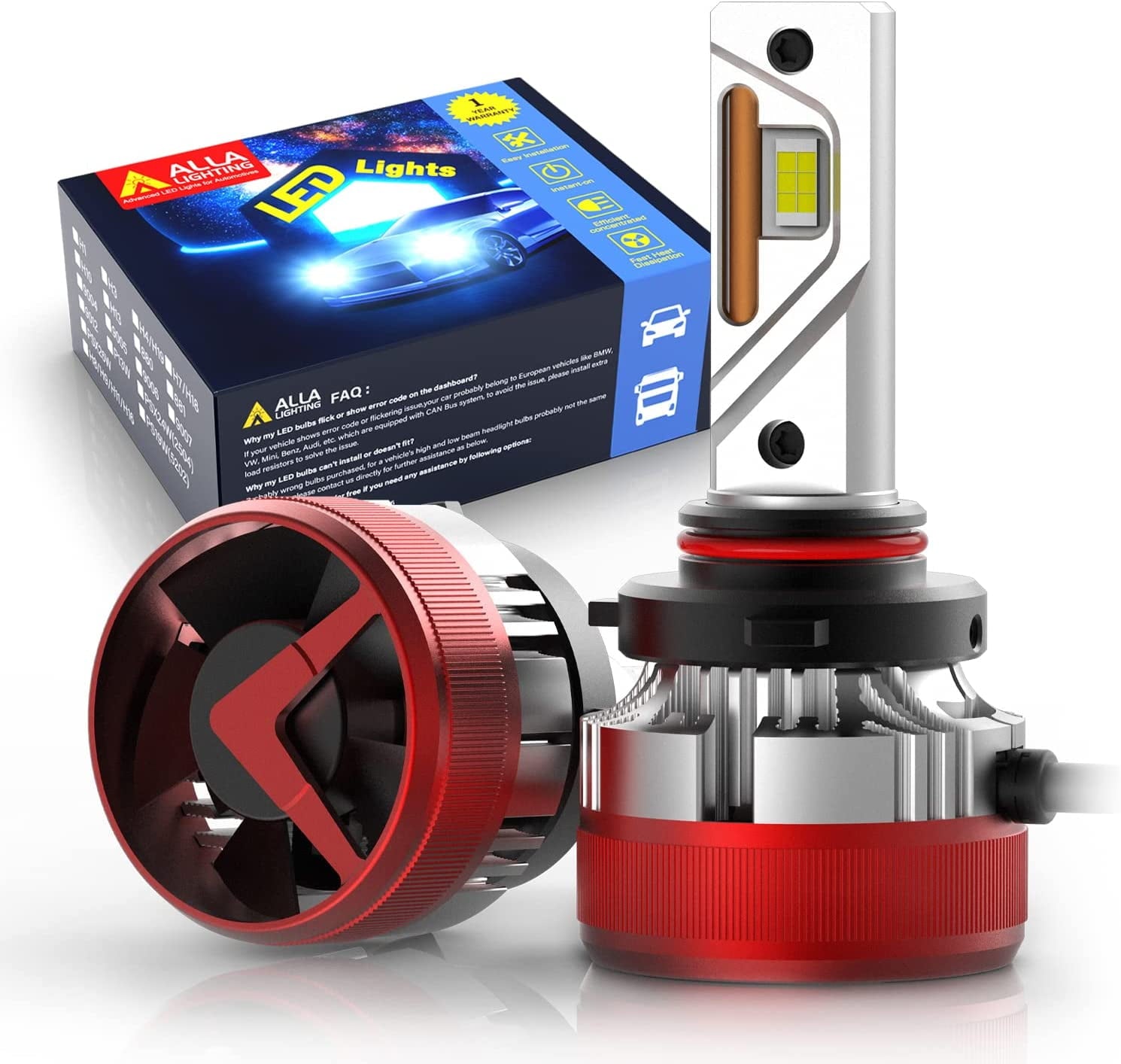 Packages: Includes one pair (2pcs) Alla Lighting CSP 7035 version HB3/9005 LED headlights bulbs replacement for cars, trucks.