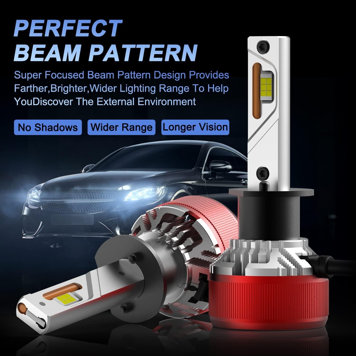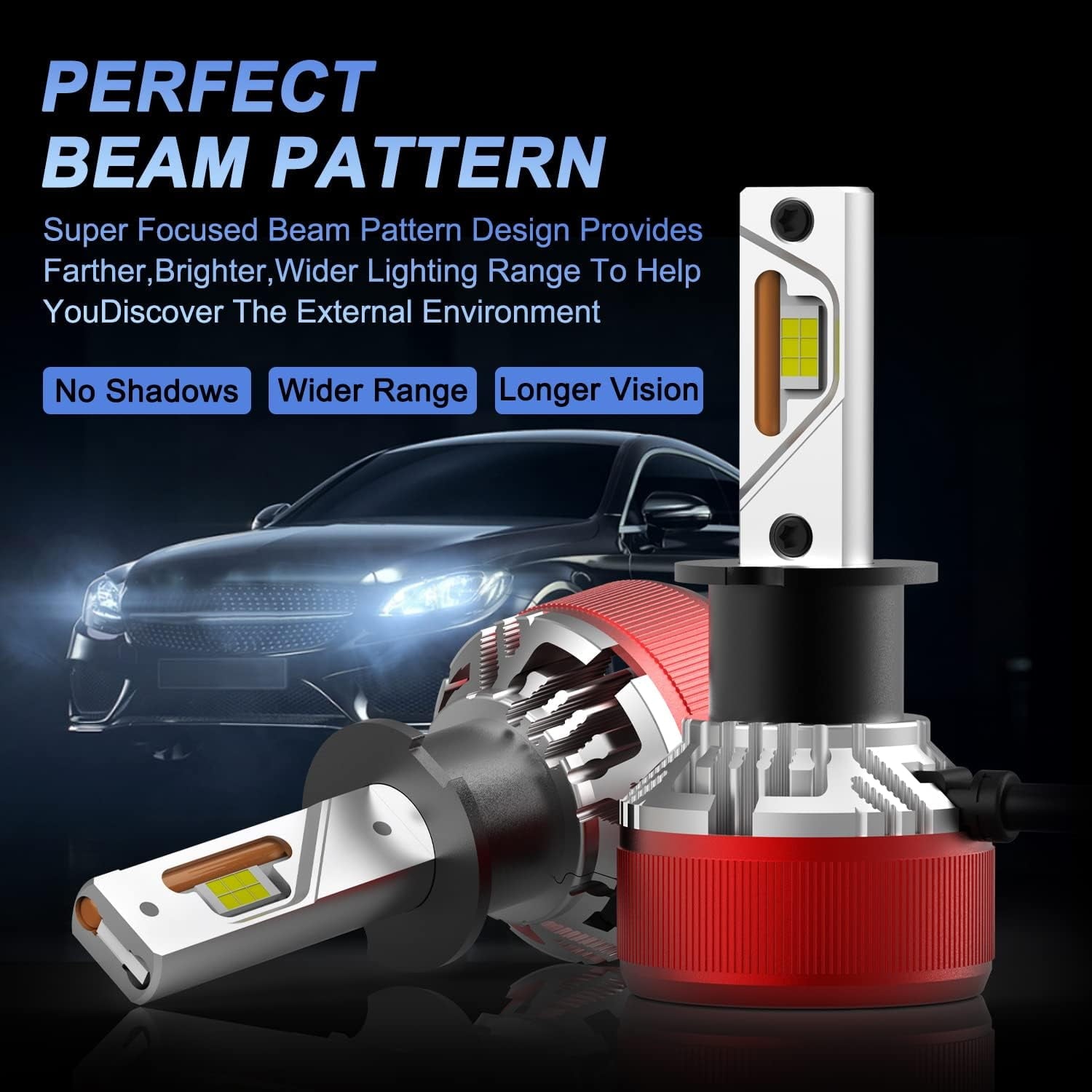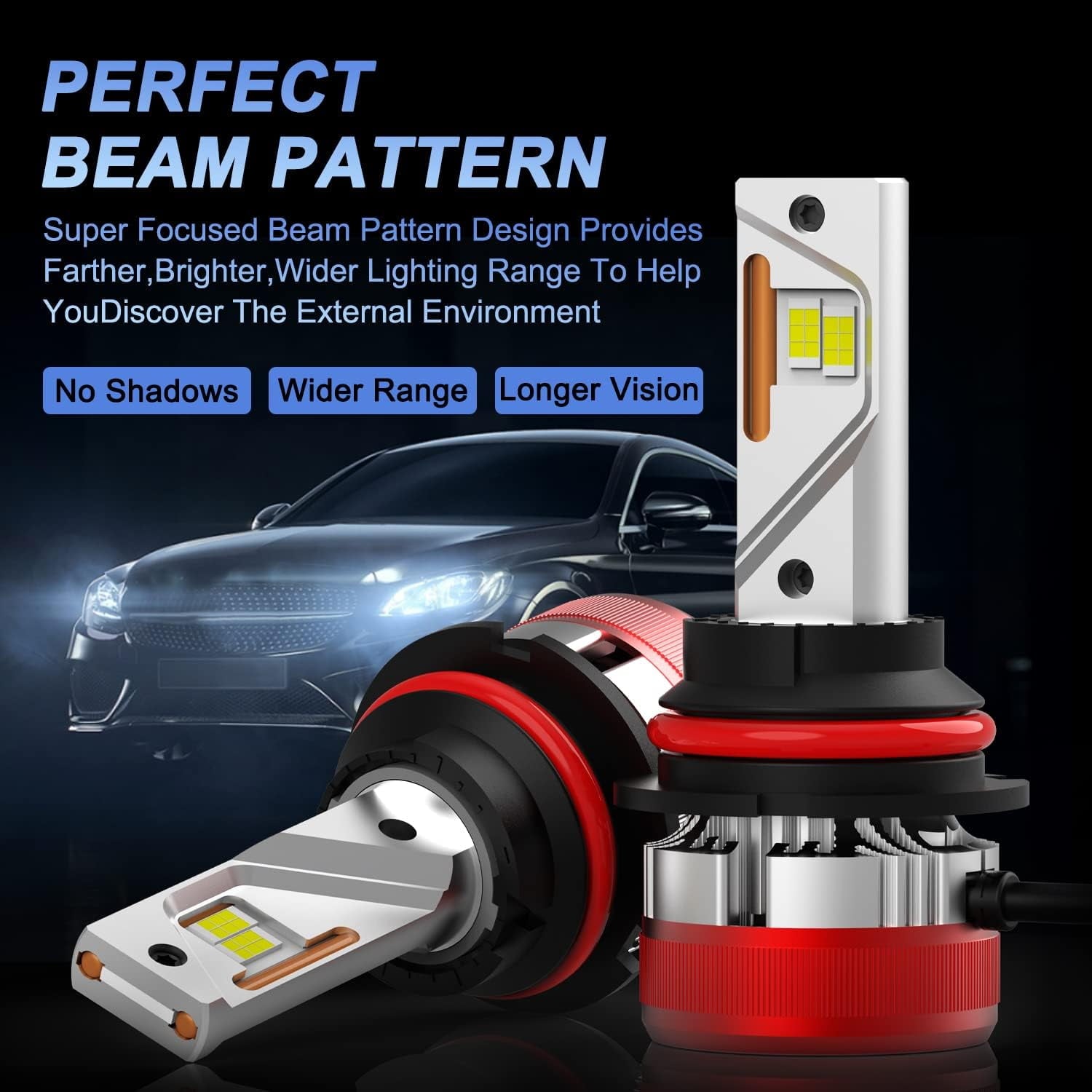 • (Set of 2) High illumination light output w/ perfect beam pattern: 6000 Lumens per HB3 9005 LED Headlight bulb, total 12000Lms for both HB3/9005 LED headlights bulbs of passenger and driver side witout dark pot.