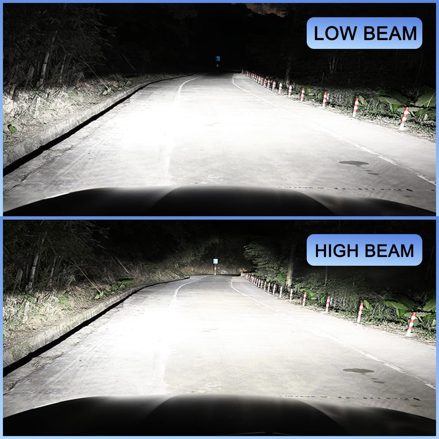 Light Output: Each HB3 9005 LED headlights bulbs light up to 6000 Lumens, total 12000 Lumens for both HB3 9005 LED headlights bulbs.