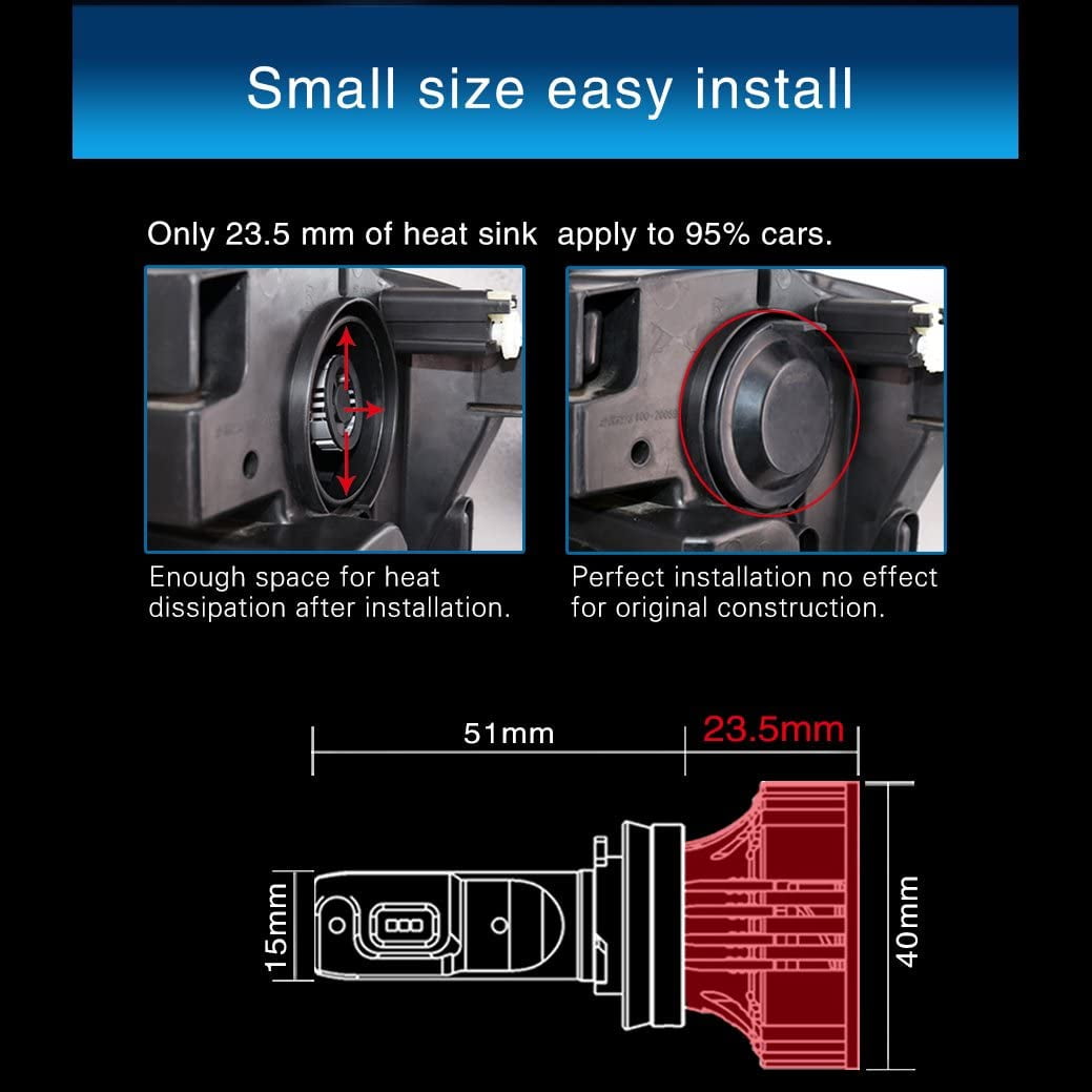 High illumination light: Each H11 LED Beam bulb light output will be up to the maximum 4500 lumens in perfect condition (total 9000 lumens in total for both H11 led Beam bulbs.