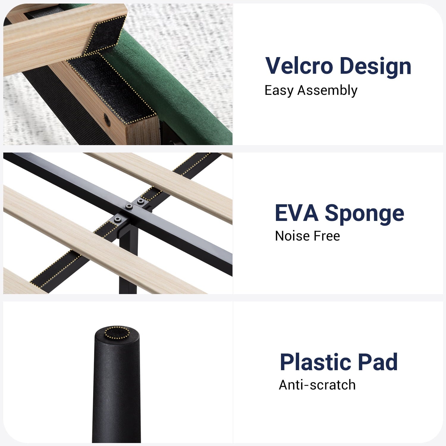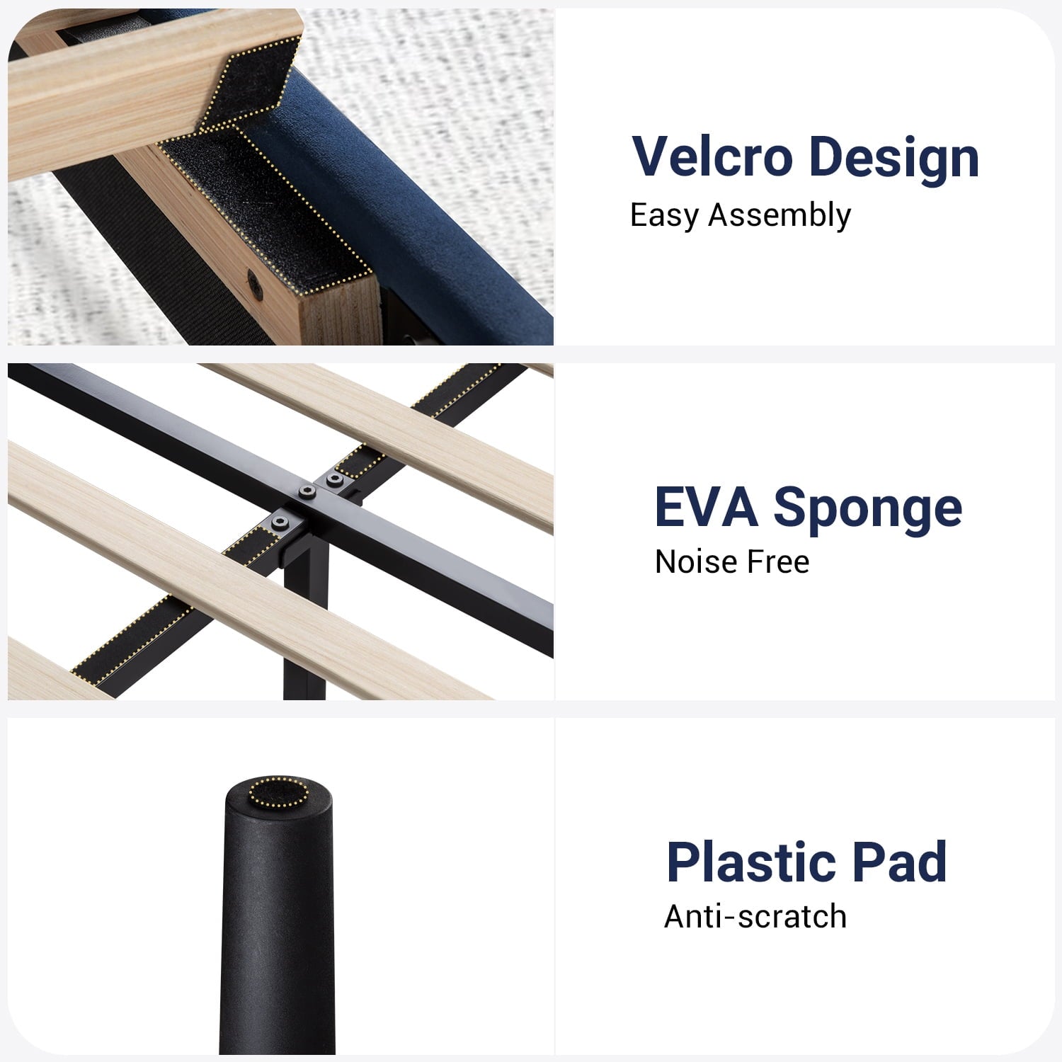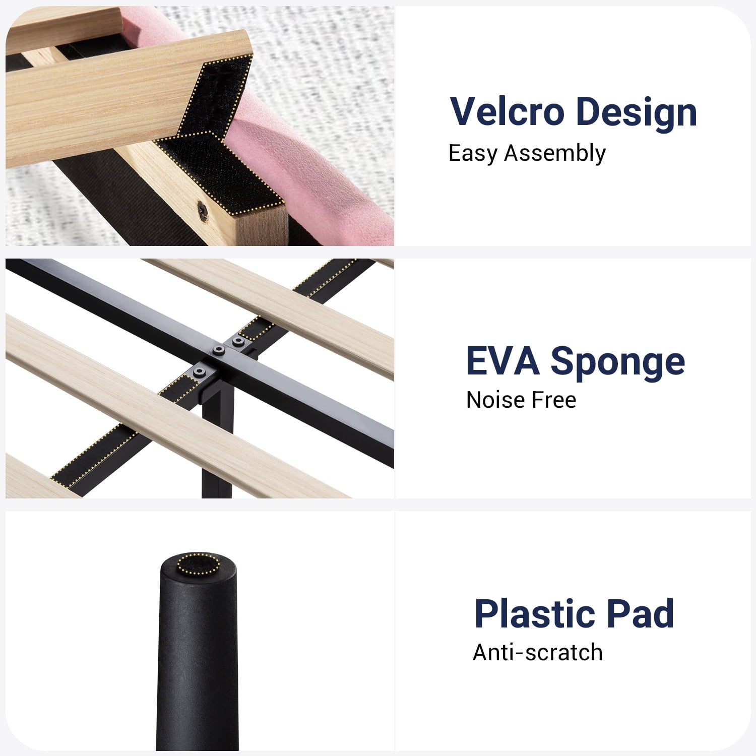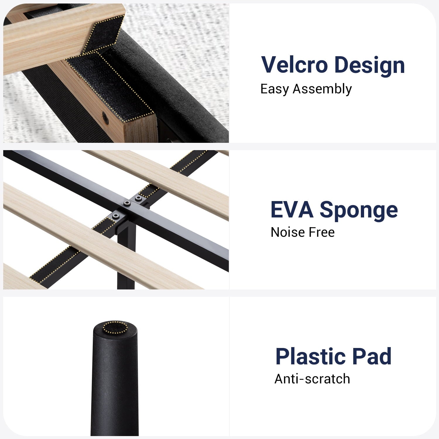 - Quiet Sleep: Foam padded tape and thick wood slats to the steel bed frame for noise-free use. Also, strong support legs to enjoy every silent second for a good night’s sleep.