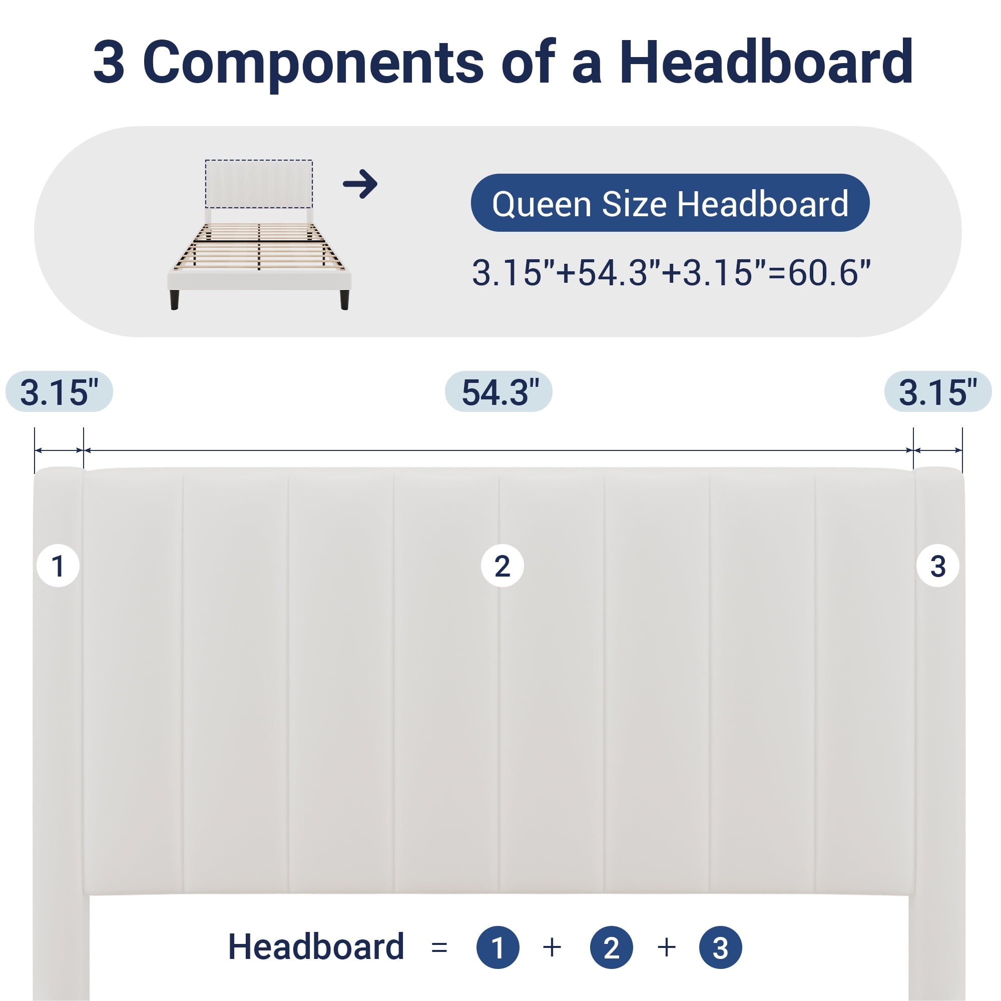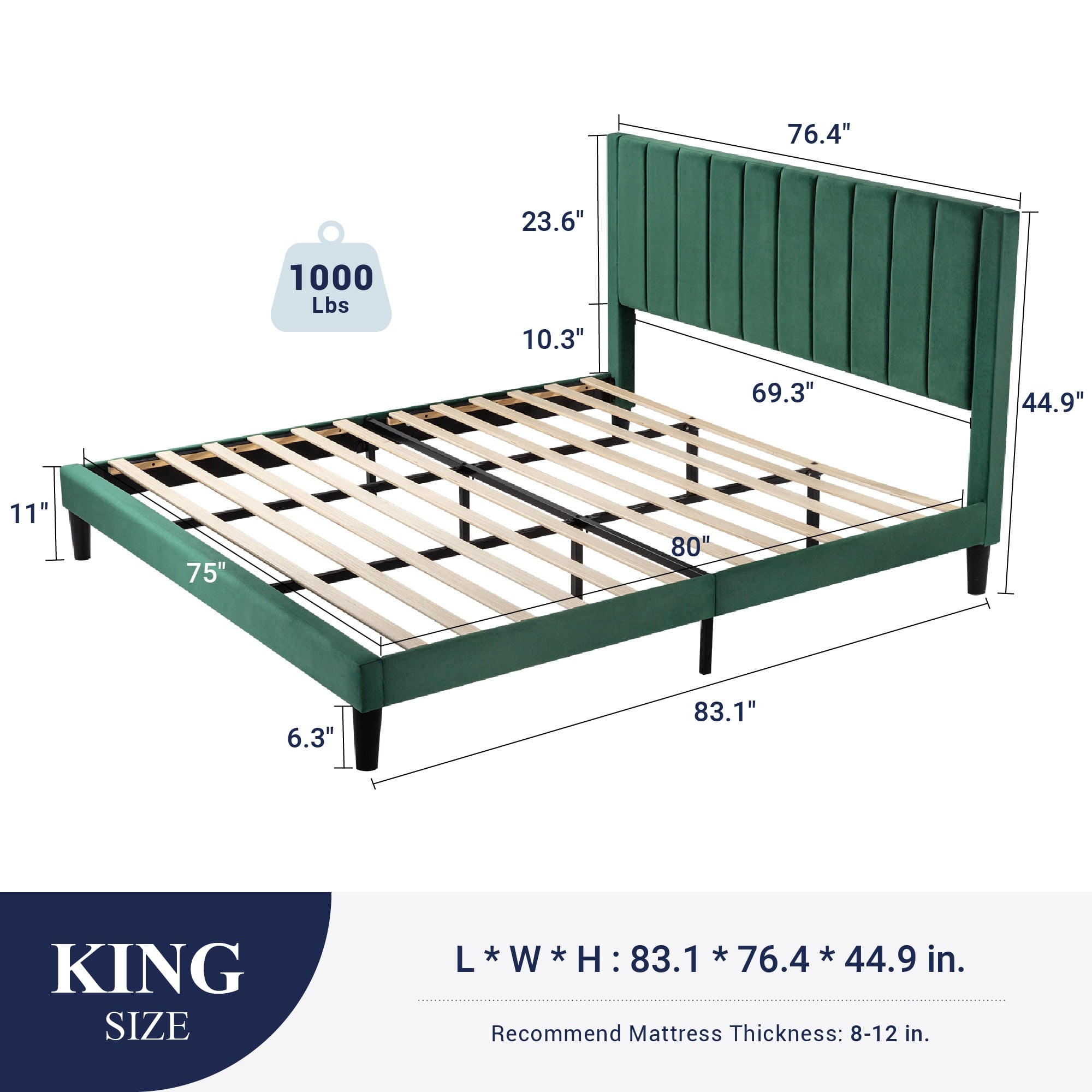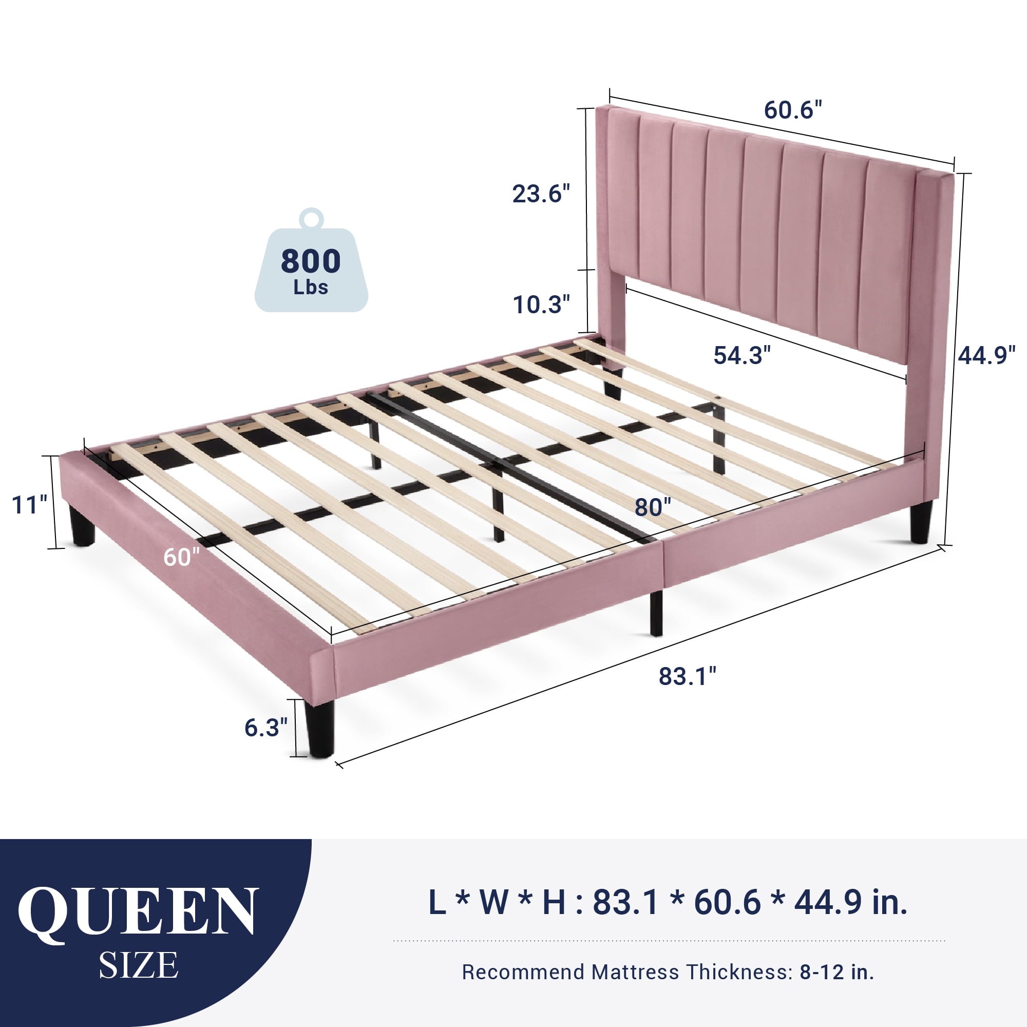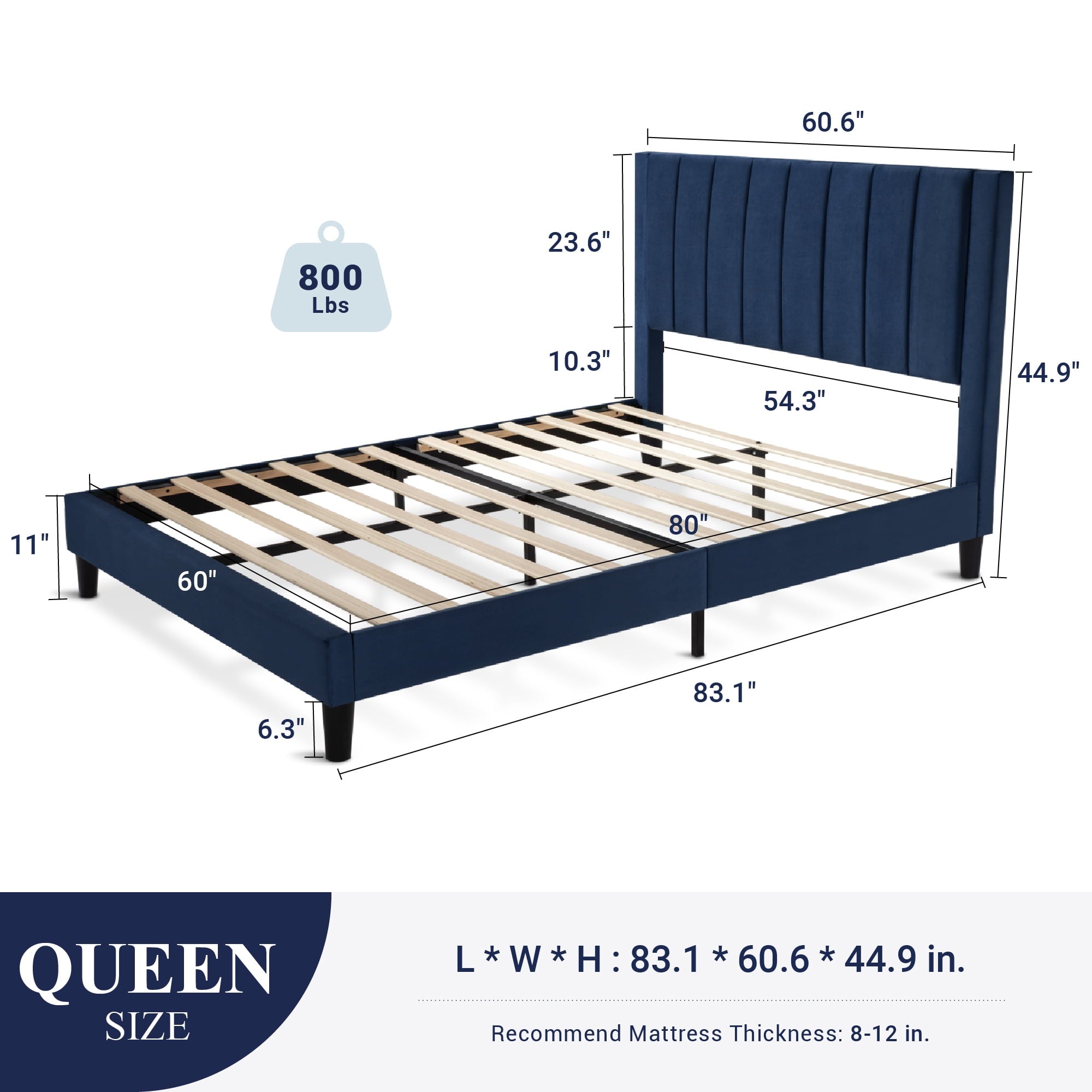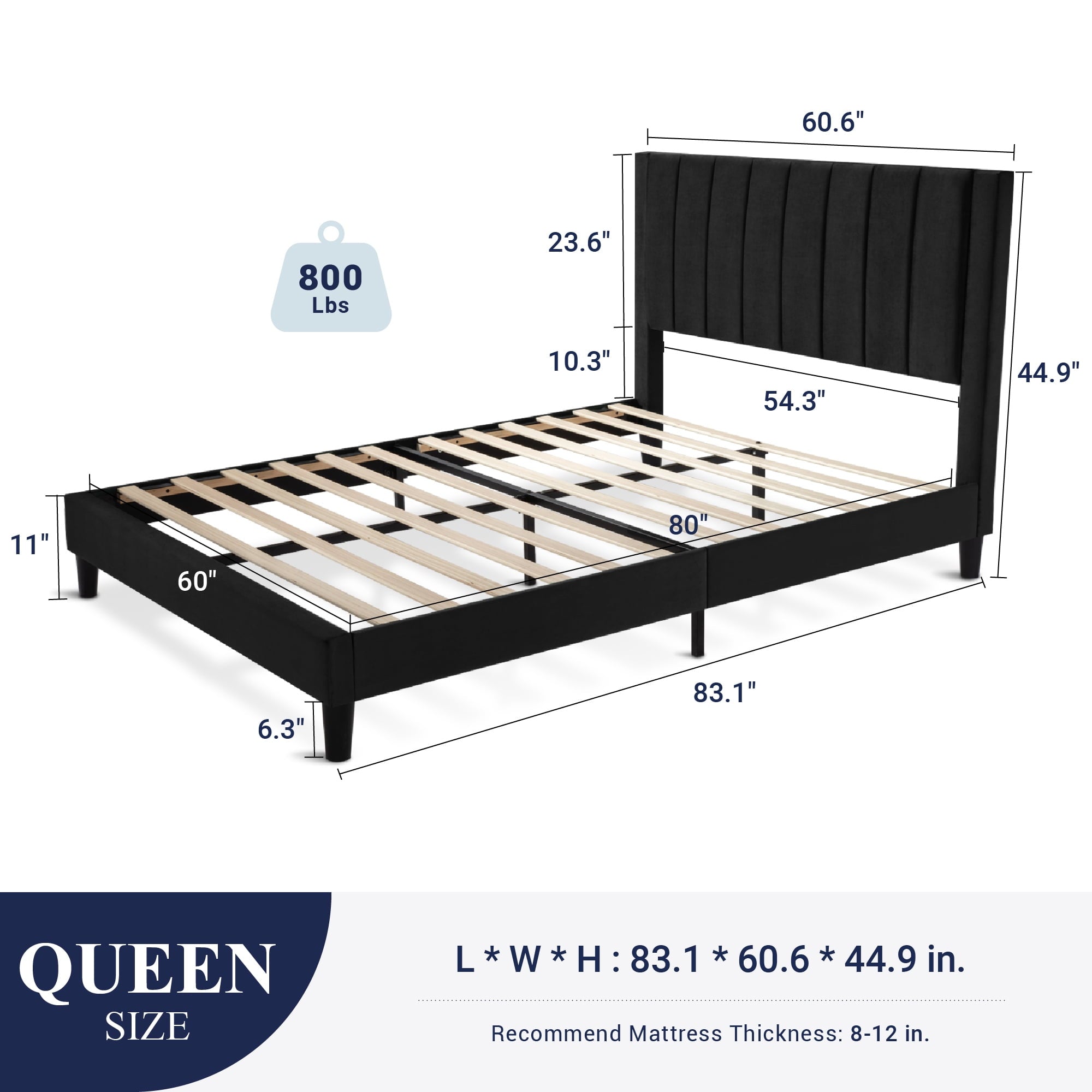 - Queen Size Dimension: 83.1″ L x 60.6″ W x 44.9″ H