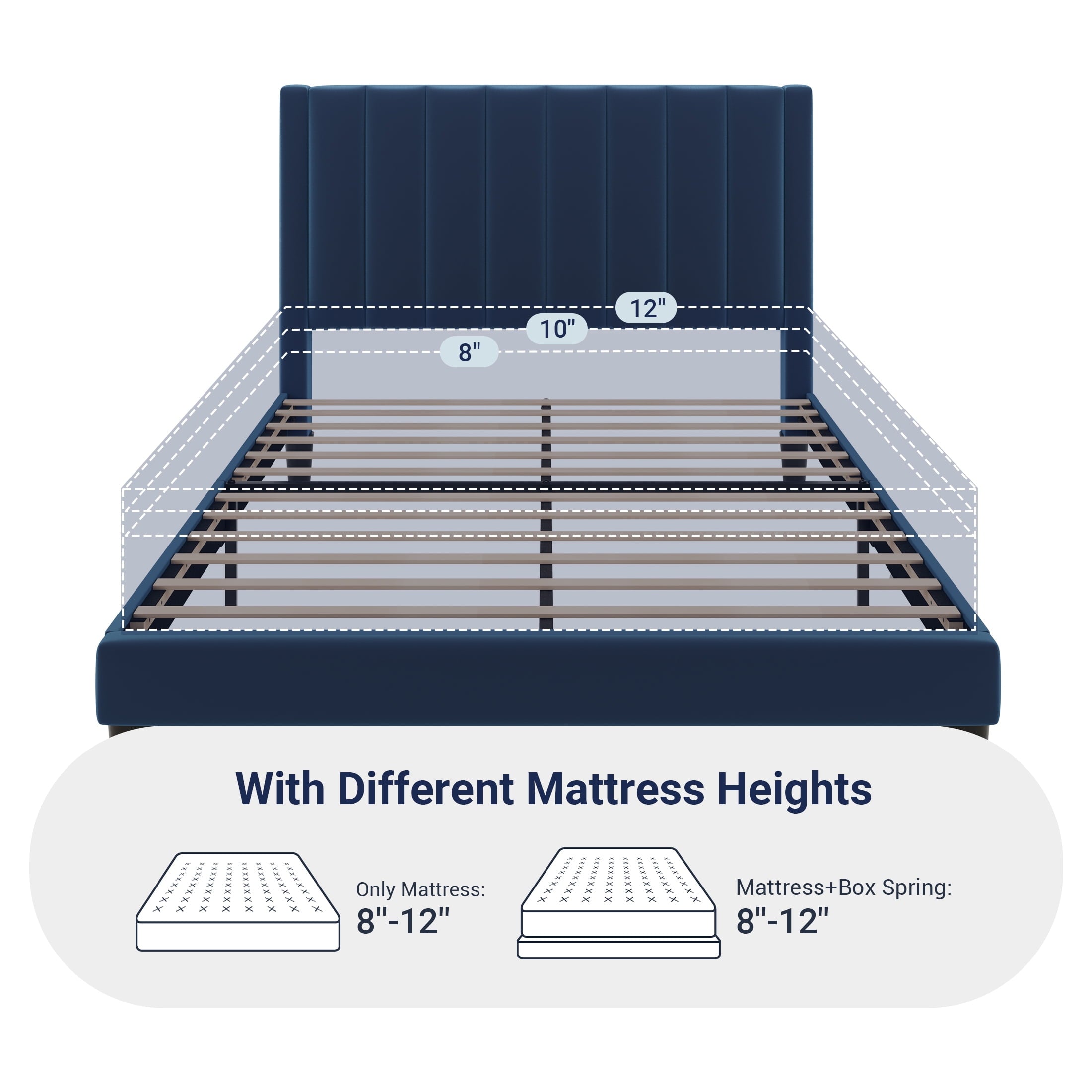 - No Box Spring Needed: Durable wood and steel slats support to extend the life of your latex, memory foam, or spring mattress without the need for a box spring.