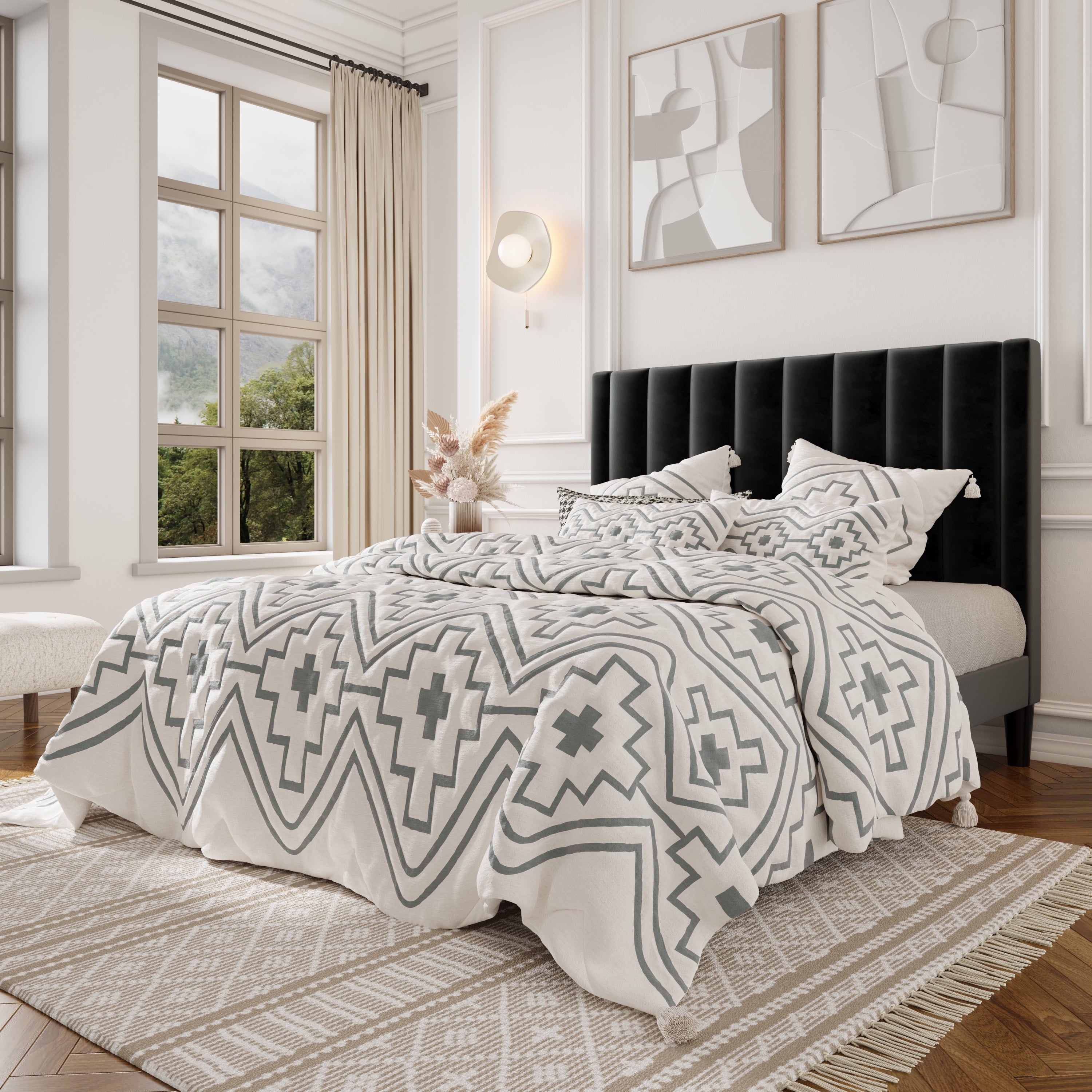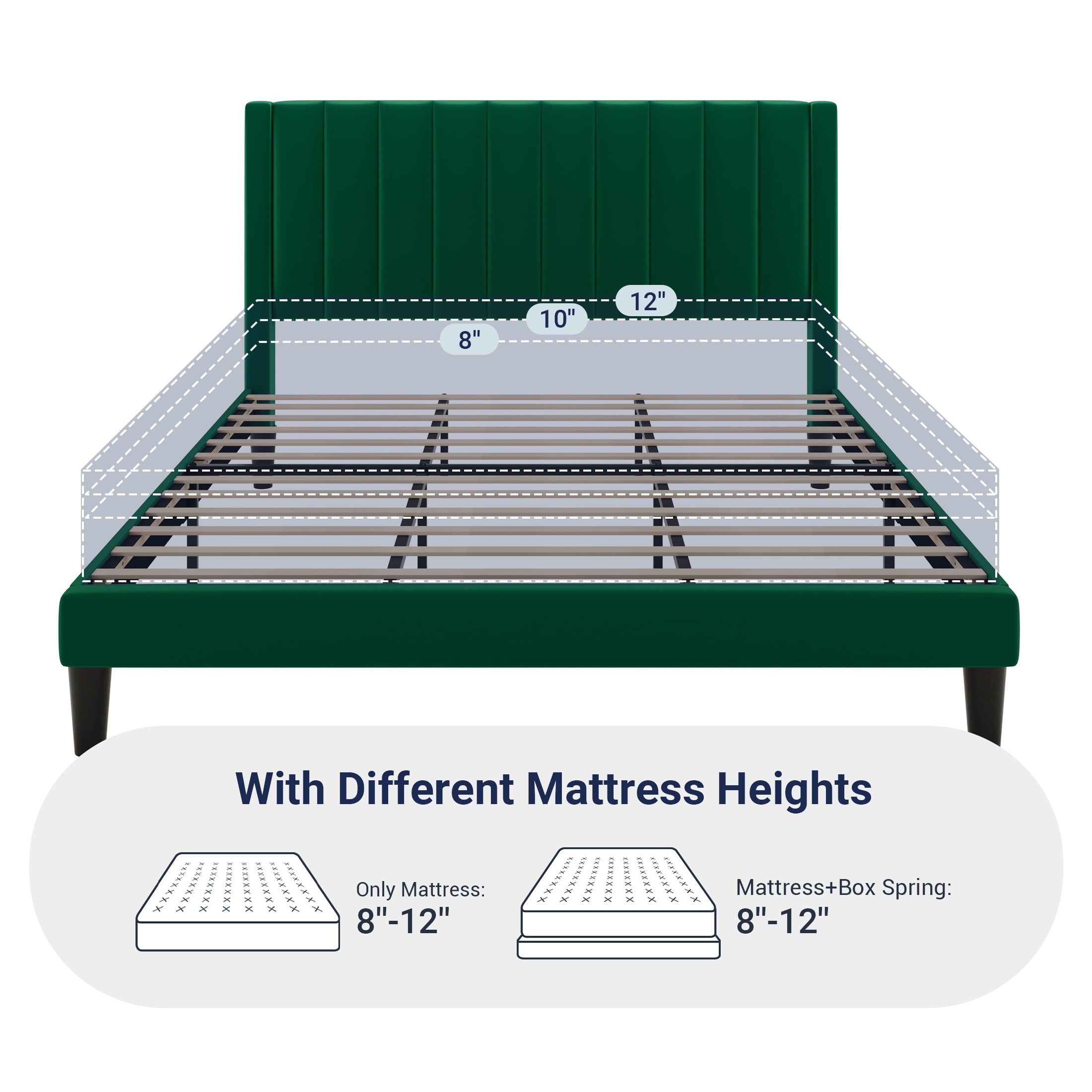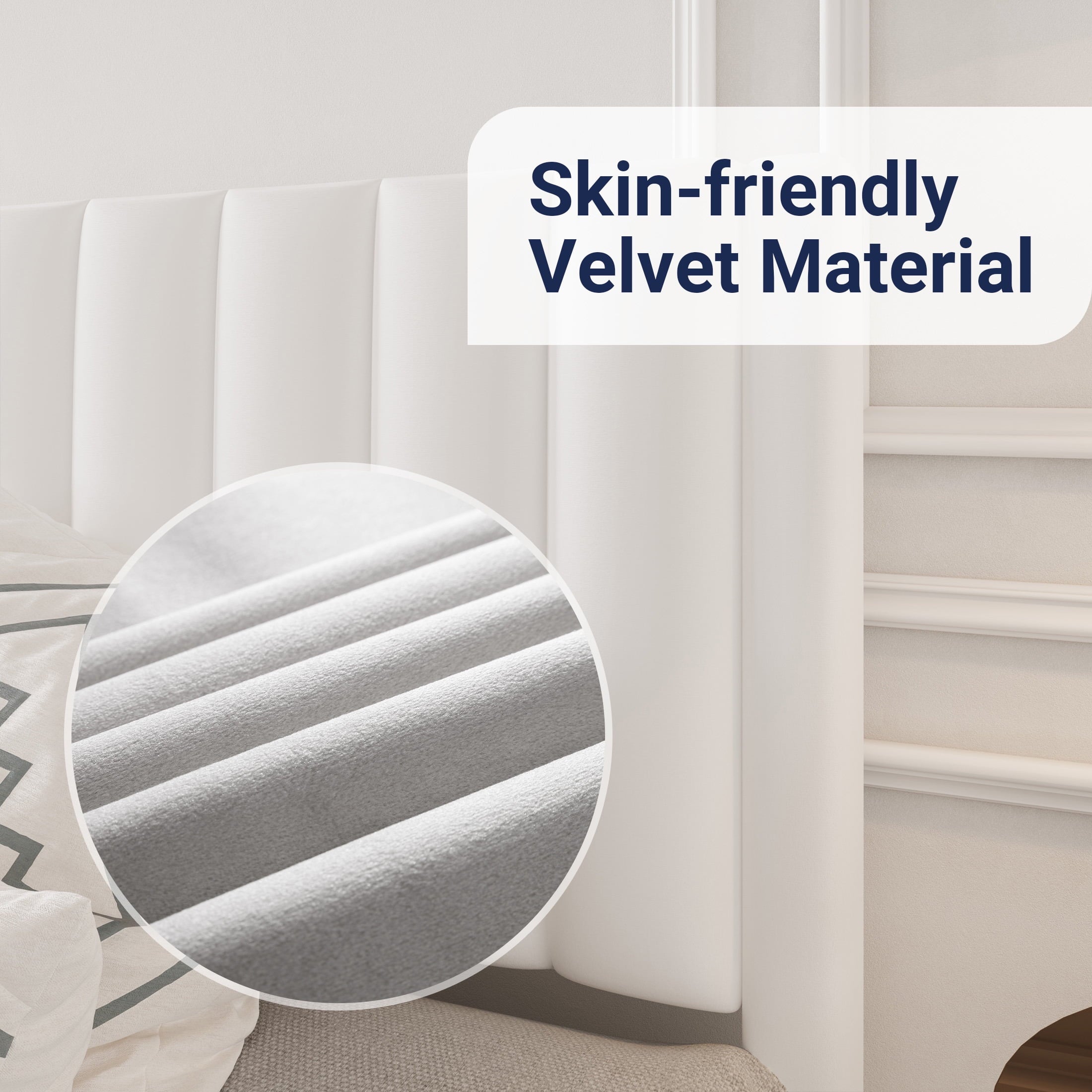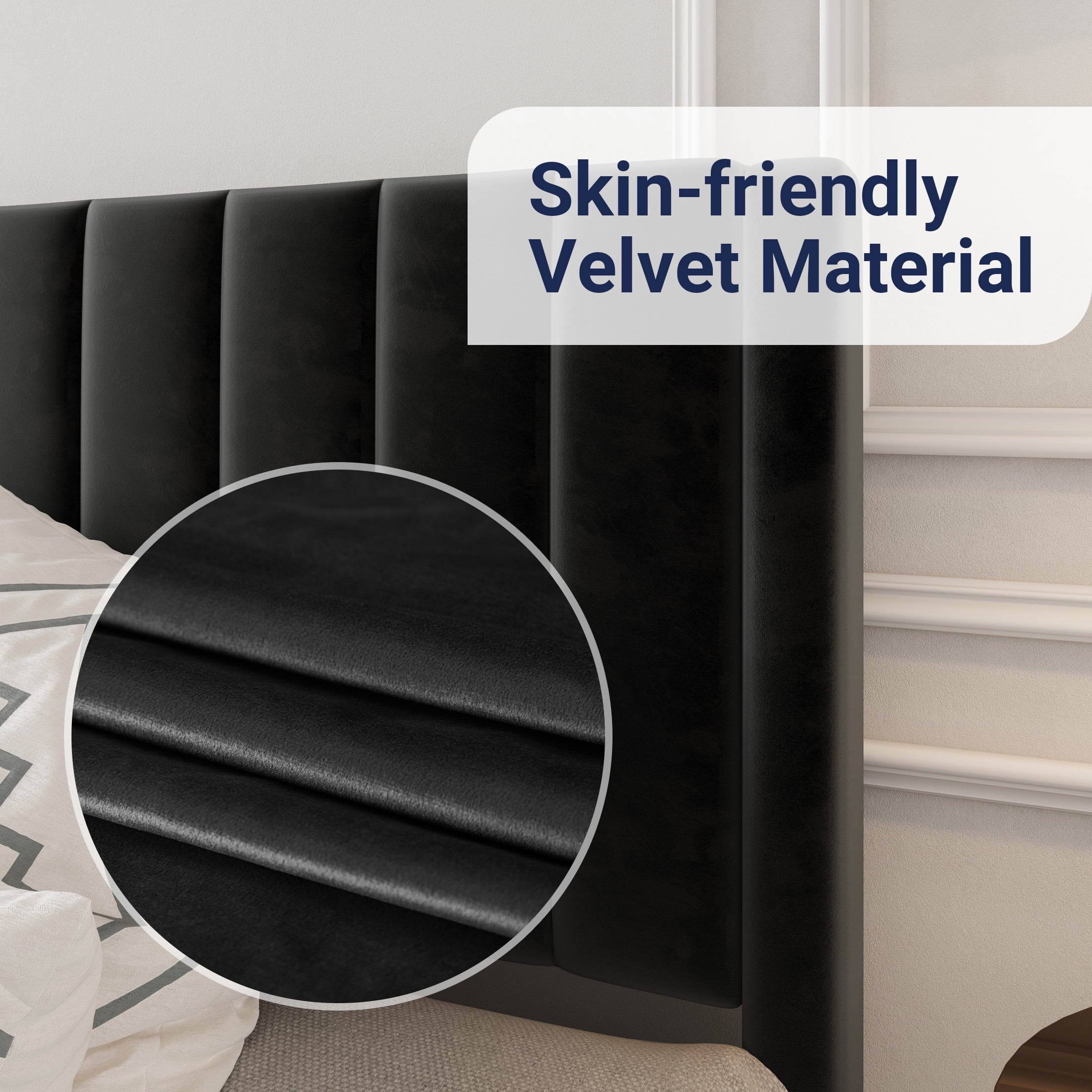 - Modern and Elegant: The bed’s headboard features a modern vertical channel design that makes a statement in any bedroom space. And luxurious plush velvet not only adds softness but also completes your contemporary aesthetic.