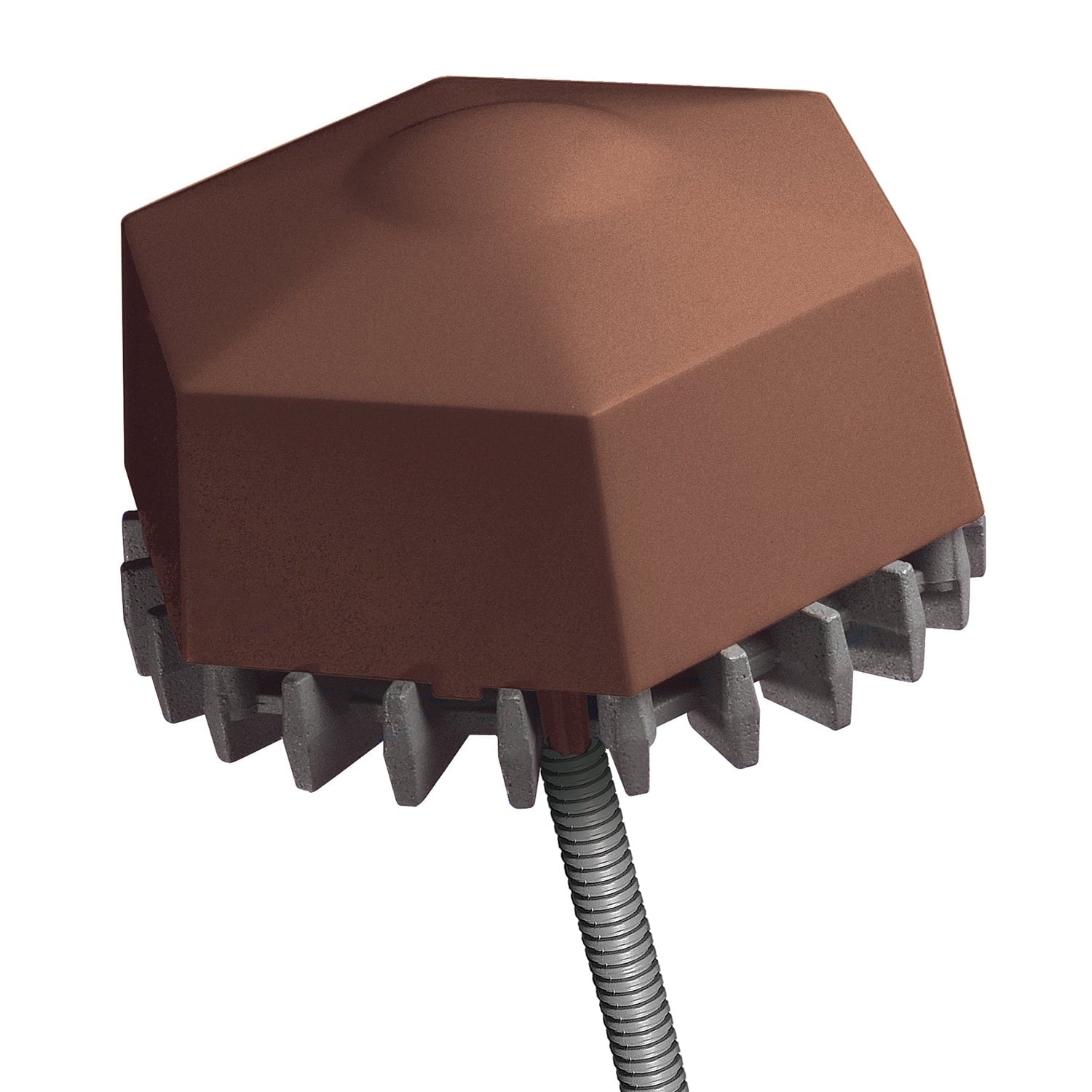 Top cap and float are easily removed to convert floating de-icer to a sinking de-icer. A special patented adaptor is included to route the cord through the drain hole. With the use of multiple sensors the de-icer improves temperature control of the water while keeping the tank completely ice-free. Safe to use in plastic tanks. Energy efficient. Heavy-duty anti-chew protector. Durable aluminum base, 6′ cord. Three-year warranty.