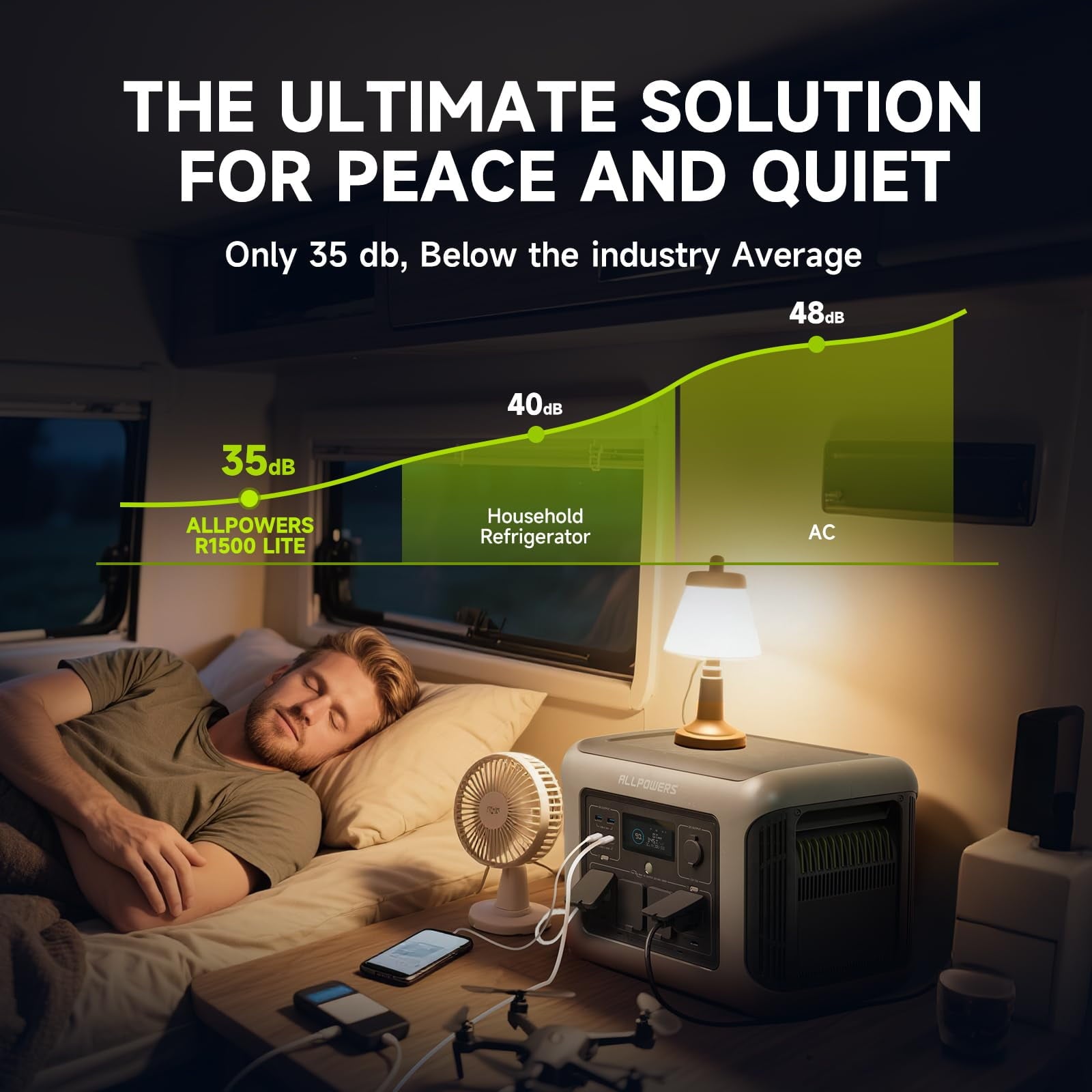 Harness the sun at peak efficiency with our integrated MPPT controller, accepting up to 650W solar input for the fastest possible green charging. Prefer a quick plug-in? Our AP-Power Fast Charging refuels 0-80% in about 1 hour from a wall outlet—faster than most comparable stations. Need peace at night? Activate <35dB Mute Mode for near-silent charging.