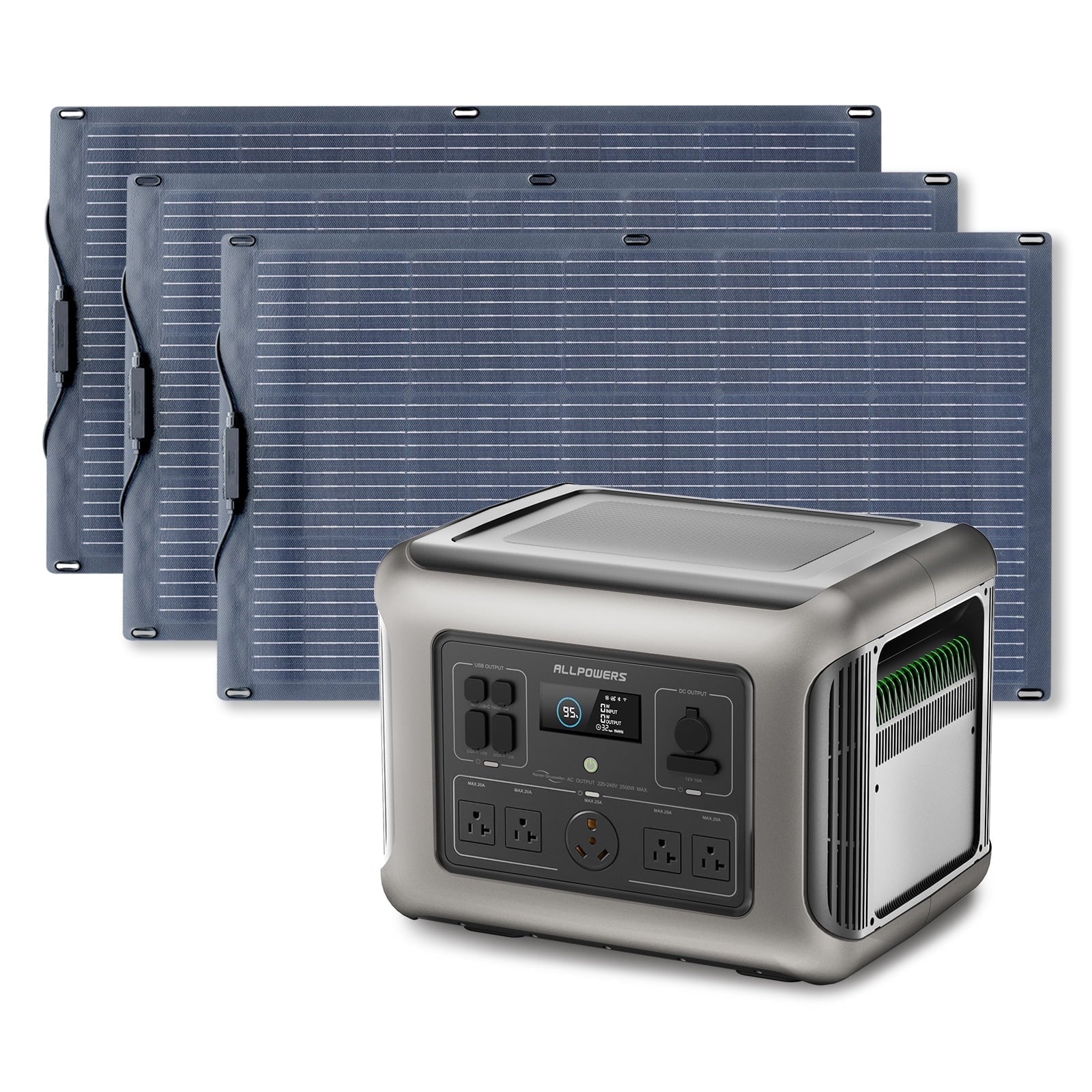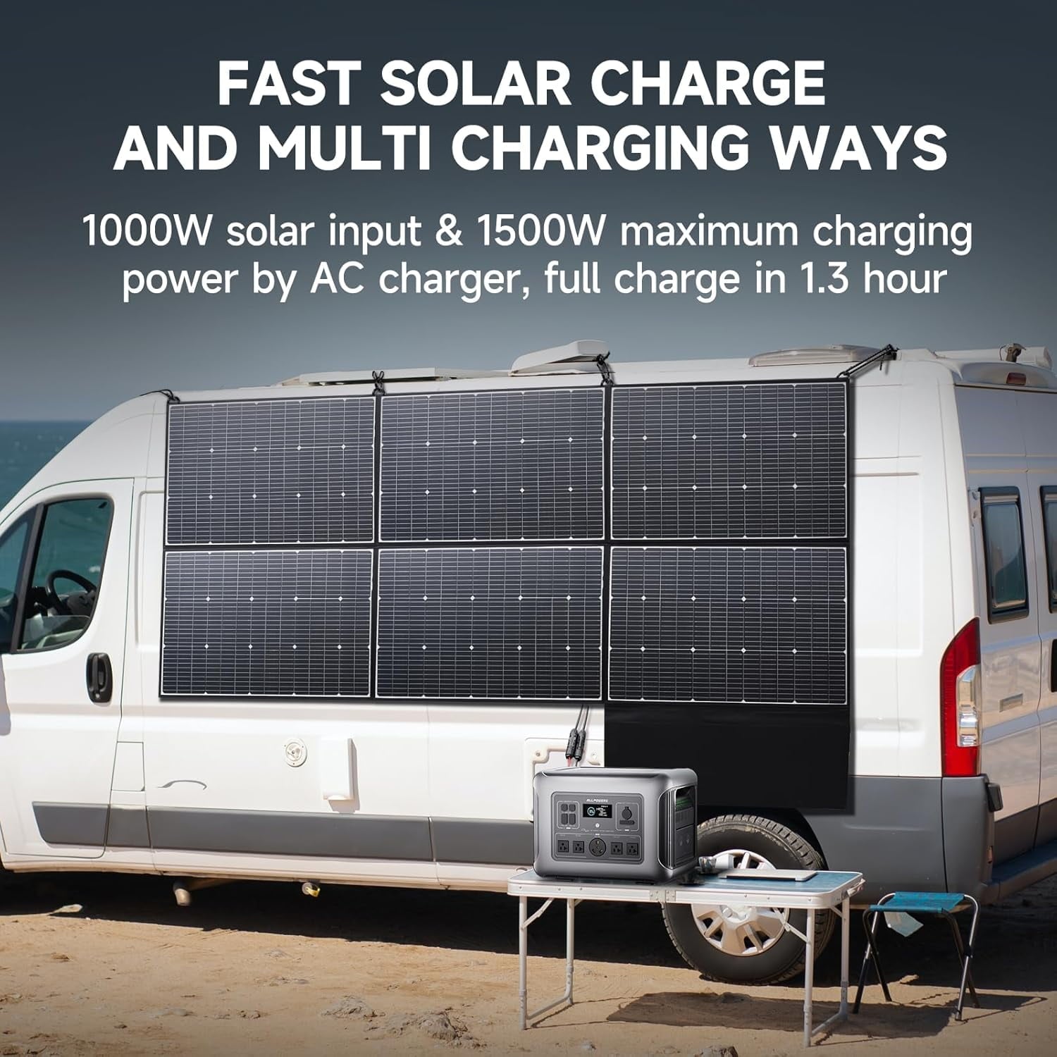 - ALLPOWERS R2500 provides a variety of charging methods: max 1500W AC charging, max 1000W solar charging, 12V/24V car charging and USB-C charging. When it comes to AC charging, there are fast, standard and mute modes to choose. Moreover, multiple combination charging ways are also recommended to save your time, like AC+Solar panel, in which R2500 can be fully charged in only 0.8 hours.