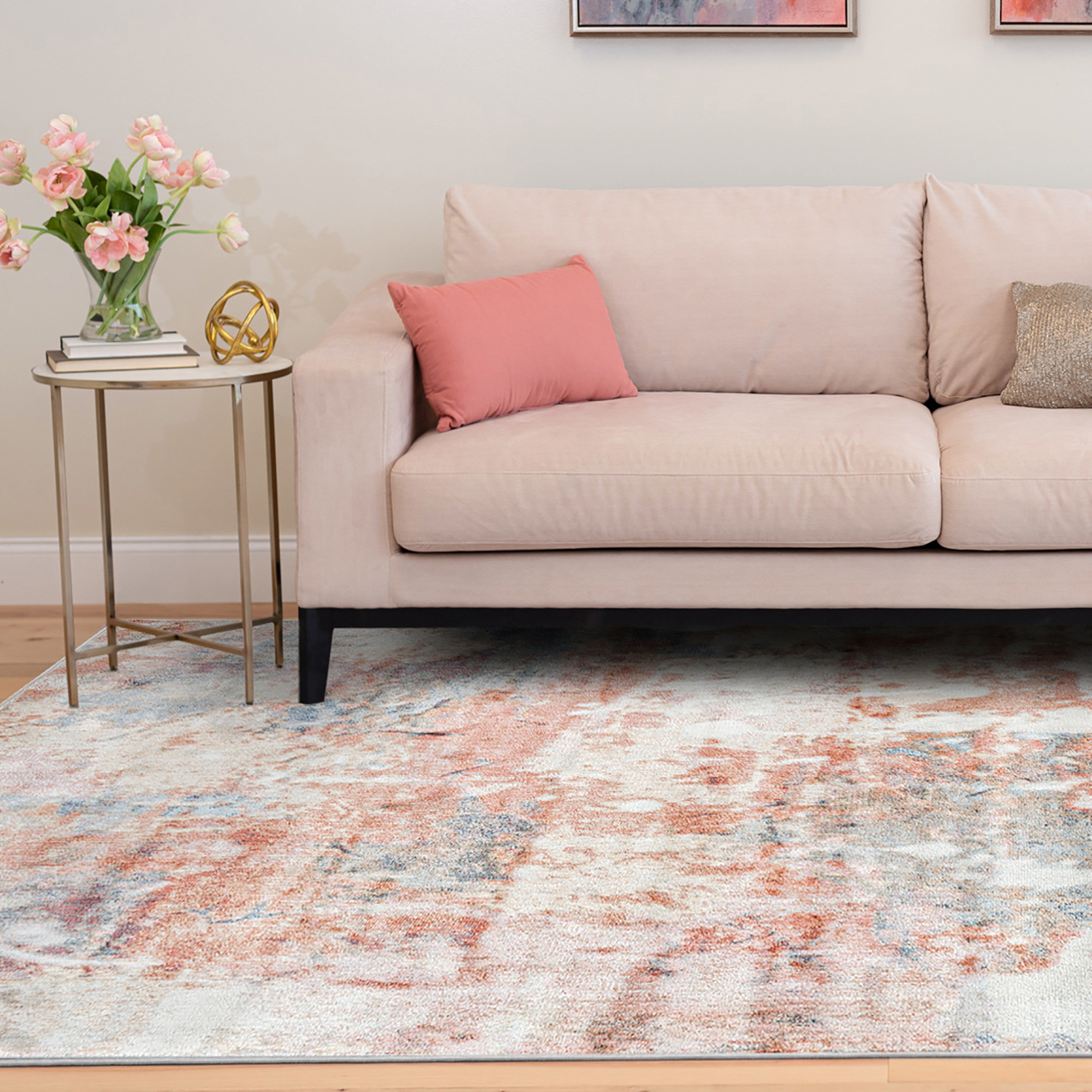 - A beautiful contemporary style with a primary multicolored shade and rust accents
