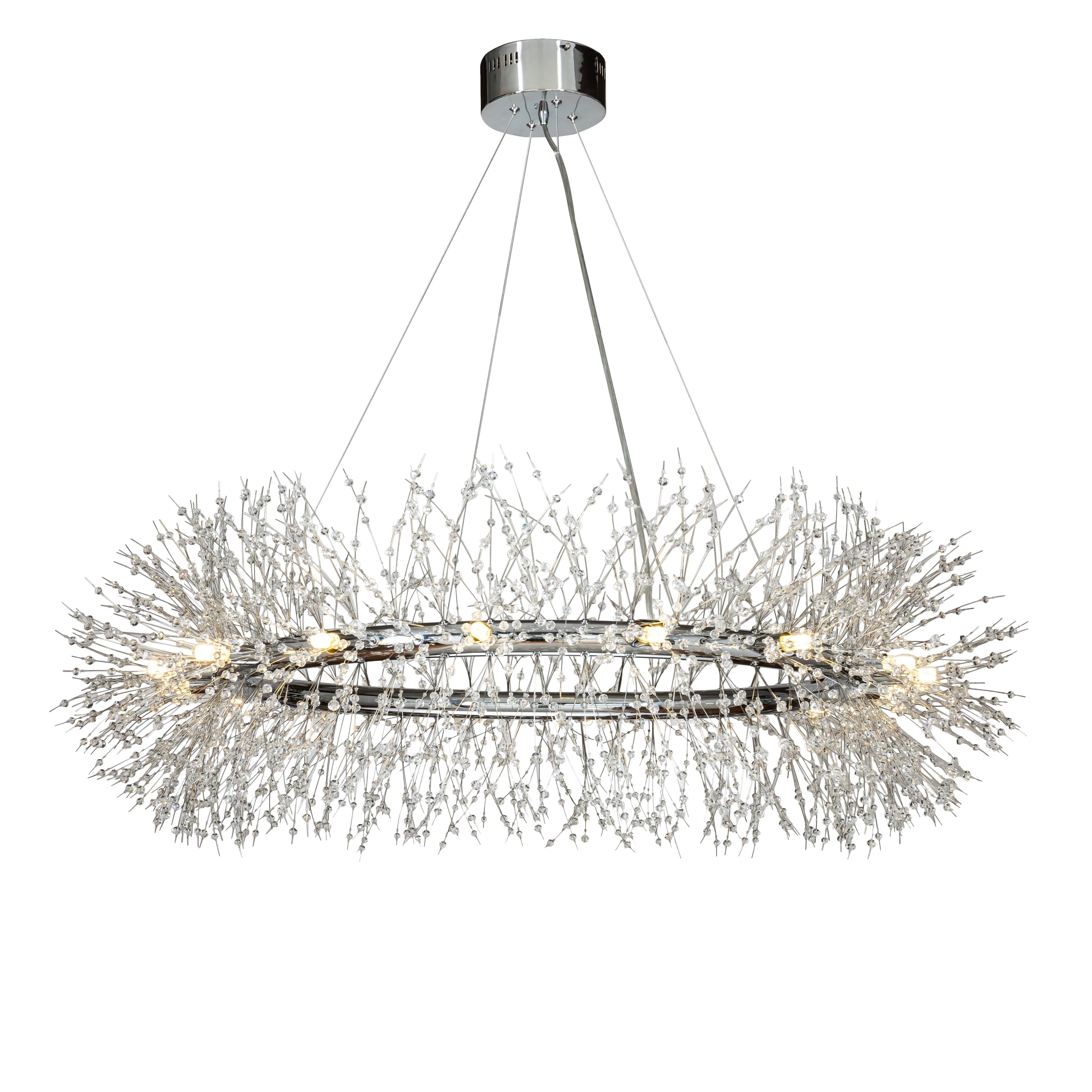 Brighten up your living space with this stunning crystal firework chandelier. Featuring a stainless steel frame and a unique design consisting of hundreds of crystals on wires, this chandelier will add an elegant touch to any room. G9 bulbs can be added to create a sparkling effect that is sure to impress.