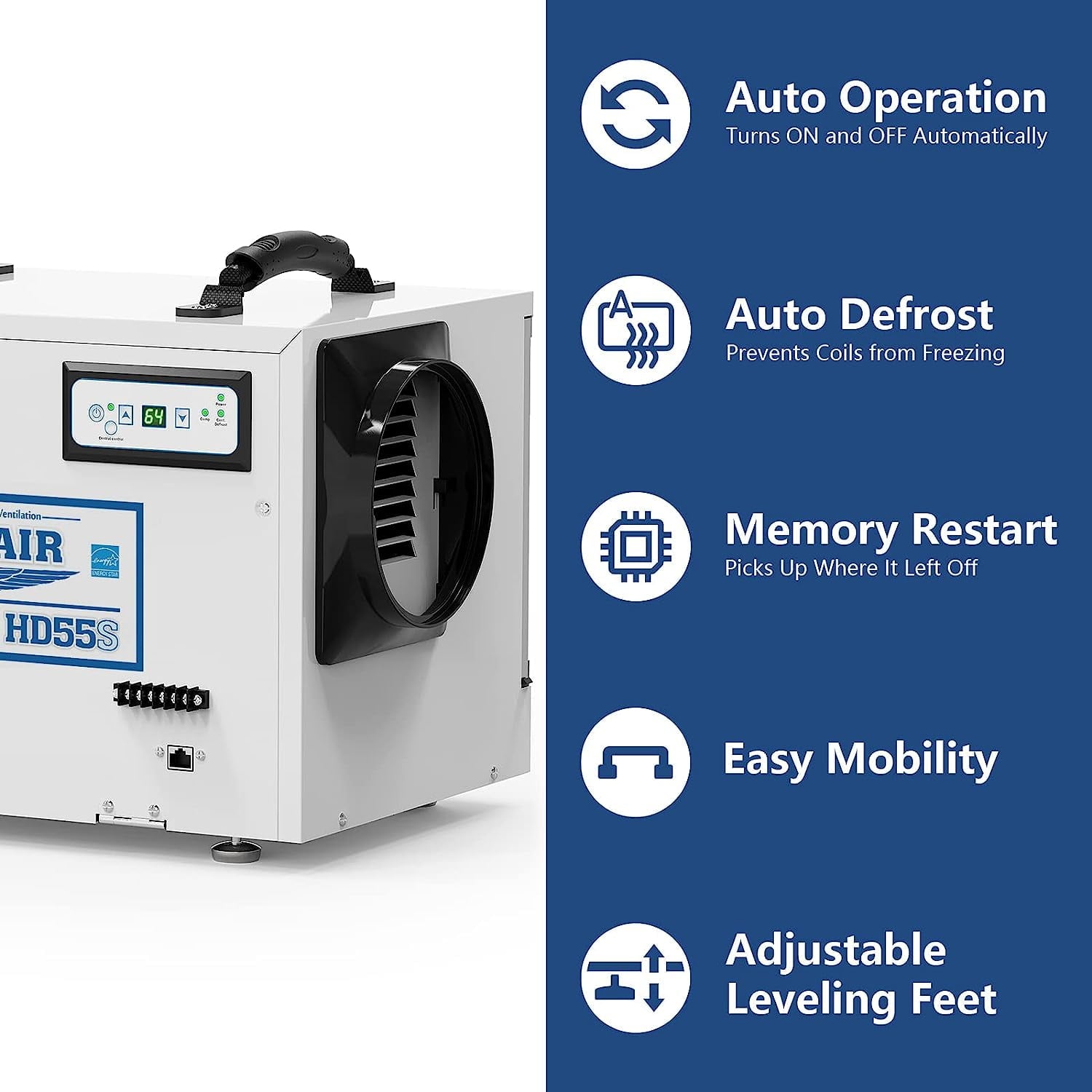 - Moisture Removal (80℉, 60%RH): 55 Pints/Day