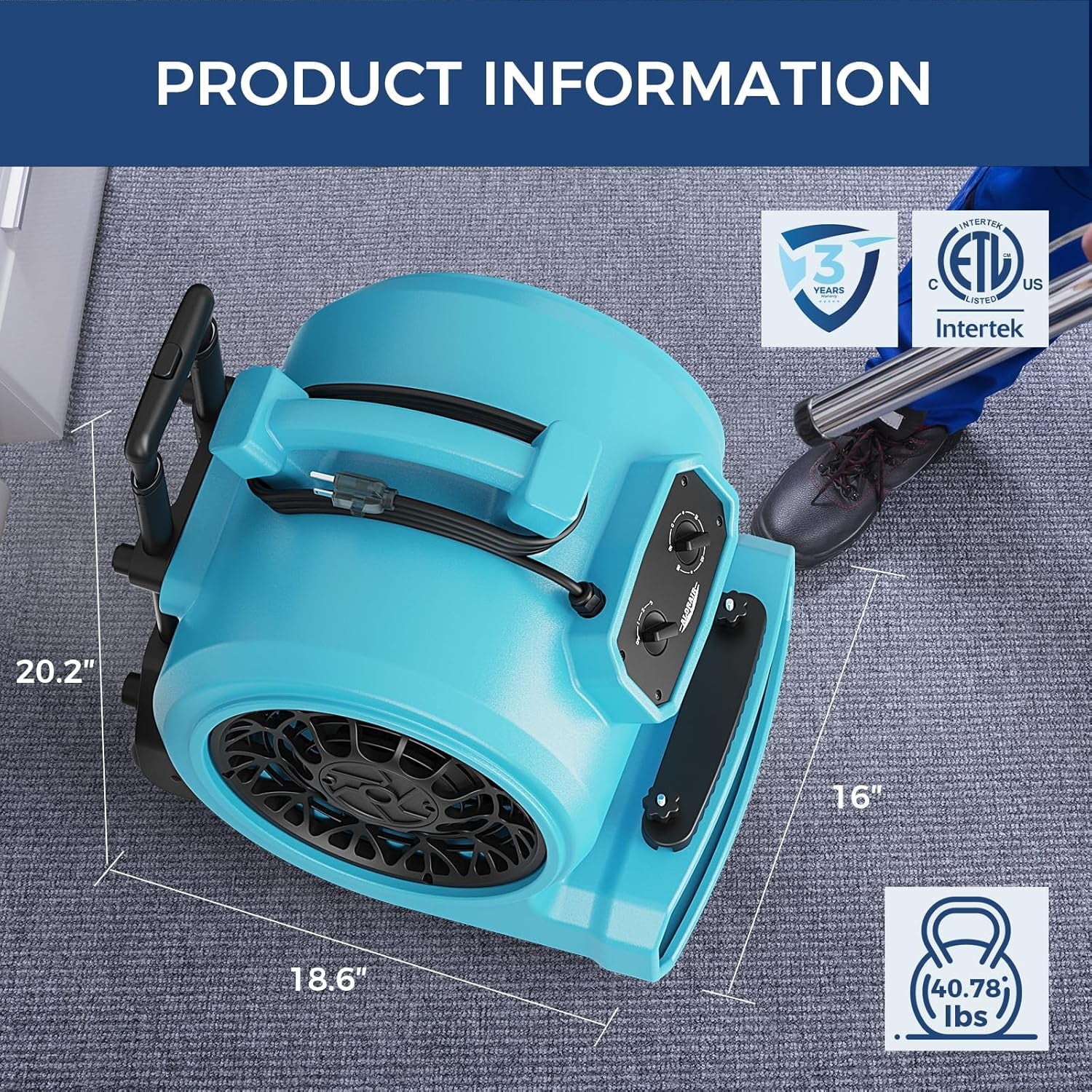 Ideal for Water Damage Restoration, Quick Drying Carpet, Construction,