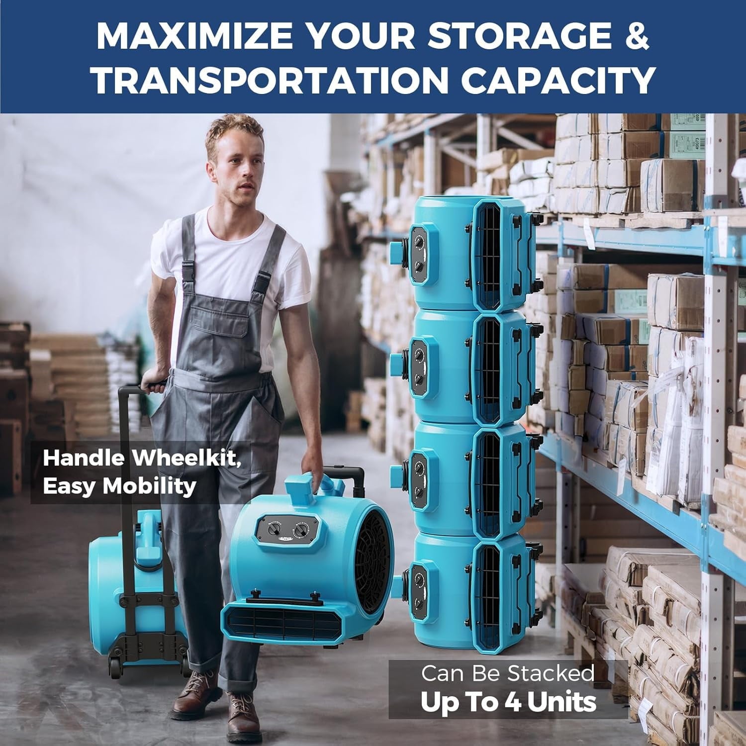 • LIGHTWEIGHT AND PORTABLE – Simply plug in the unit to start using it. Stackable and a handle for convenient storage and transportation, whether you’re heading to a job site or simply moving it from one room to another. For contractors, restoration specialists, or anyone needing a portable solution, this device offers unmatched portability and convenience.