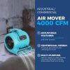 ALORAIR 4000 CFM Air Mover Blower Fan for Industrial, Floor Drying Fan, Carpet Dryer - Timer, Handle Wheelkit, Carpet Buckles, Stackable, for Water Damage Restoration and Plumbing - GE4000HTC