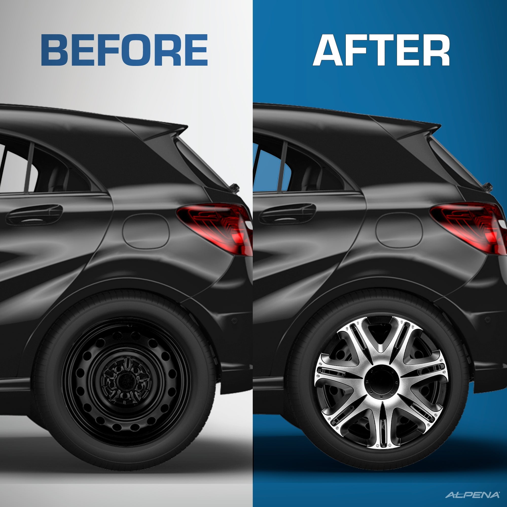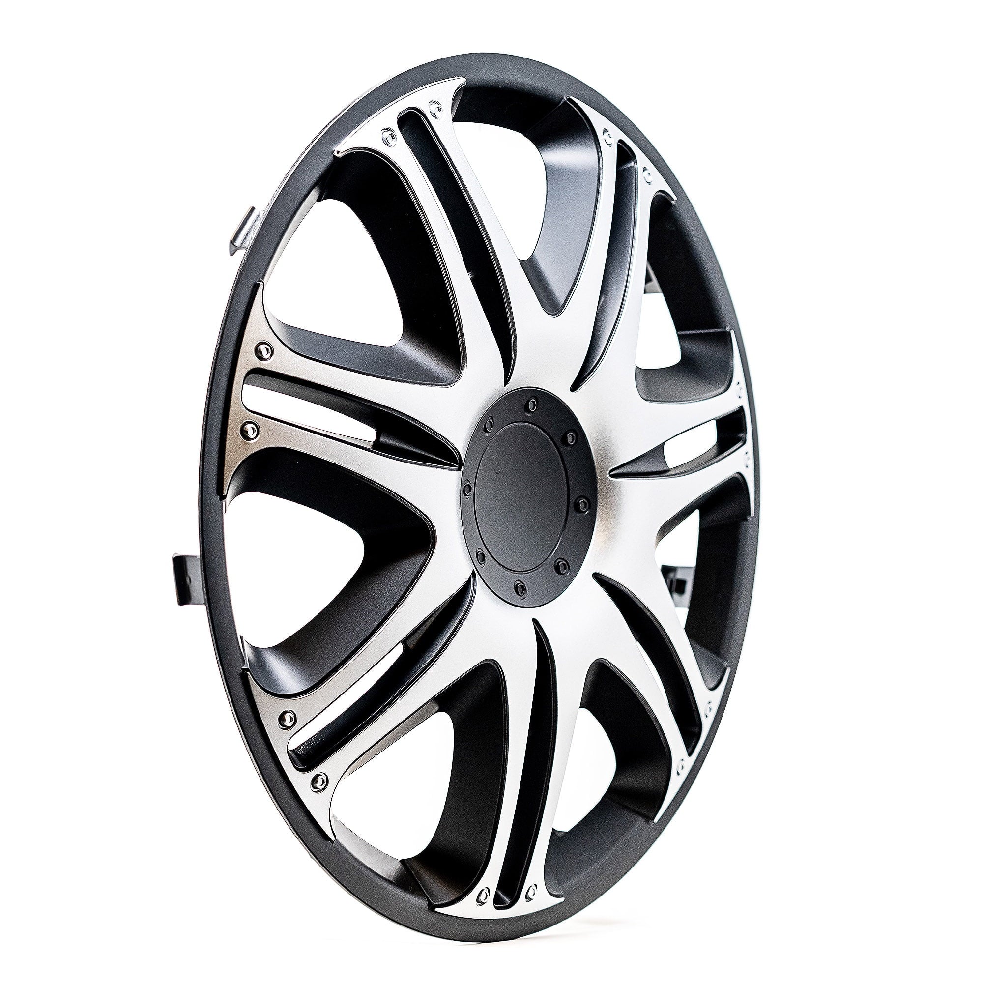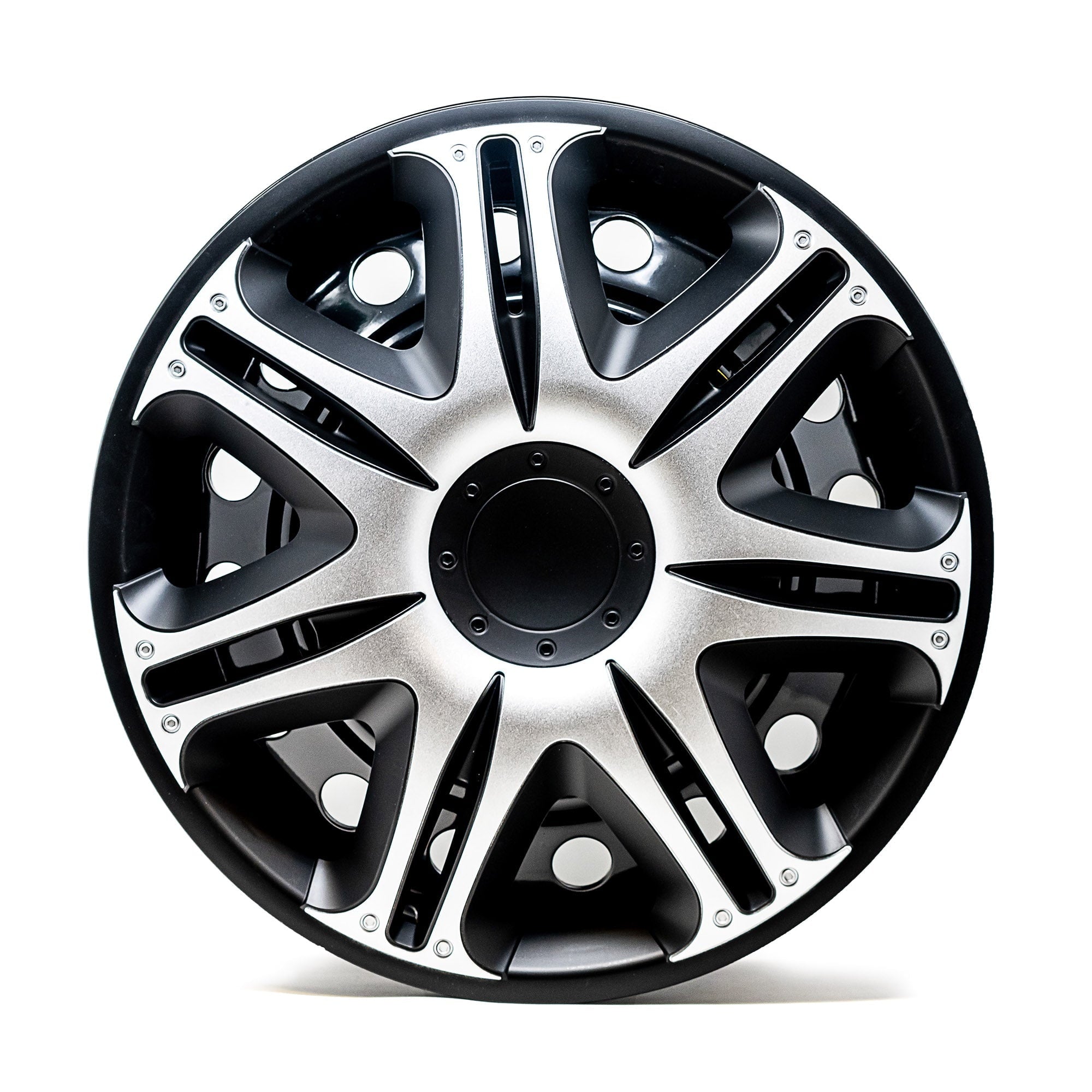 Alpena 16″ Velociti, Silver & Black, Set of 4, Model 58405, Fits Most Steel Wheels. Add personality to your vehicle in less than 10 minutes! Upgrade the look of your run-down, aging, or rusted rims with an Alpena wheel cover makeover kit. These premium European made wheel covers are designed with top-quality materials to give you a durable, long-lasting cover you can show off around town less than an hour after they arrive at your door. Our engineered adjustable 3-tier tightness system makes them easy to install for the most secure fit possible. They’re made with high grade virgin ABS plastic that can withstand extreme temperature fluctuations and help combat rust and erosion to protect your steel wheels year-round. We combine exquisite looks with trend-setting custom finishes to deliver the most attractive and stylish wheel covers on the market today. We know you how much you care about your vehicle, because we feel the same way about ours. This is why we’re on an endless mission to produce wheel covers that are lighter, stronger, with wicked good looks, and even more distinctive finishes.