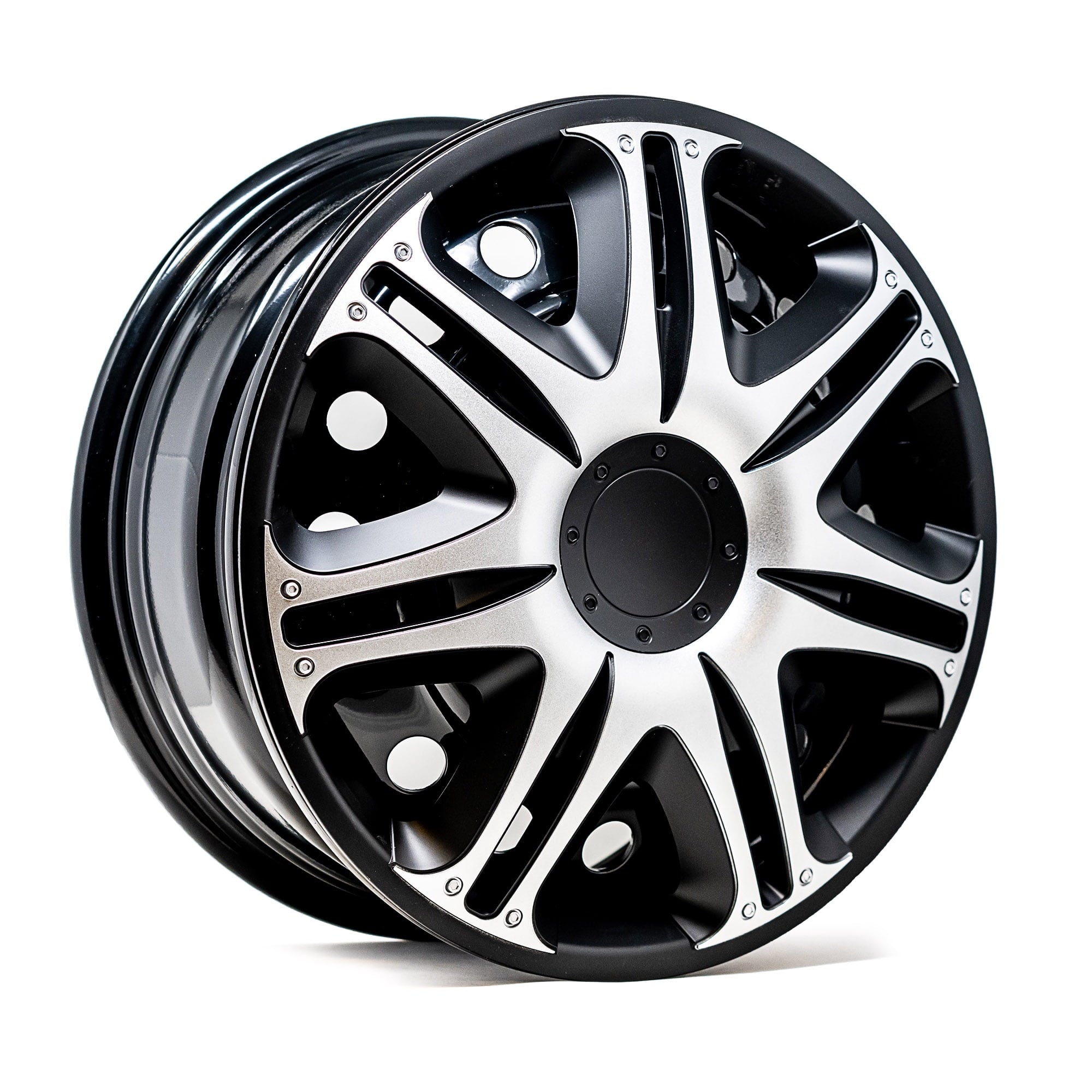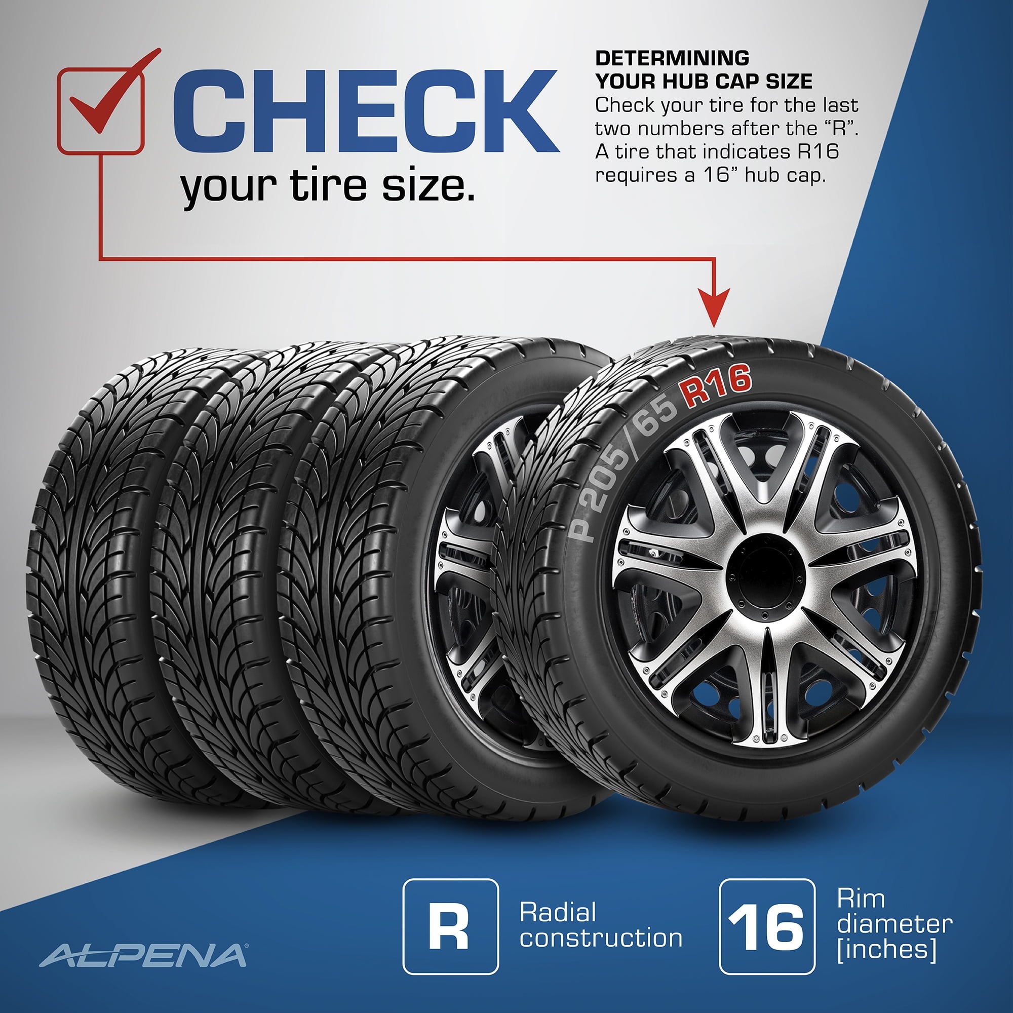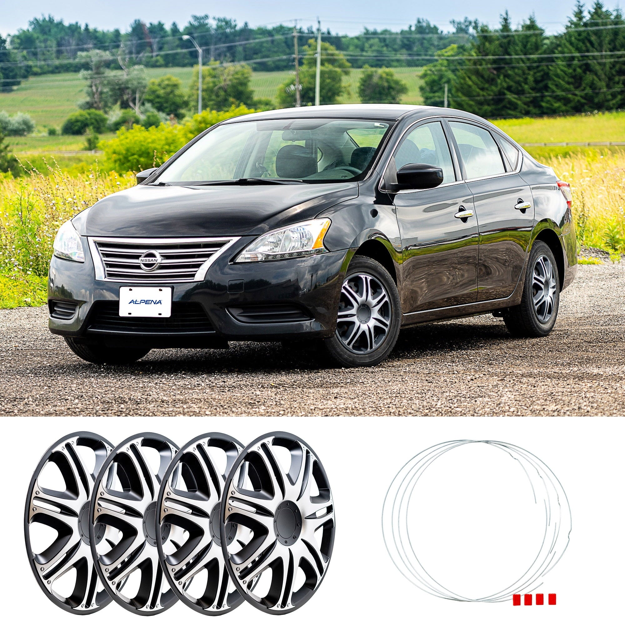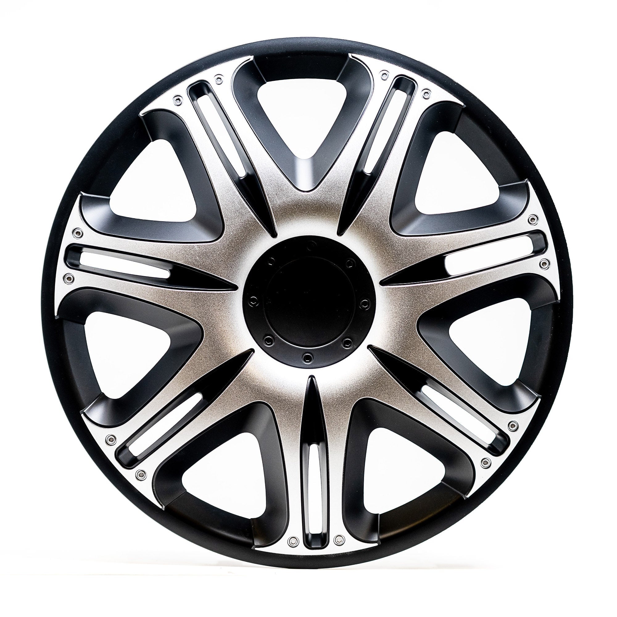Alpena 16″ Velociti, Silver & Black, Set of 4, Model 58405, Fits Most Steel Wheels. Add personality to your vehicle in less than 10 minutes! Upgrade the look of your run-down, aging, or rusted rims with an Alpena wheel cover makeover kit. These premium European made wheel covers are designed with top-quality materials to give you a durable, long-lasting cover you can show off around town less than an hour after they arrive at your door. Our engineered adjustable 3-tier tightness system makes them easy to install for the most secure fit possible. They’re made with high grade virgin ABS plastic that can withstand extreme temperature fluctuations and help combat rust and erosion to protect your steel wheels year-round. We combine exquisite looks with trend-setting custom finishes to deliver the most attractive and stylish wheel covers on the market today. We know you how much you care about your vehicle, because we feel the same way about ours. This is why we’re on an endless mission to produce wheel covers that are lighter, stronger, with wicked good looks, and even more distinctive finishes.