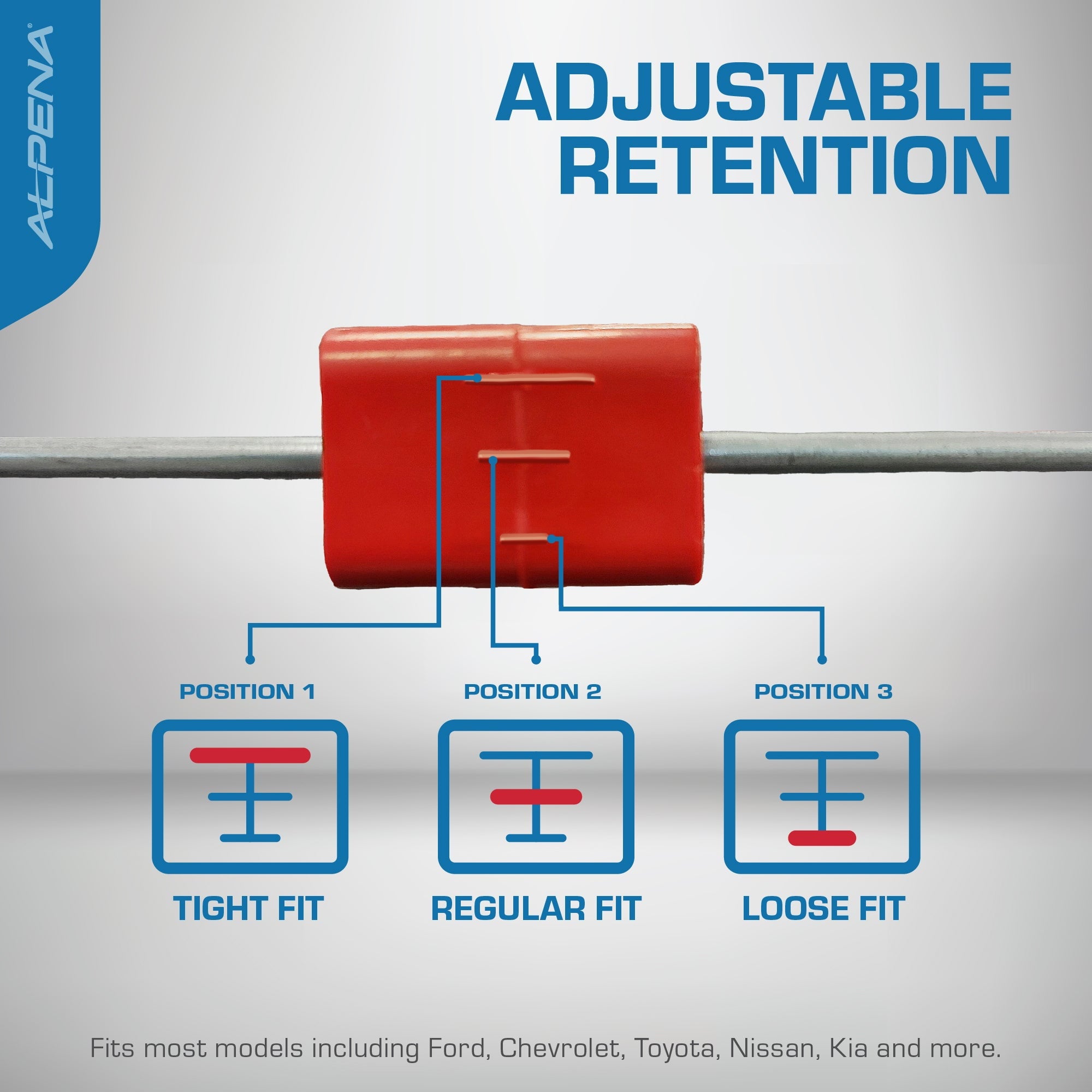- Unique 3-step retention system with an adjustable inner ring ensures a tight fit and compatibility with most steel wheels