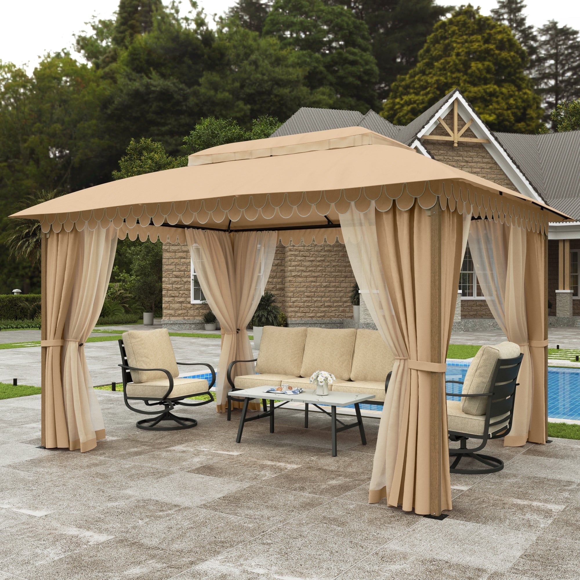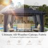 Premium All-Weather Canopy Tent (13x10x9.3 FT) – Ultra-sturdy steel frame ensures unmatched stability, paired with a spacious 13x10FT design for generous outdoor coverage. The heavy-duty, rust-proof construction withstands harsh weather, while the dual-layer PU-coated fabric provides 100% waterproof, UV-proof, and fade-proof protection. Enjoy bug-free relaxation with built-in mosquito netting + privacy curtain and enhanced airflow from the wavy ceiling design. Perfect for large gatherings, camping, or backyard lounging!