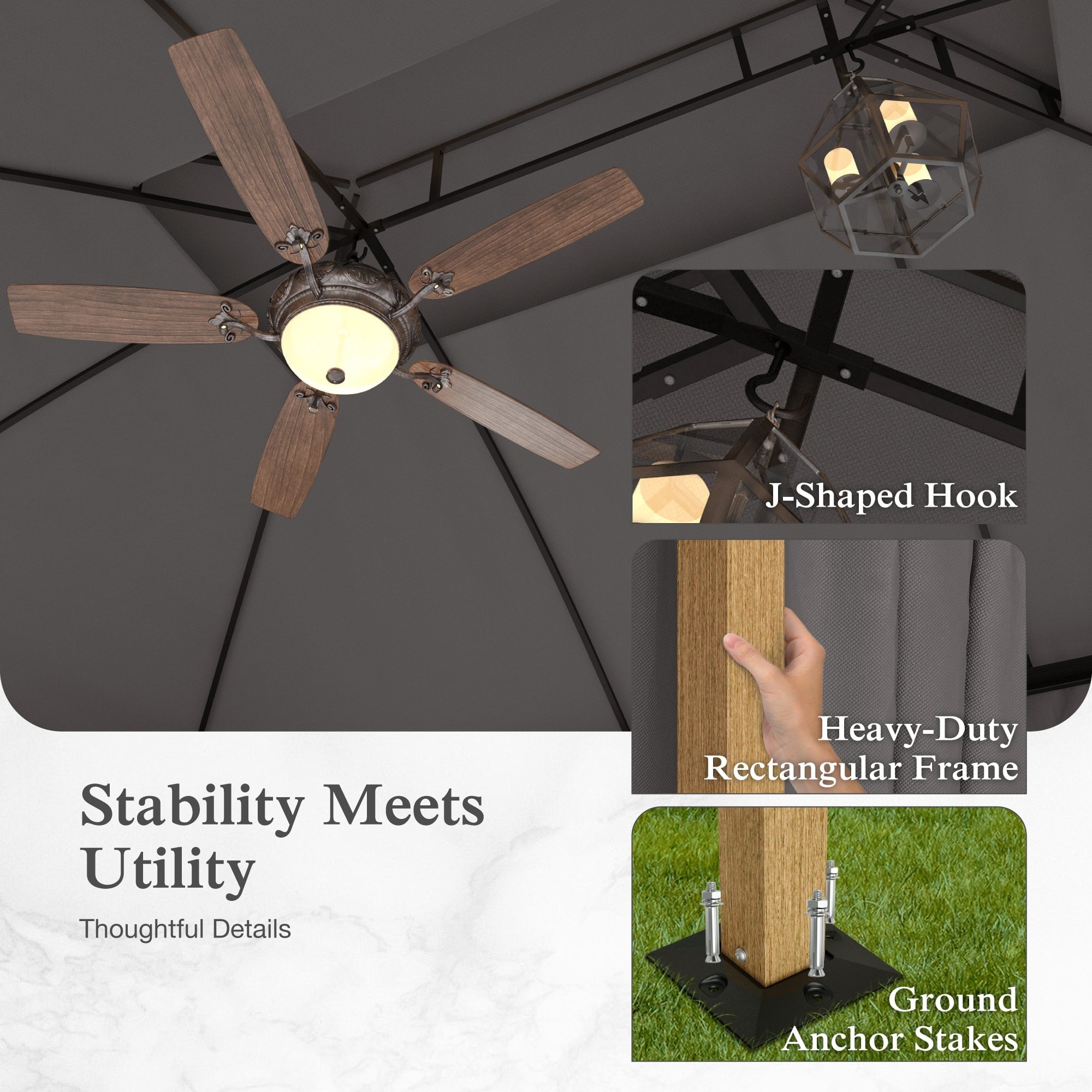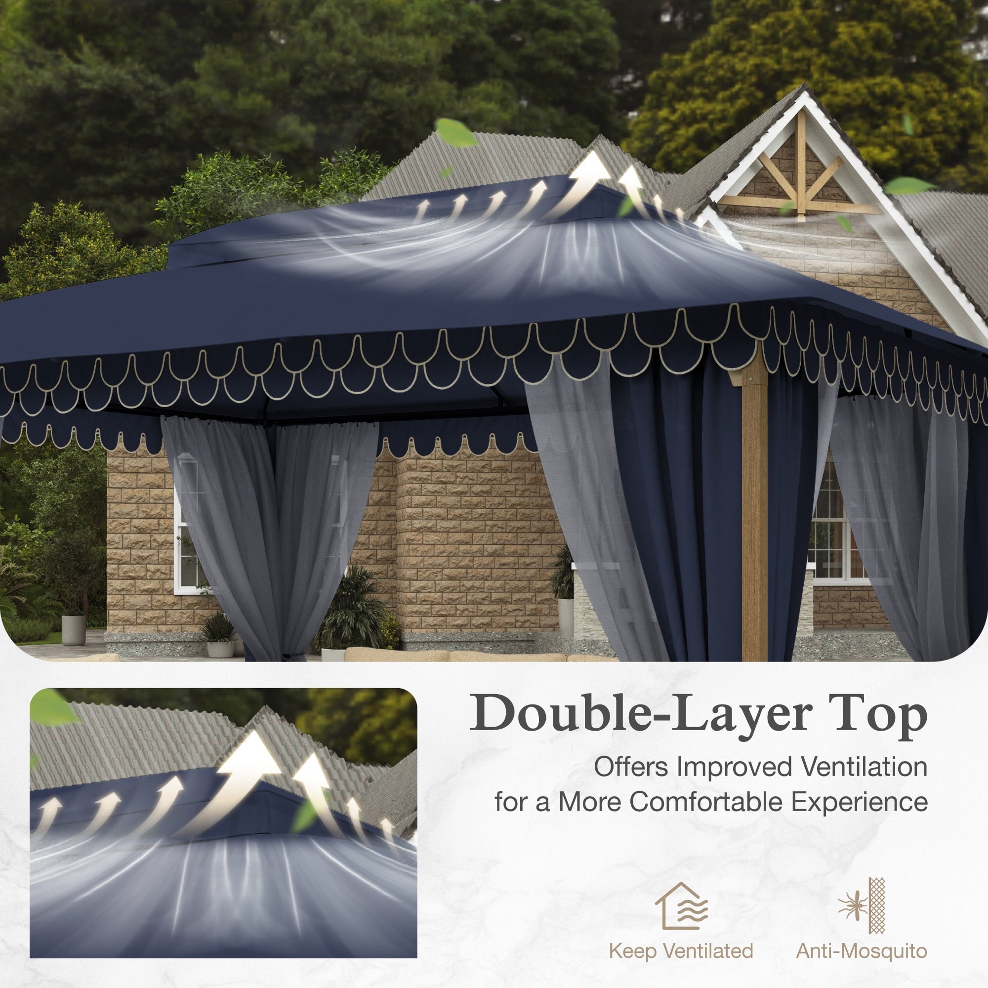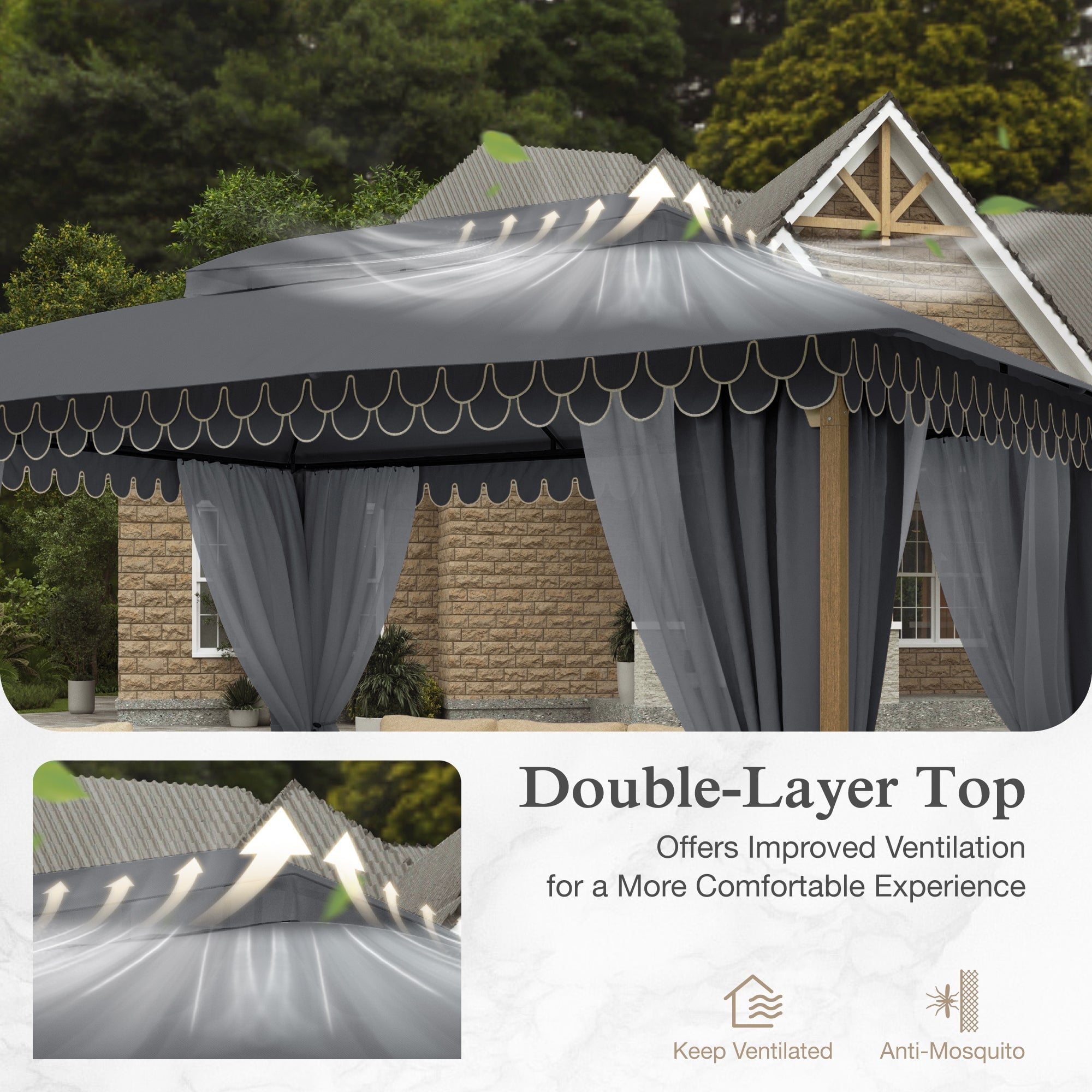 • Smart Ventilation Design: Wavy fringe ceiling enhances airflow, reducing heat buildup for a cooler outdoor experience.