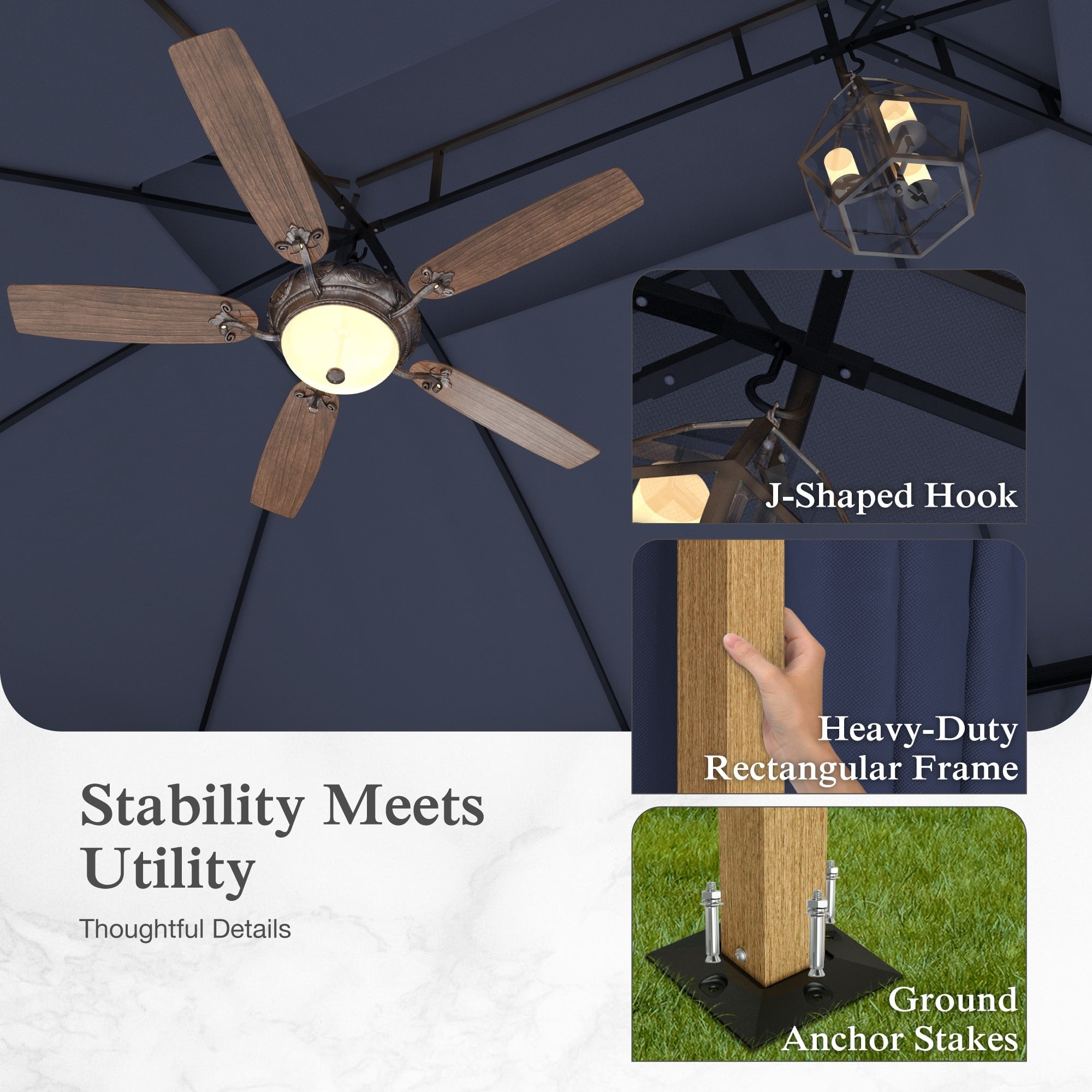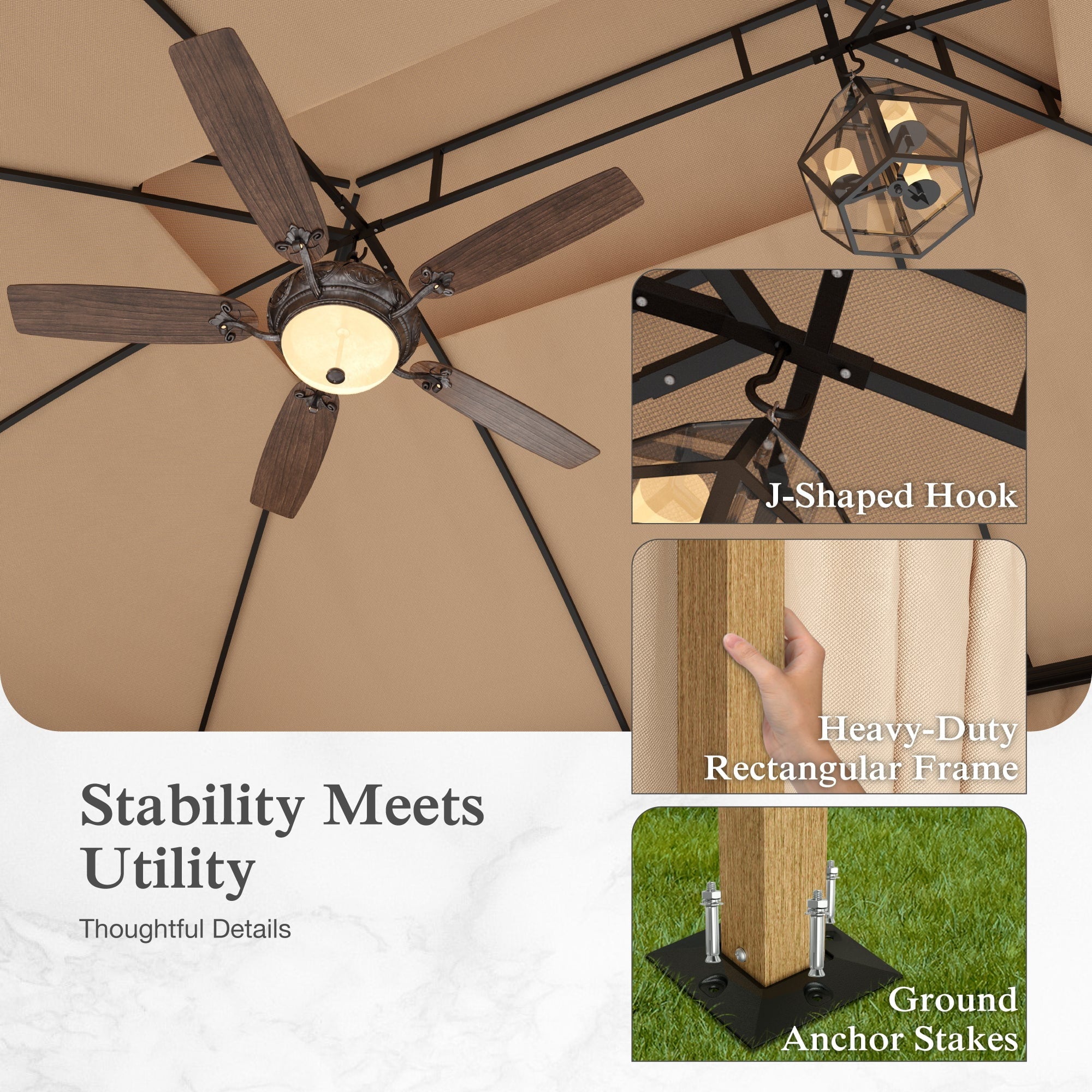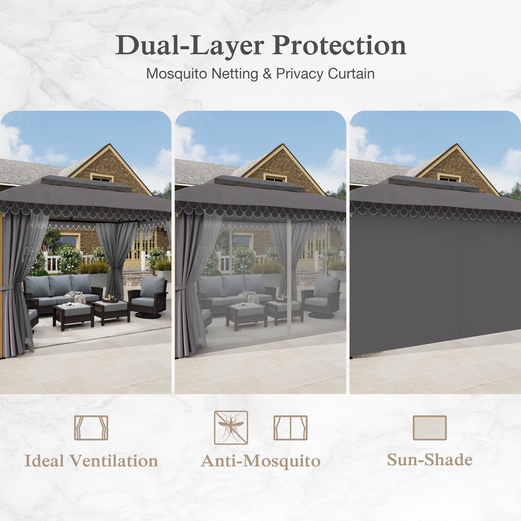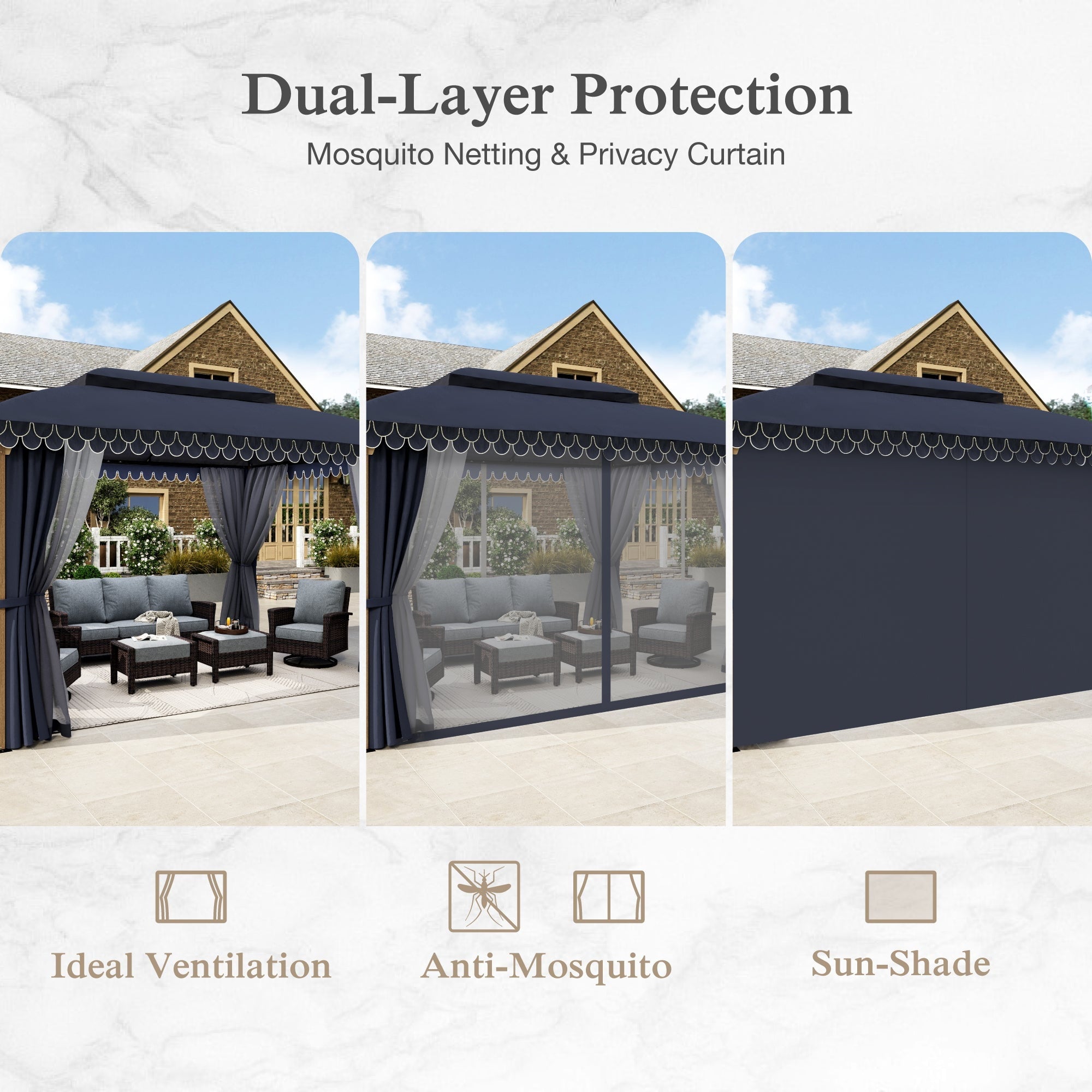 • Smart Ventilation Design: Wavy fringe ceiling enhances airflow, reducing heat buildup for a cooler outdoor experience.