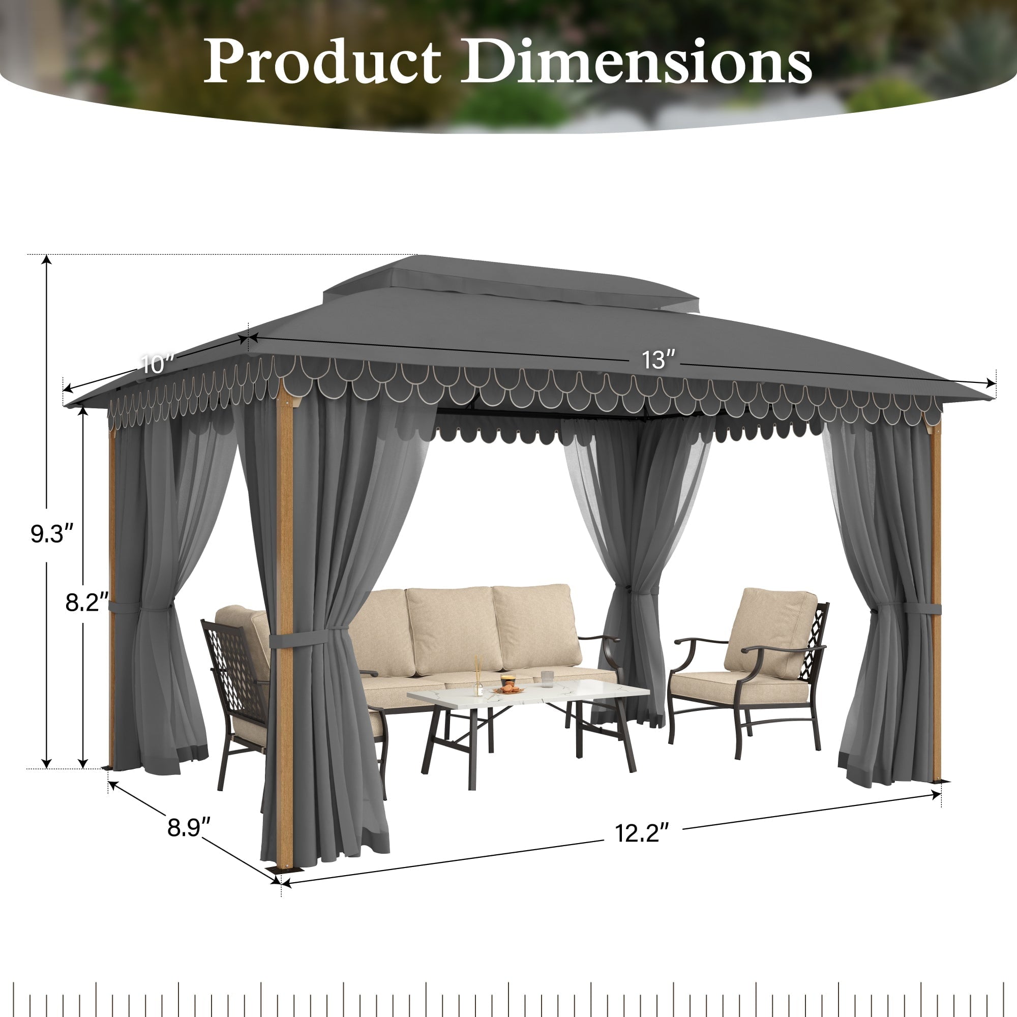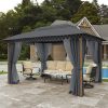 Home Gazebos Alpha Joy 10’x13′ Outdoor Gazebo Ventilated Double Roof Metal Gazebo with Mosquito Netting and Privacy Curtains for Patio, Backyard, Deck and Lawn, Grey