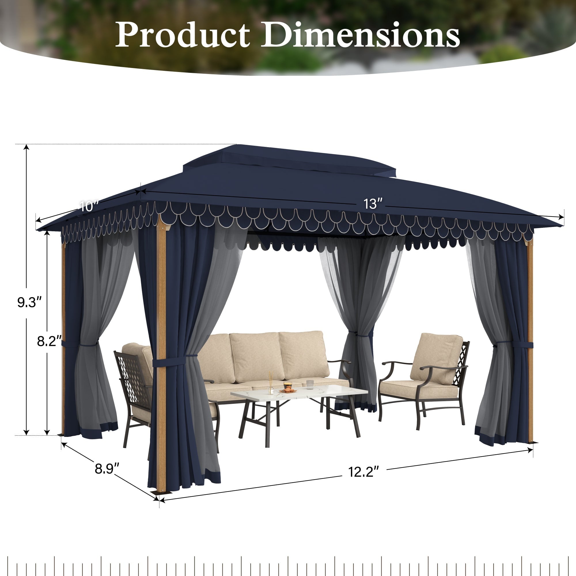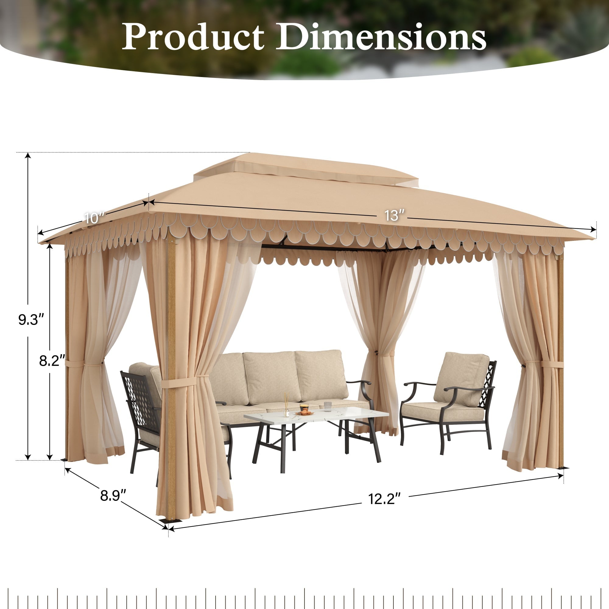 • Specious Area: Generous 10 x 13 FT area comfortably accommodates 10-12 people, perfect for family gatherings, parties, or outdoor dining.
