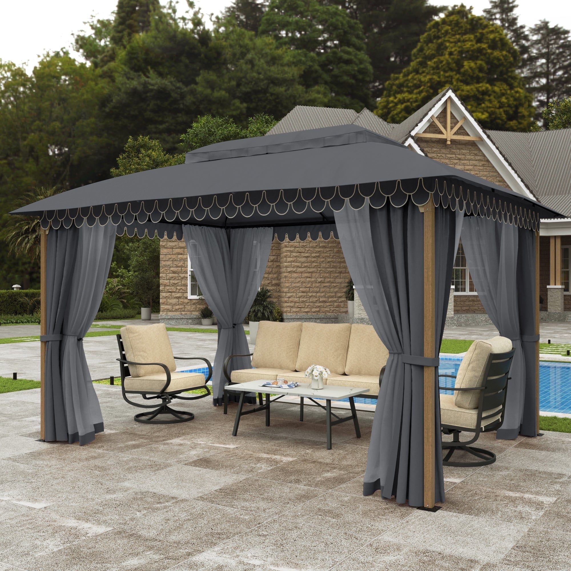 Alpha Joy 10'x13' Outdoor Gazebo Ventilated Double Roof Metal Gazebo with Mosquito Netting and Privacy Curtains for Patio, Backyard, Deck and Lawn, Grey
