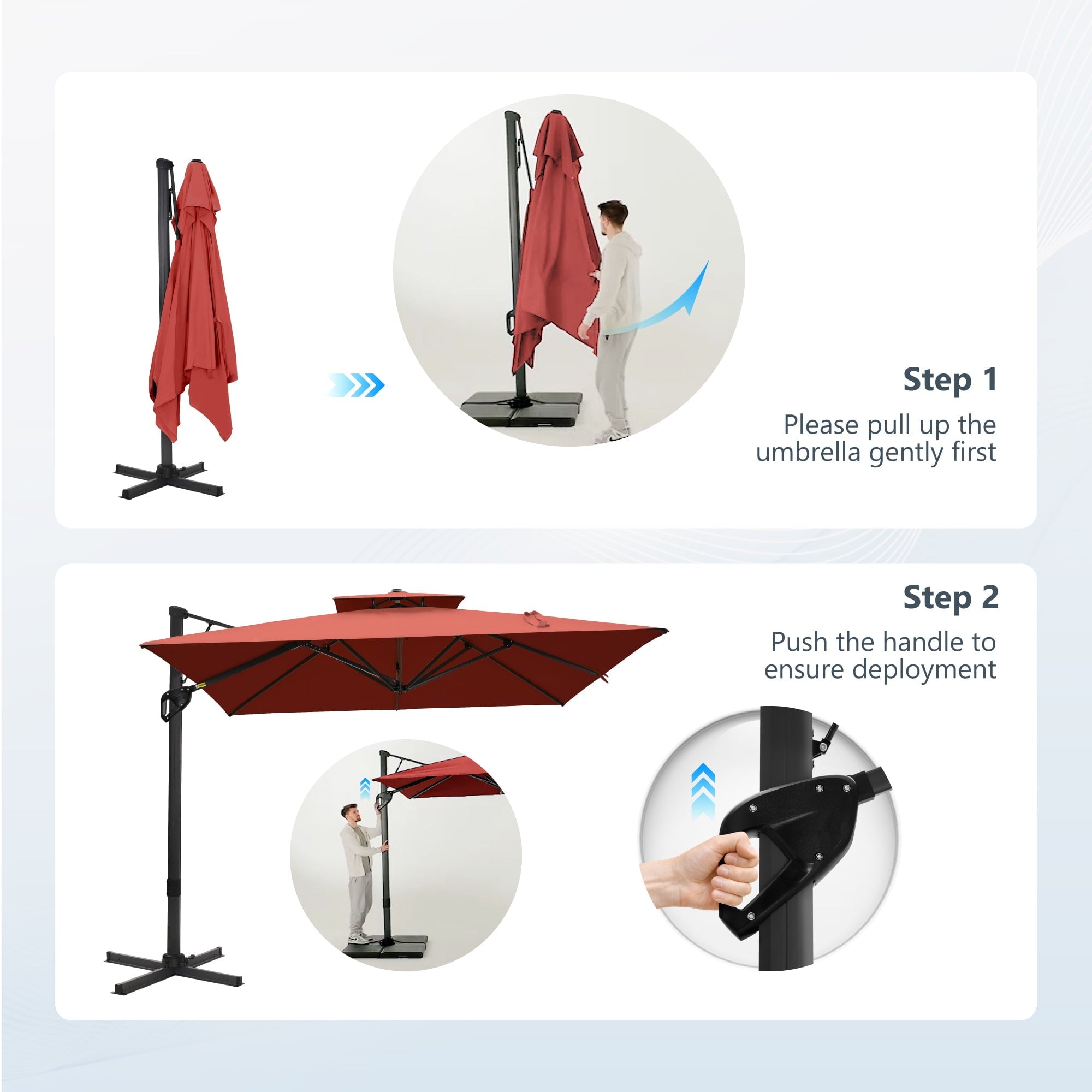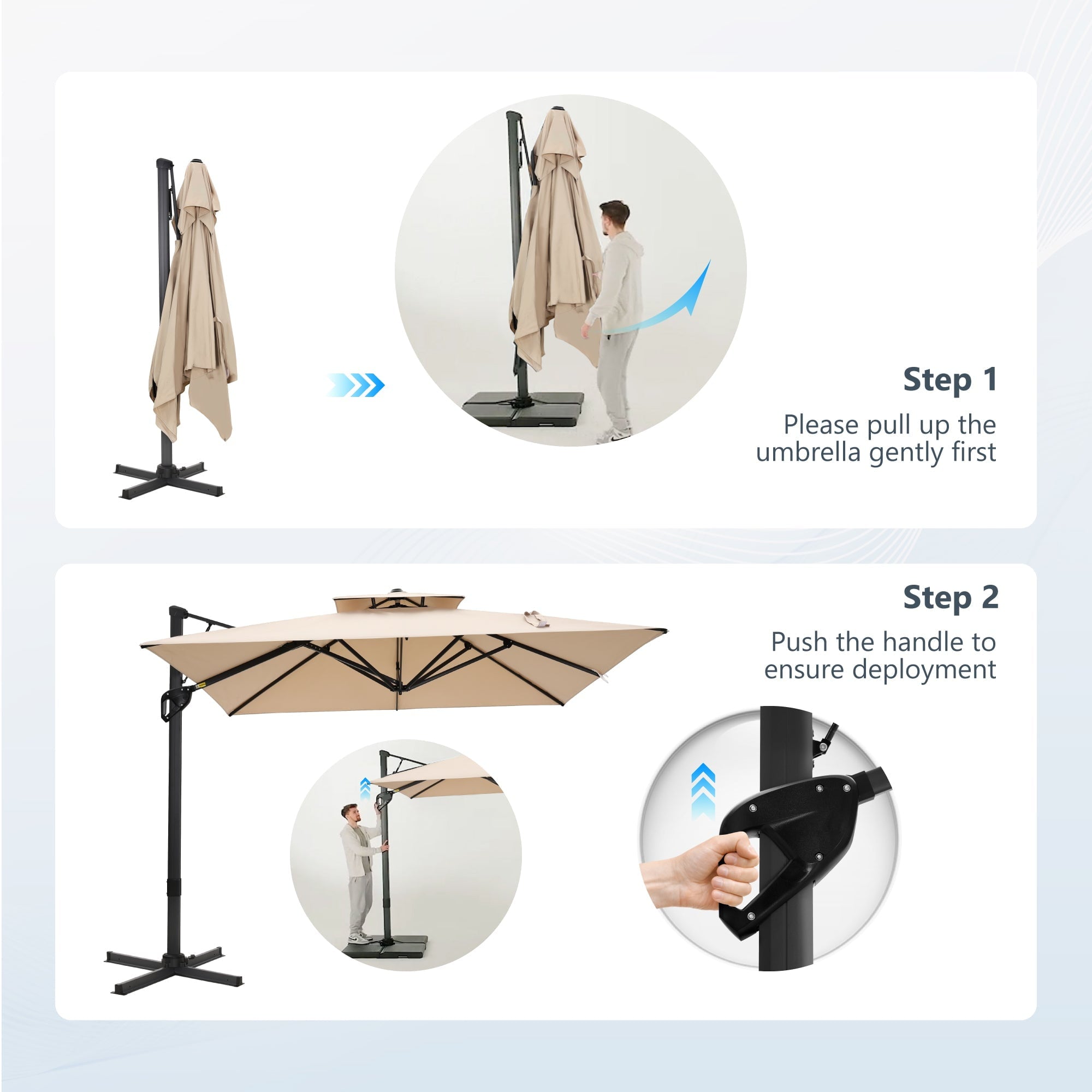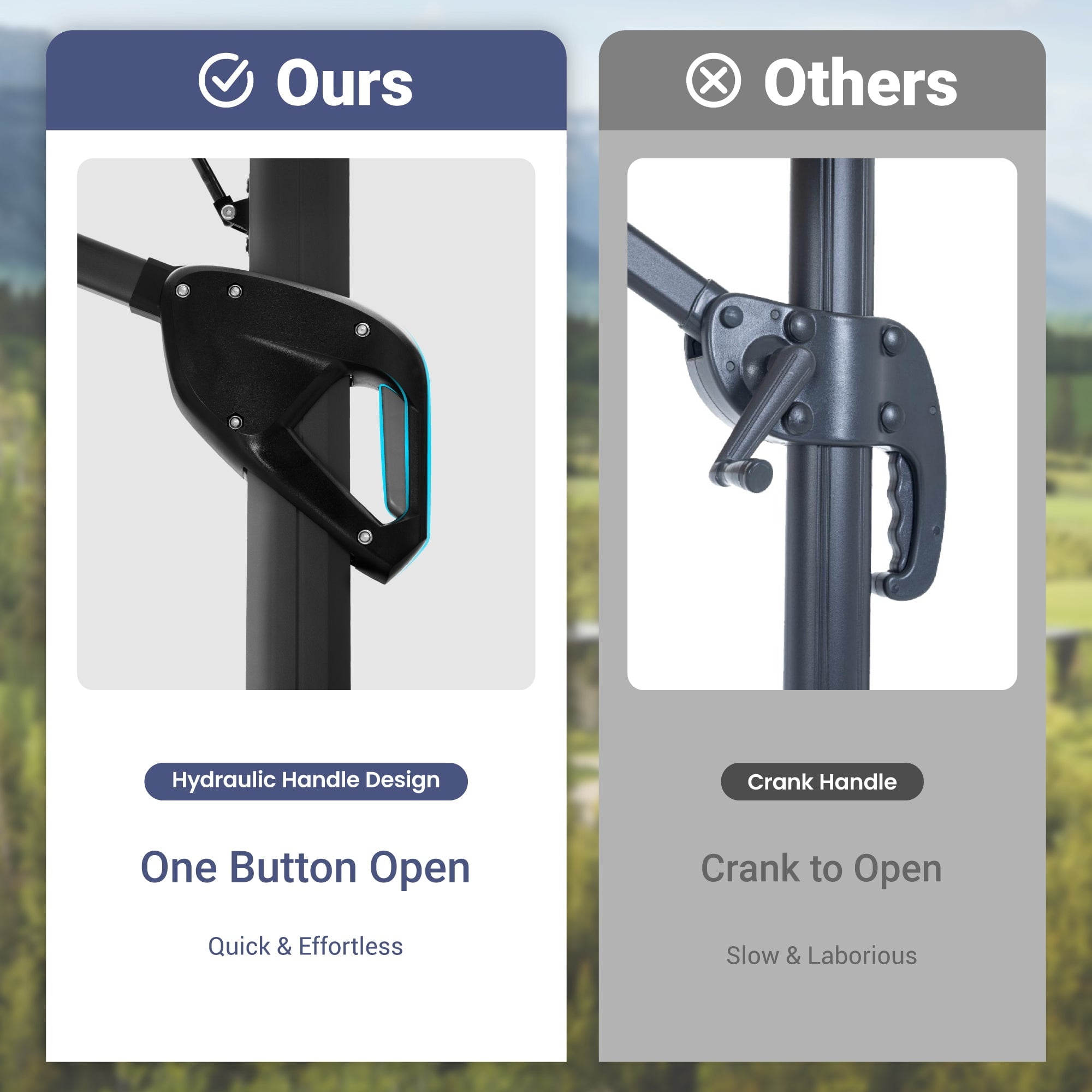 This umbrella has a hydraulic system. Please lift it slightly before pushing the handle to ensure a smooth and safe opening, as the umbrella is heavy.