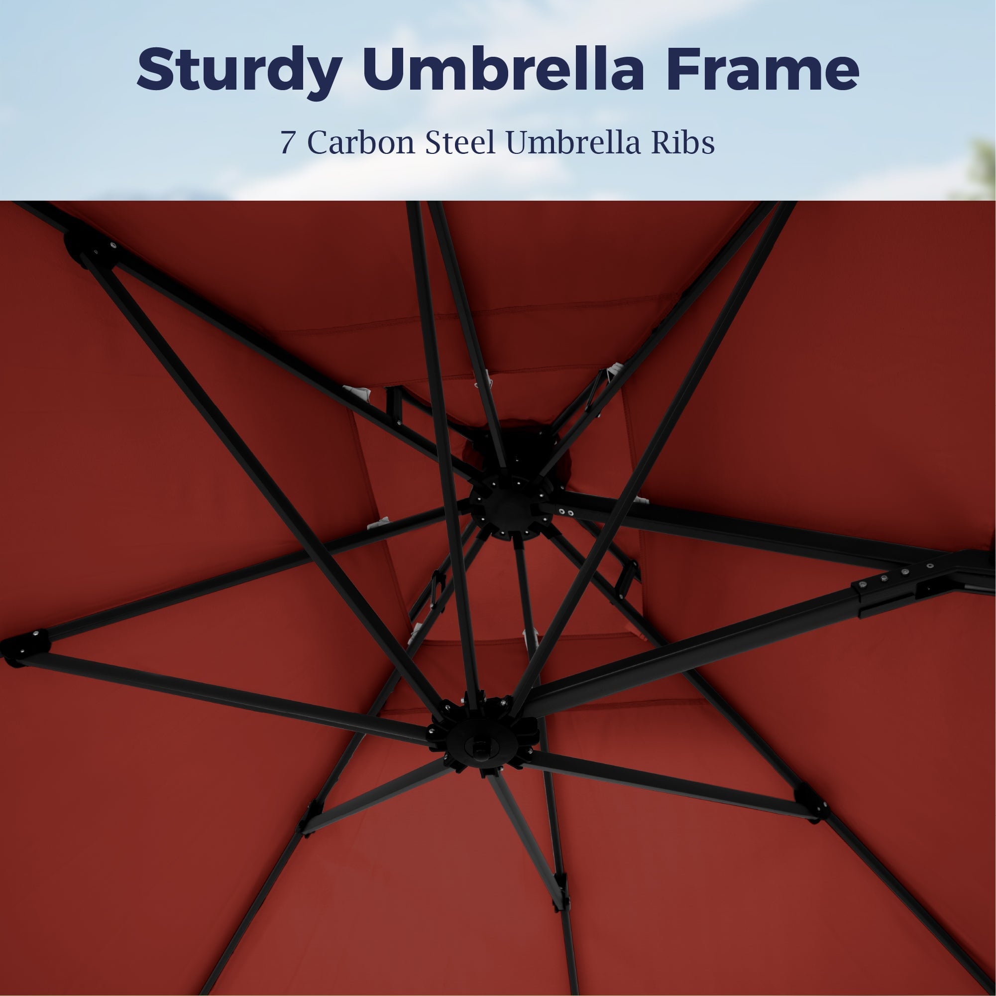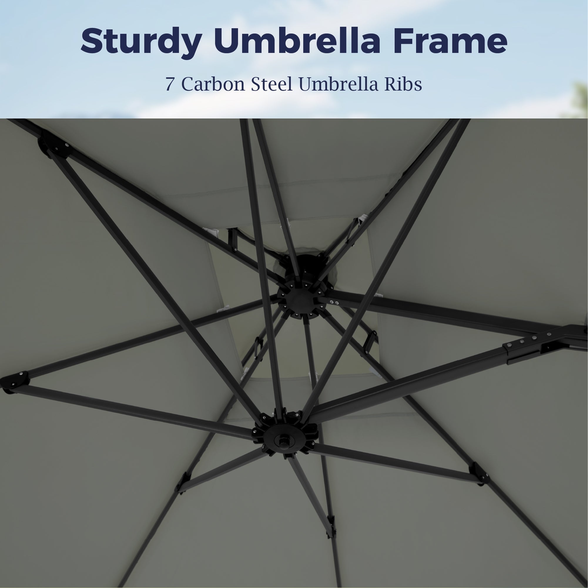 - 【Sturdy Aluminum Frame】Rustproof and stylish, this umbrella features a durable aluminum pole and seven carbon steel ribs for superior strength and weather resistance, enhancing the aesthetic appeal of your outdoor space.