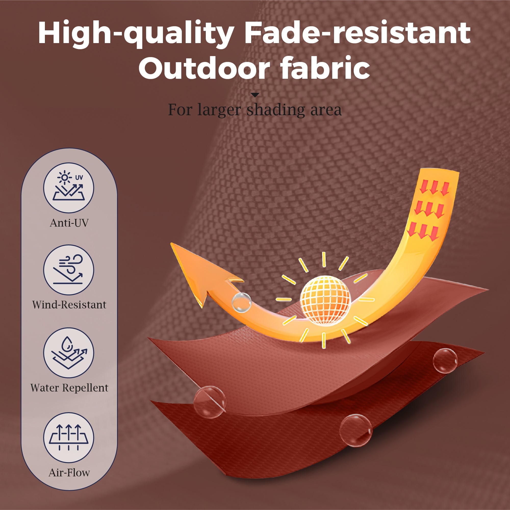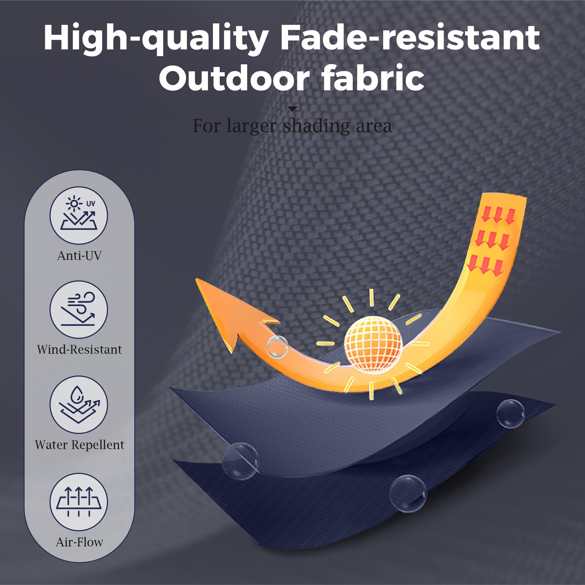 - 【250gsm UV-Resistant Fabric】Made from high-quality solution-dyed polyester with a higher gram weight, this fabric features thicker threads and a denser coating. This results in a sturdier material that minimizes the risk of tearing and provides superior UV protection due to smaller gaps in the weave, ensuring long-lasting color and resilience against sun damage.