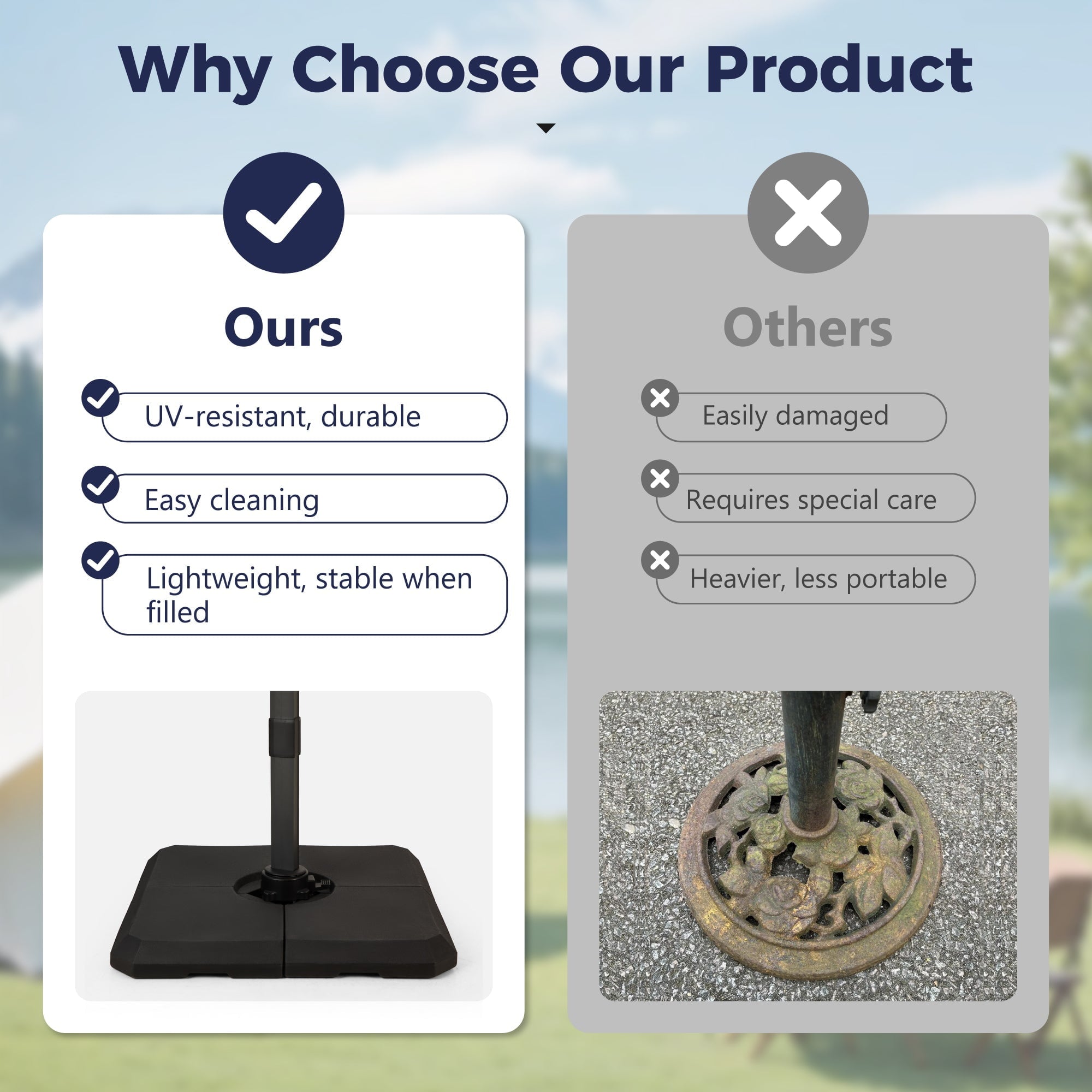 The installation process is straightforward. You need to buy a base separately for this umbrella. Once the base is set up, insert the heavy umbrella canopy into it firmly. It may require some strength, but once secured, you can use it with confidence. If you have any questions or concerns, please contact us.