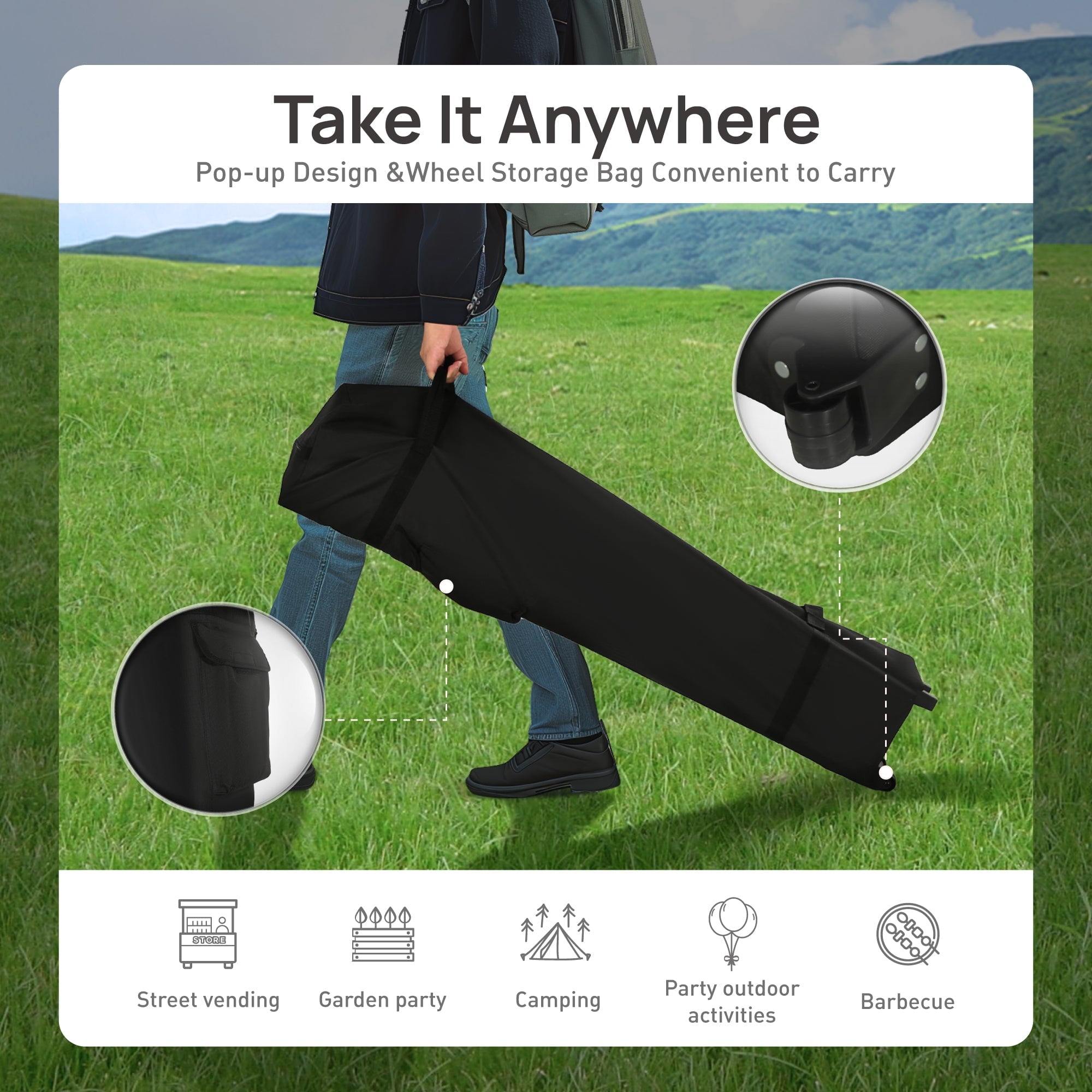 - Portable & Convenient: It comes with a convenient wheeled carrying bag and includes essential accessories like stakes and sandbags for extra stability.