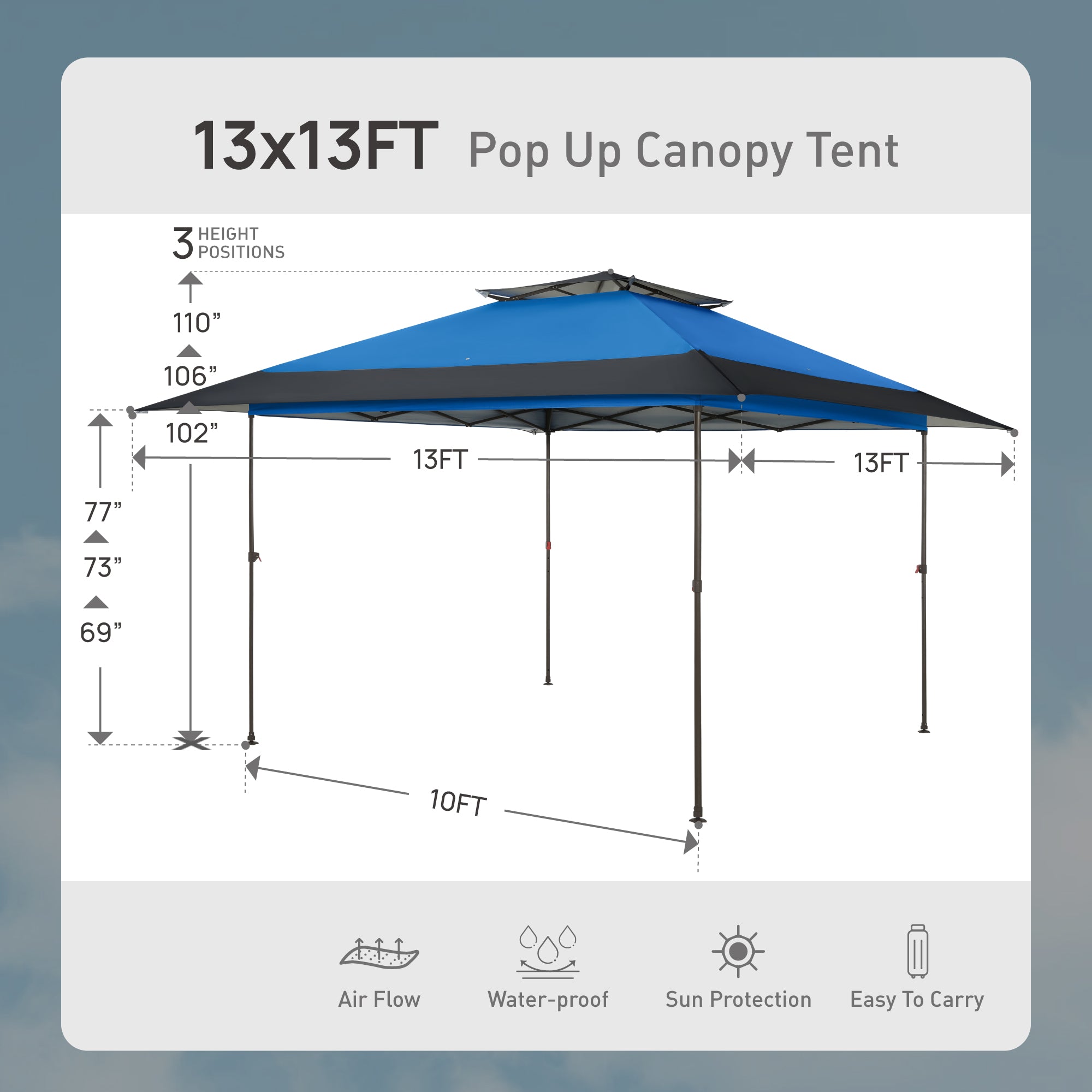 - Sturdy Steel Frame: This 13x13ft canopy features a strong steel frame built for durability and dependable support, ensuring it stands firm in any setting.