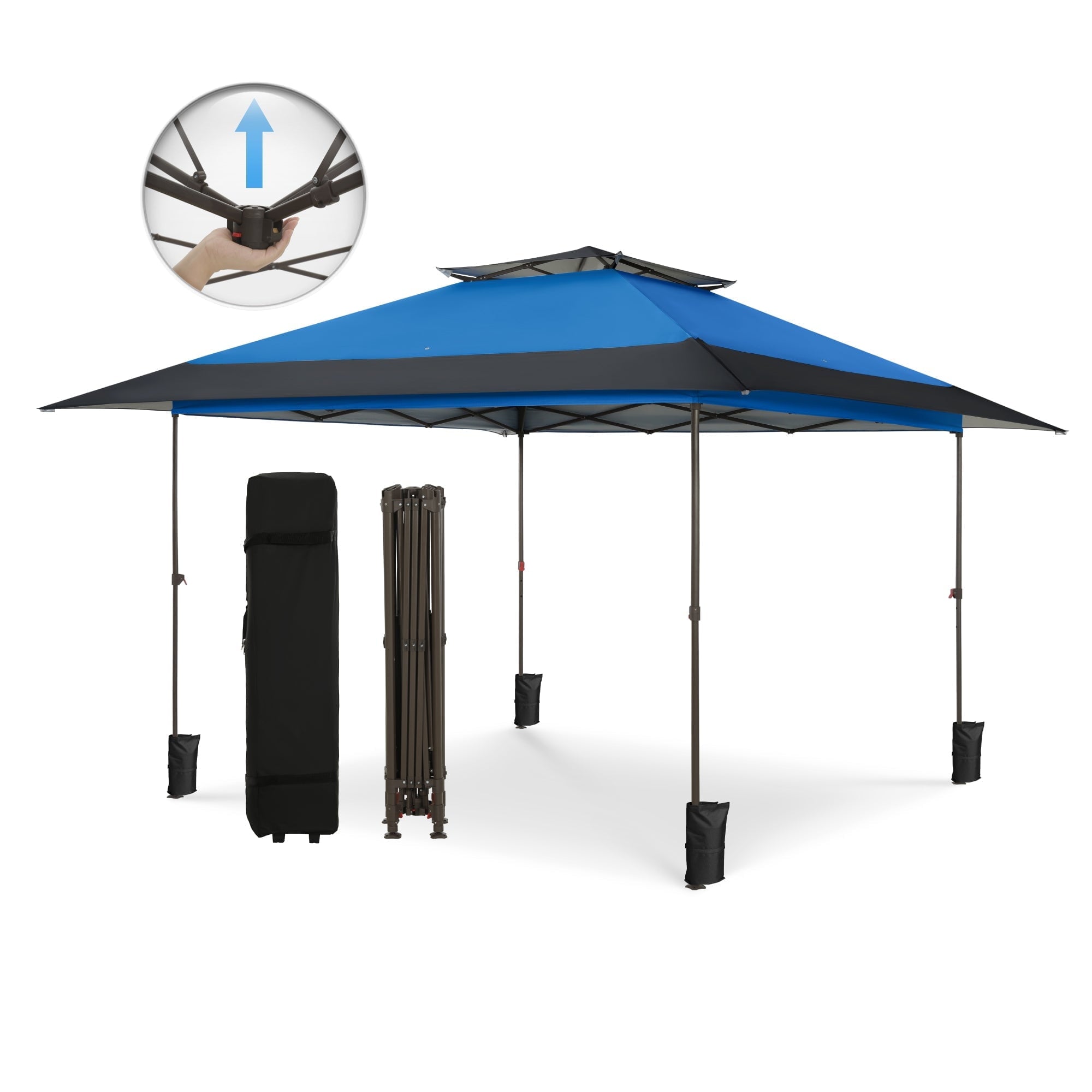 Alpha Joy 13x13ft Double Roof Pop-Up Canopy! This versatile tent comes in vibrant blue, brown, and green colors, making it perfect for any occasion. Its sturdy steel frame ensures durability, while the center lock structure provides added stability. The double roof design keeps you well-ventilated and offers extra protection from the elements. Enjoy outdoor fun without worry, as this canopy is waterproof and features UPF 50+ UV protection to shield you from harmful rays. Whether it’s a picnic, party, or camping trip, this canopy is your go-to choice for shade and shelter!