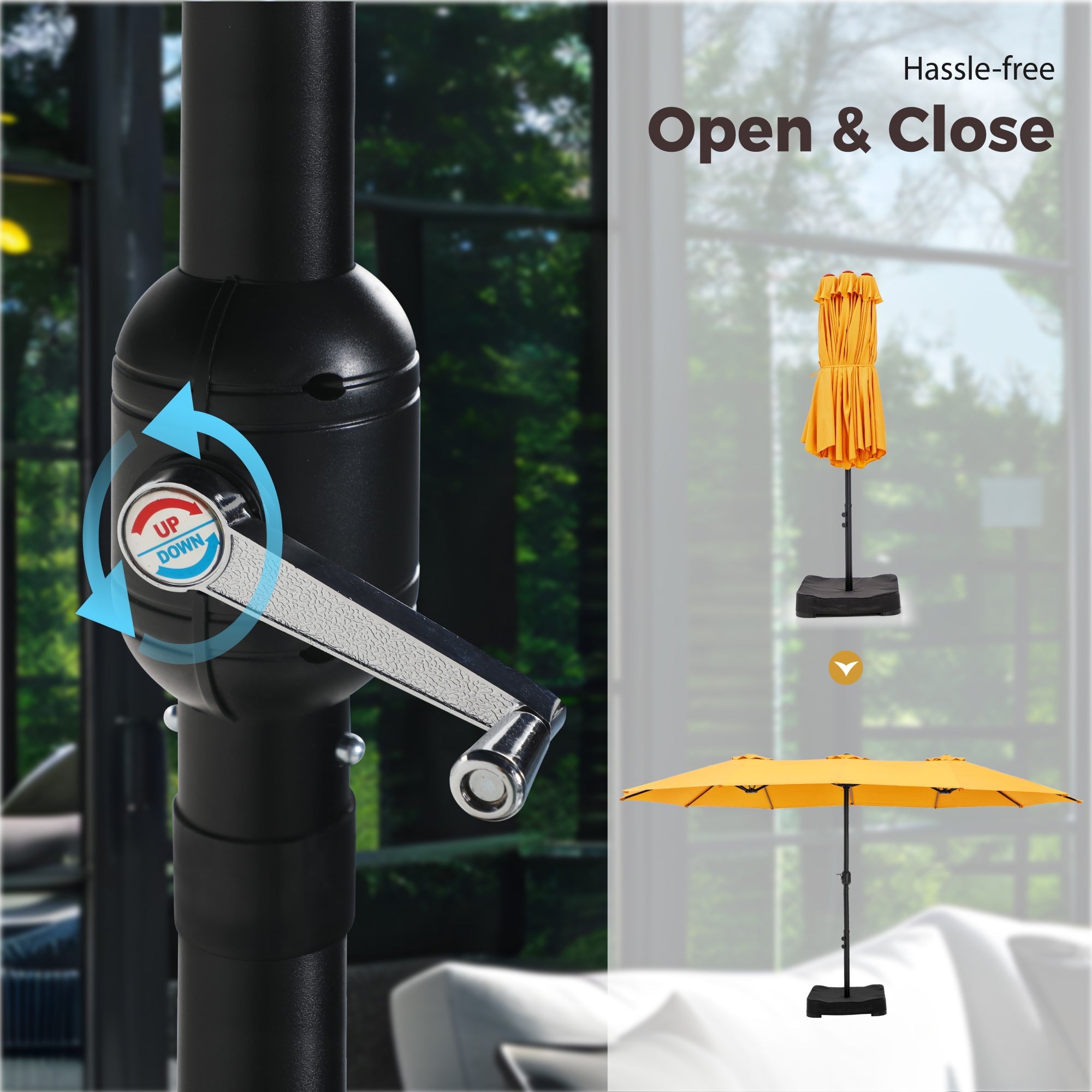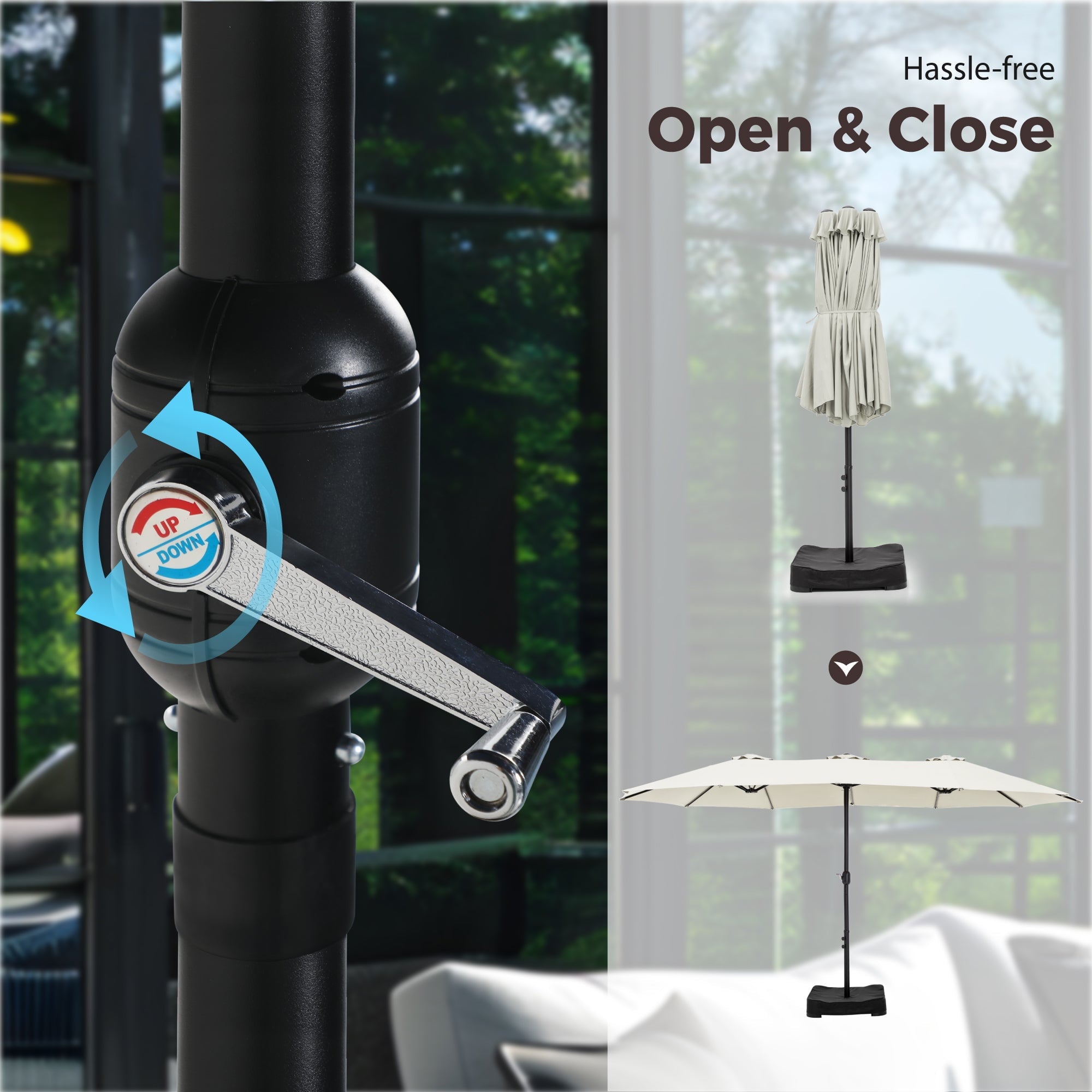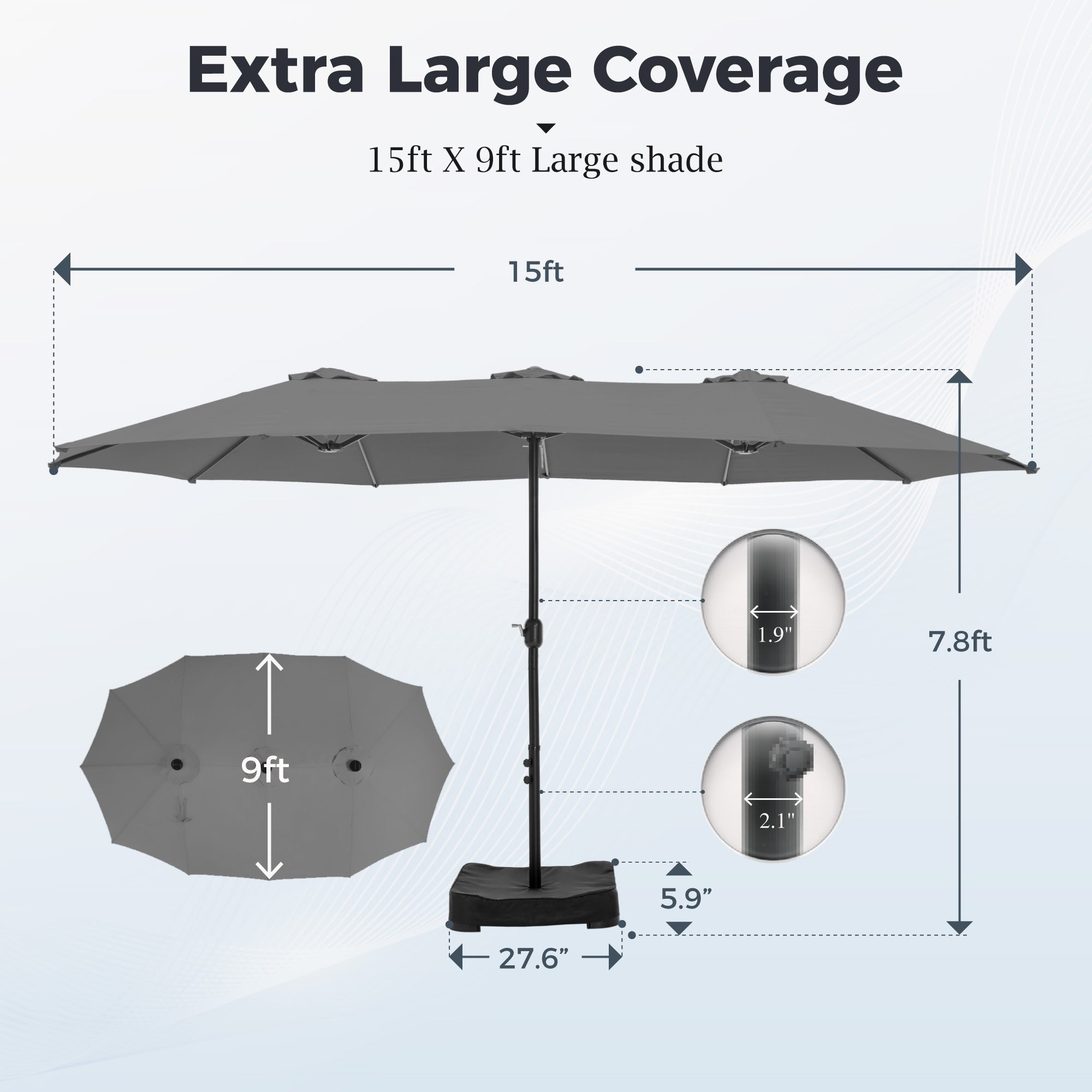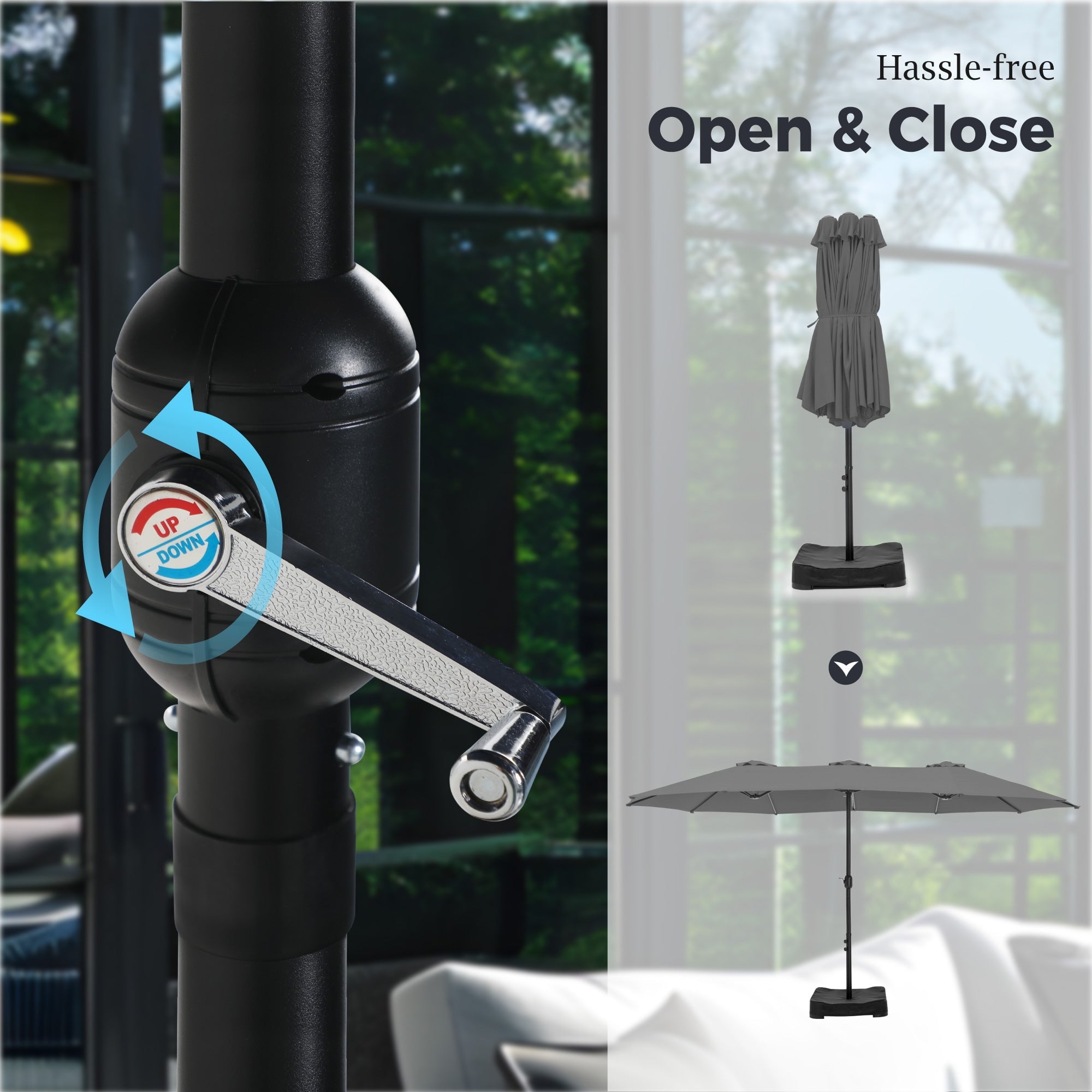 Alpha Joy 15ft Outdoor Patio Umbrella Extra-Large Double-Sided Garden Umbrella with Crank Handle and Base - Smoky Gray
