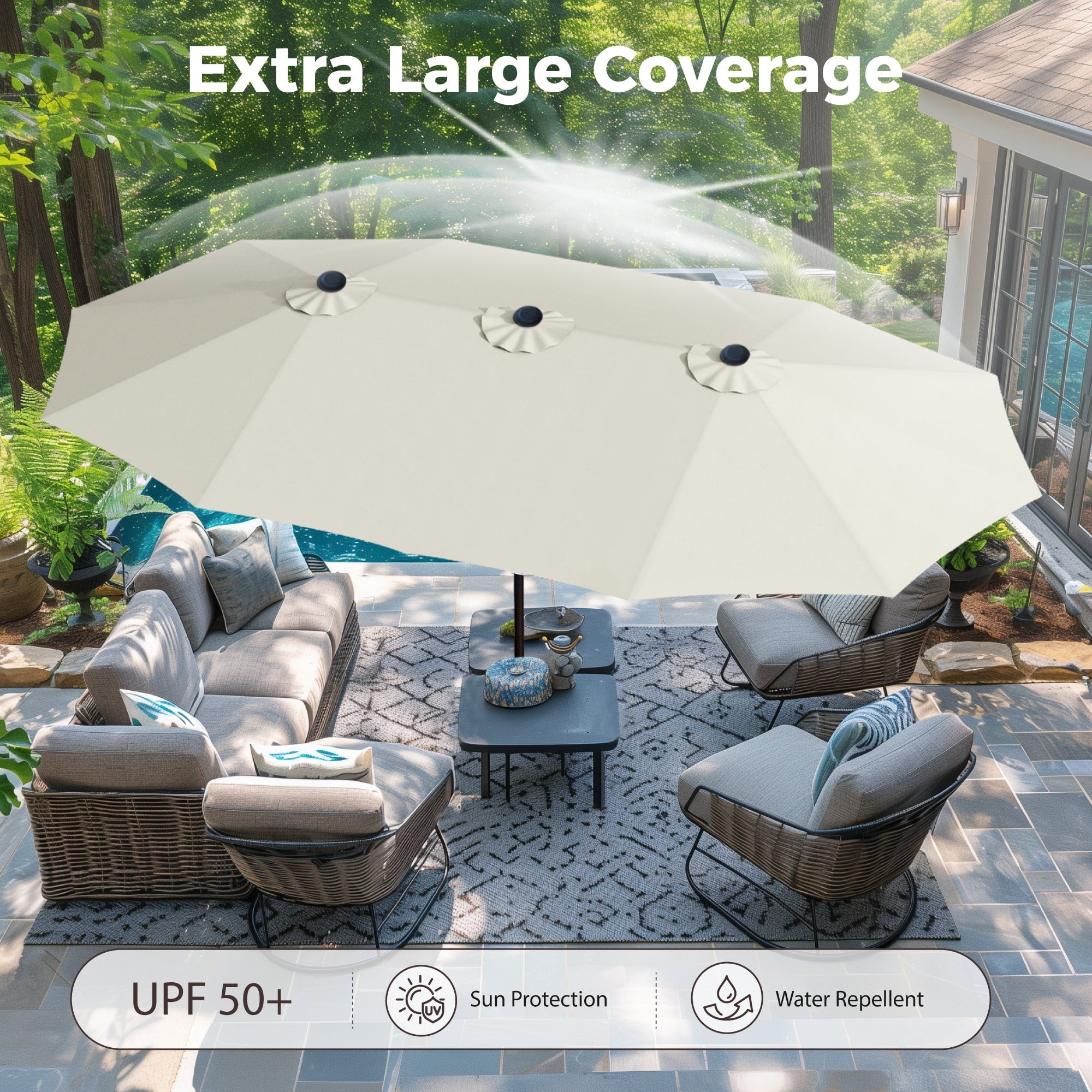【Large Shading Area】: This 15ft umbrella provides a spacious shading area, perfect for outdoor gatherings, picnics, and relaxing in your backyard.