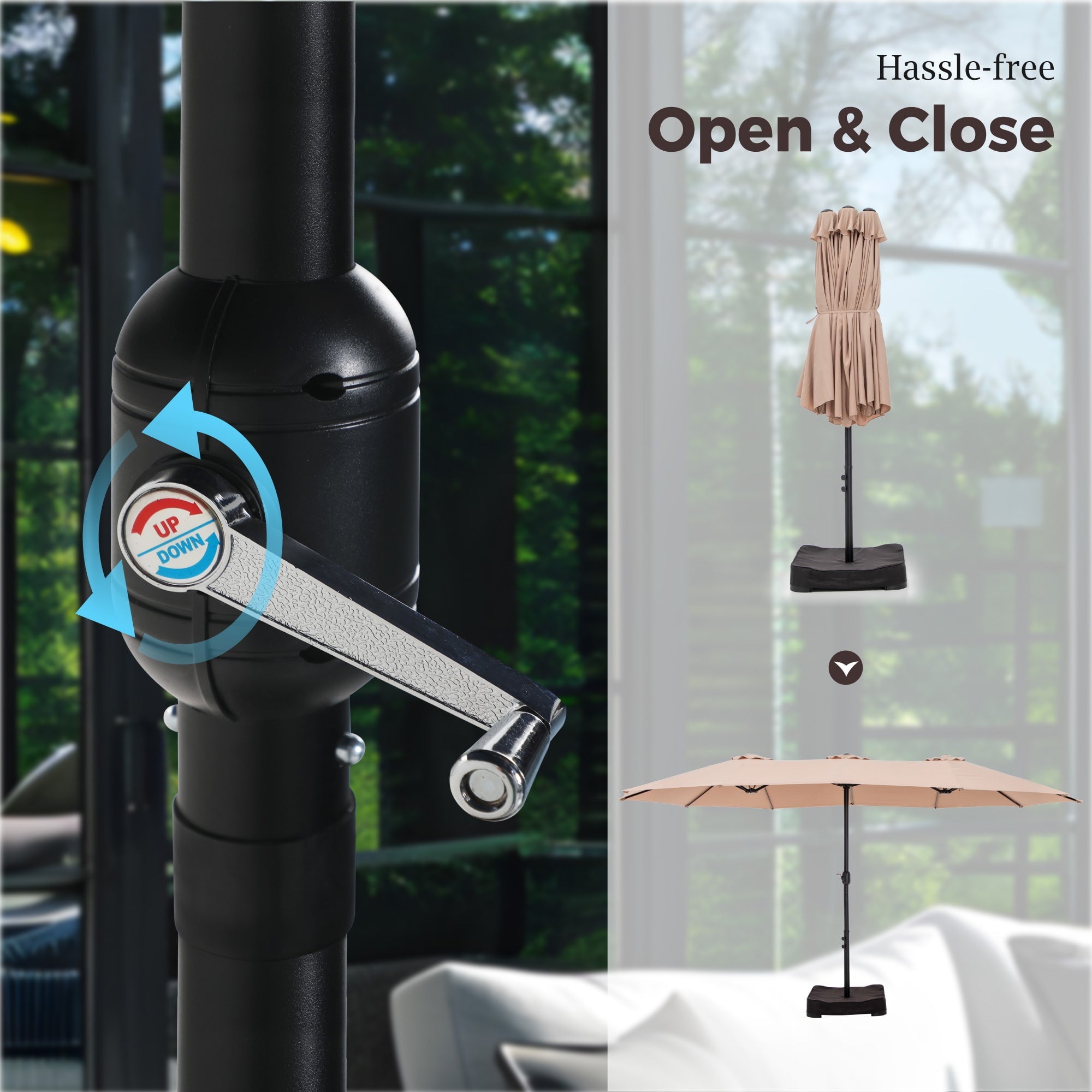 Alpha Joy 15ft Outdoor Patio Umbrella Extra-Large Double-Sided Garden Umbrella with Crank Handle and Base – Smoky Gray