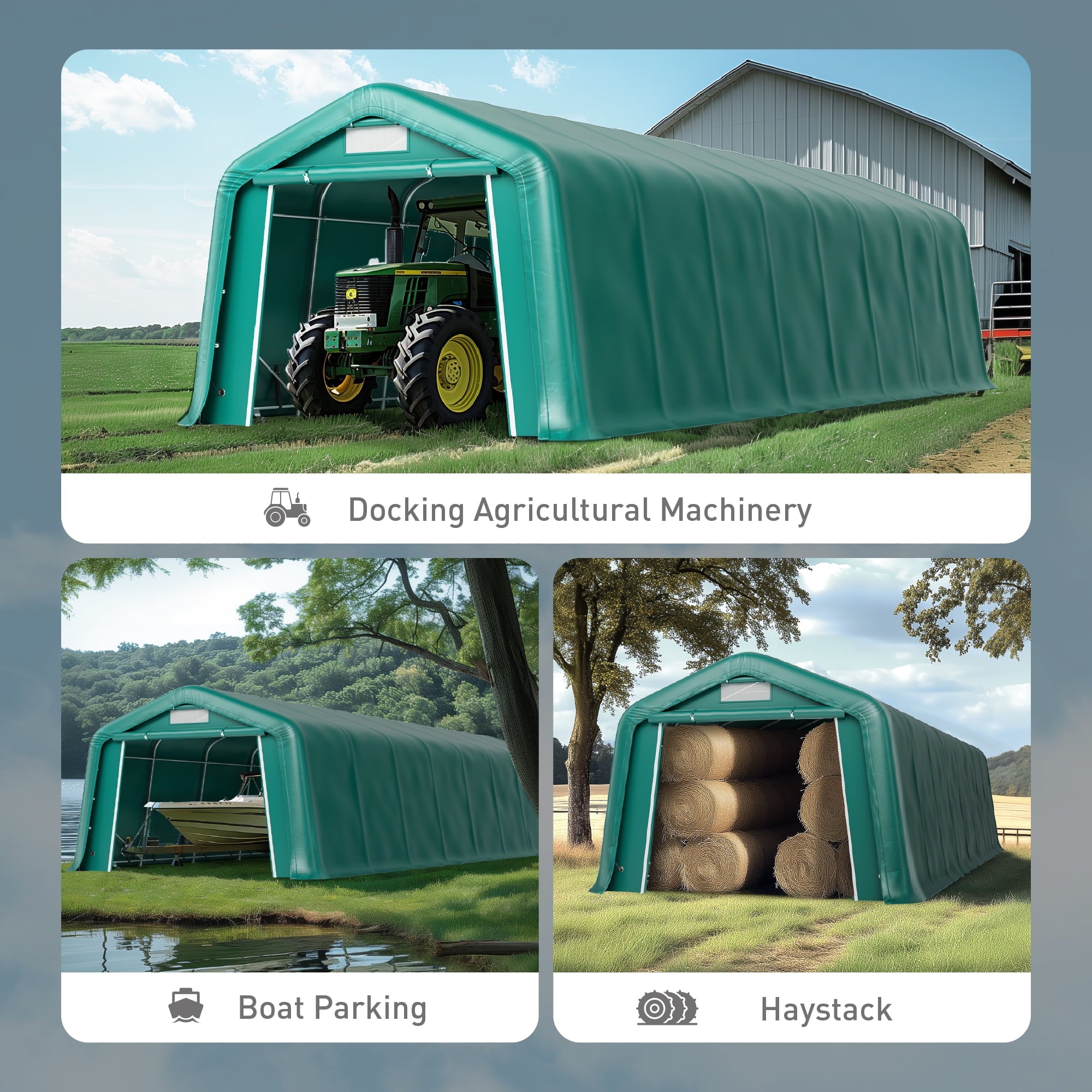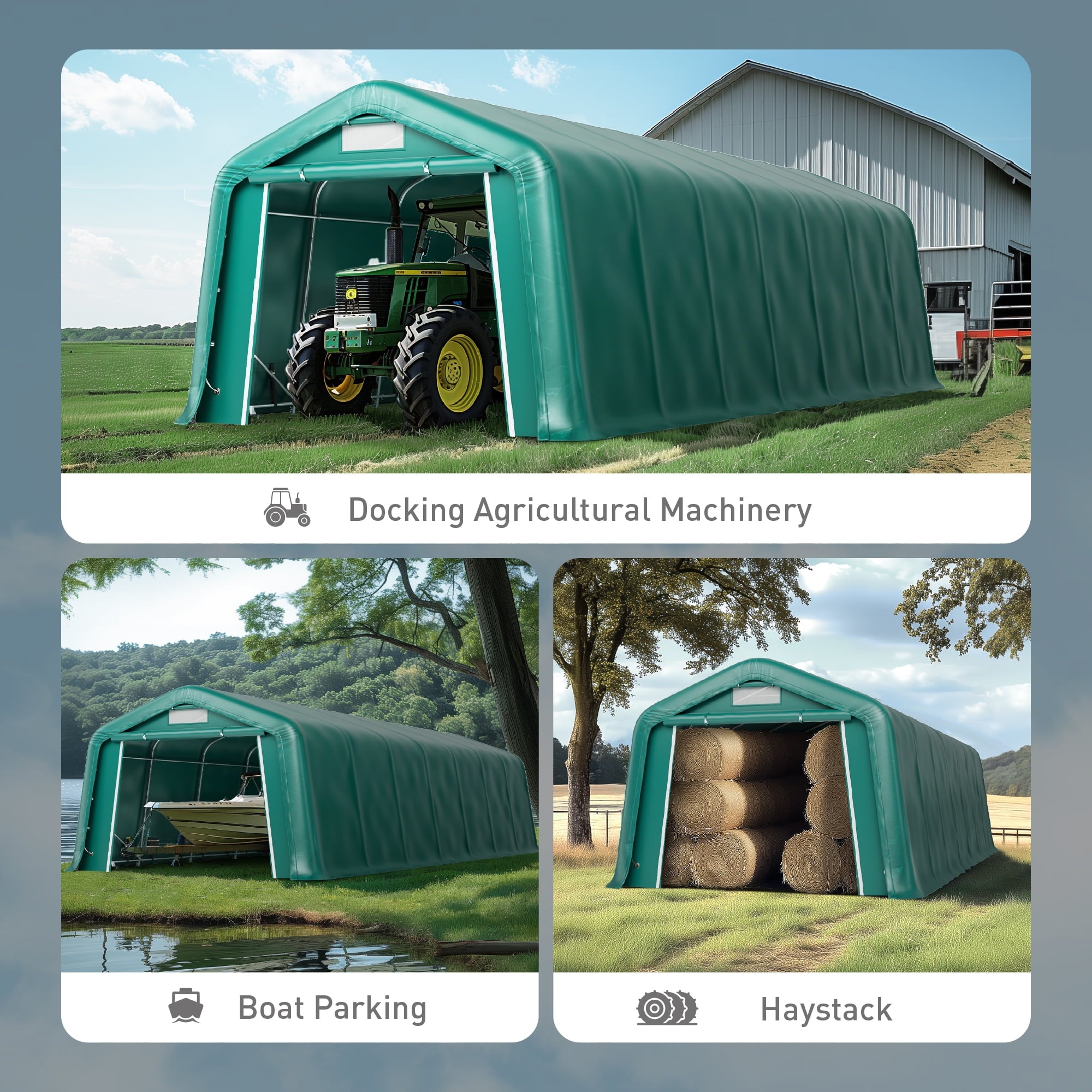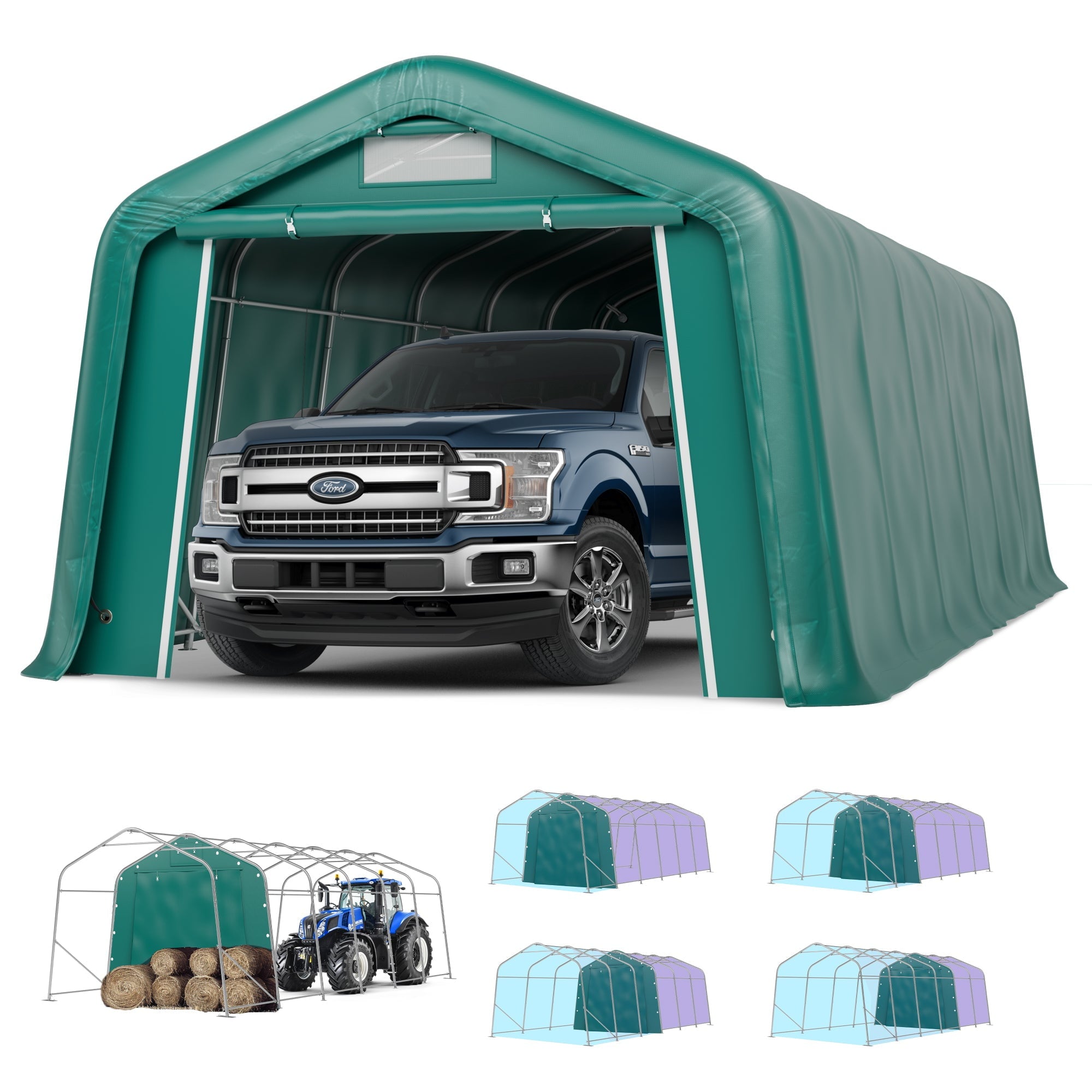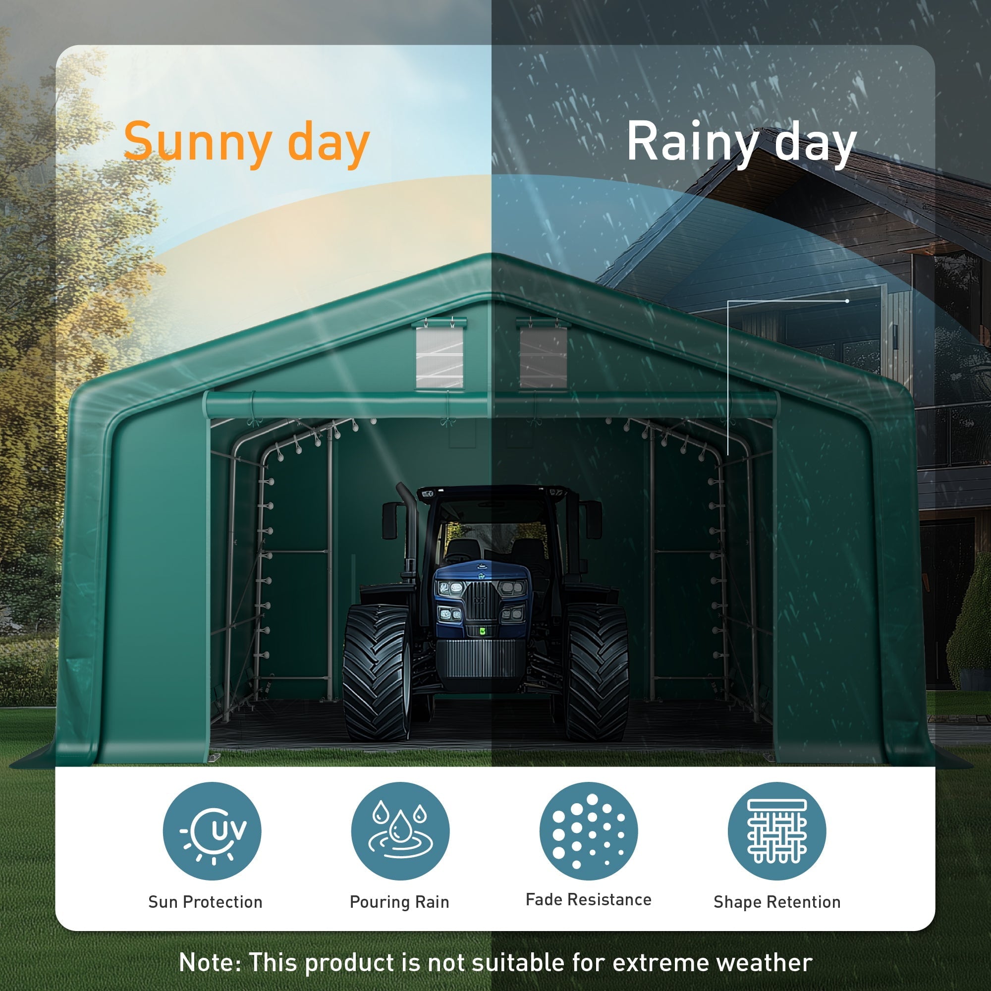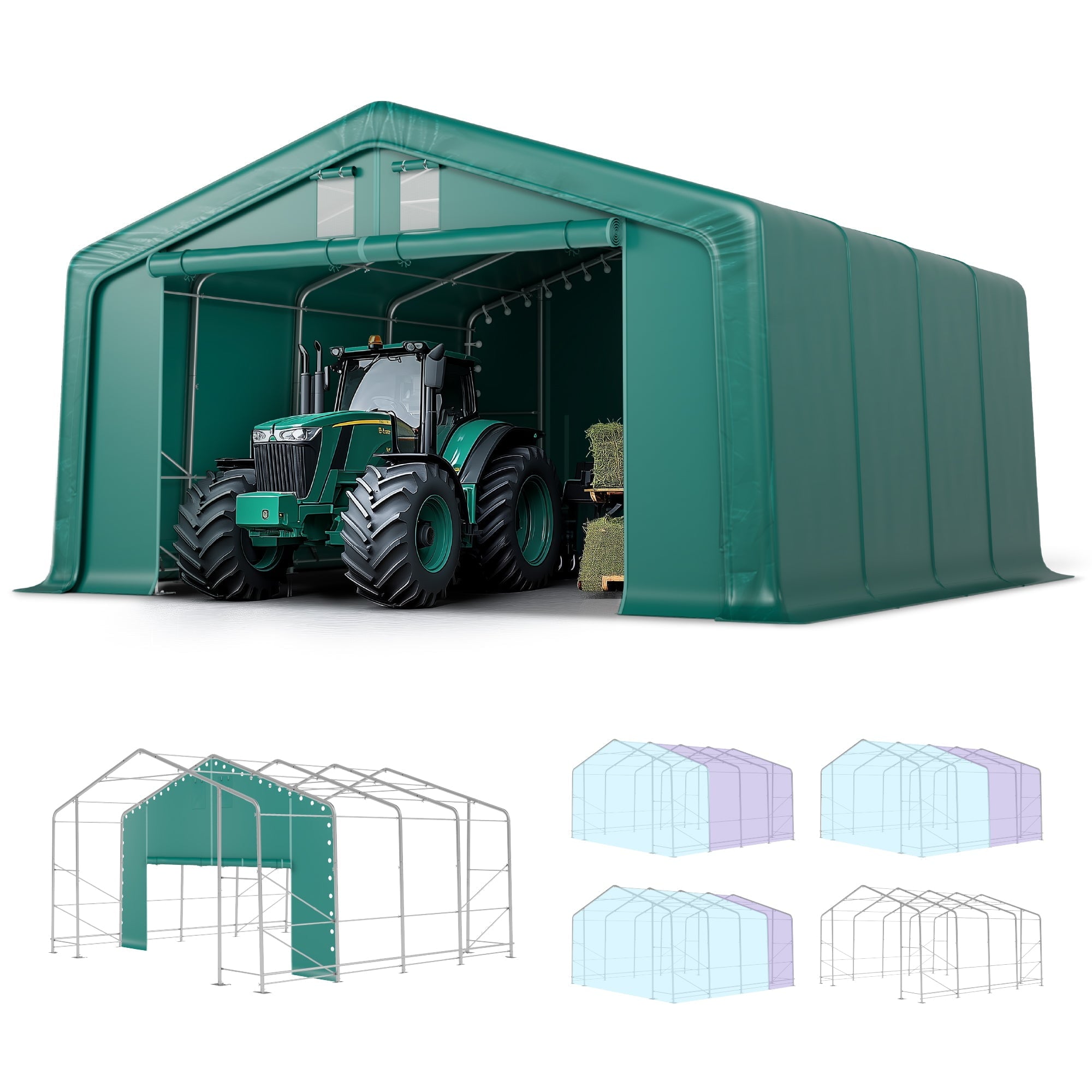 - Reliable Stability and Support: The Alpha Joy agricultural storage shed comes with tent clamps and 8 durable nail-type ground stakes (10*300mm) for a solid setup that meets all your outdoor needs. Its 5.4mm square ground panels and door tightening loops guarantee a secure hold, preventing wind lift and keeping your space safe and sound.