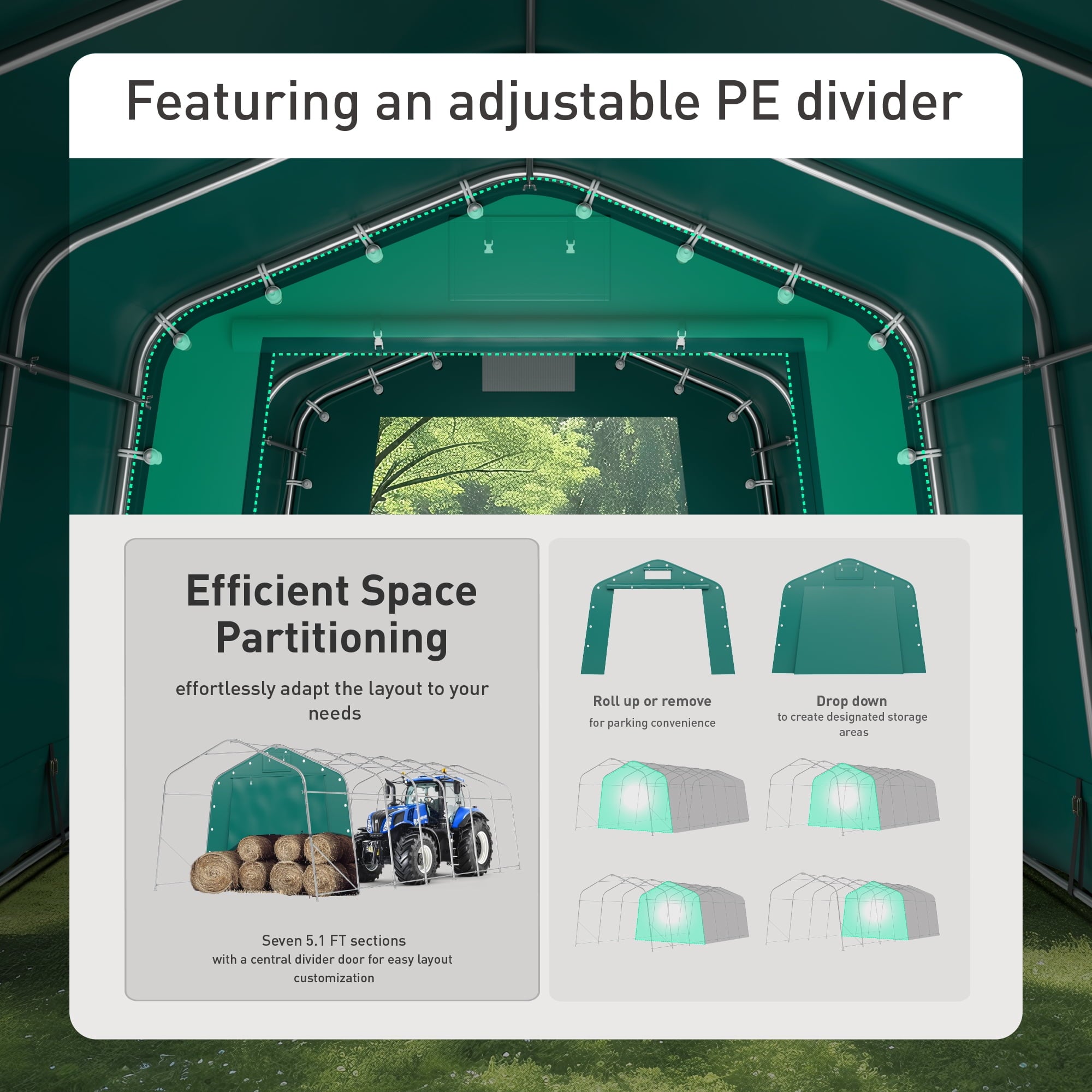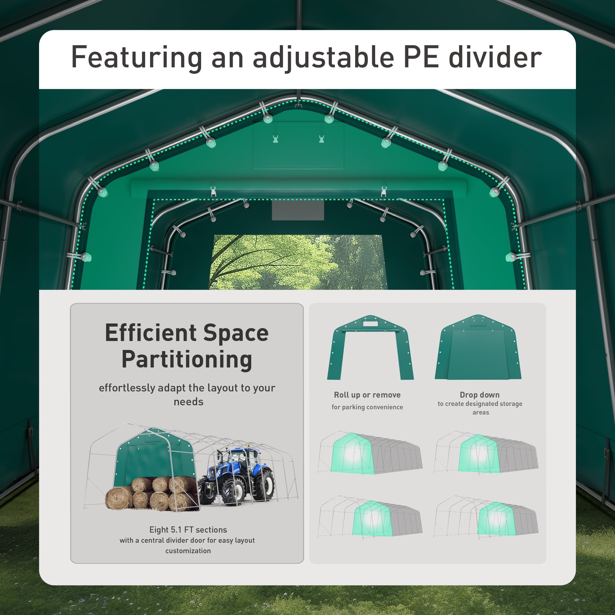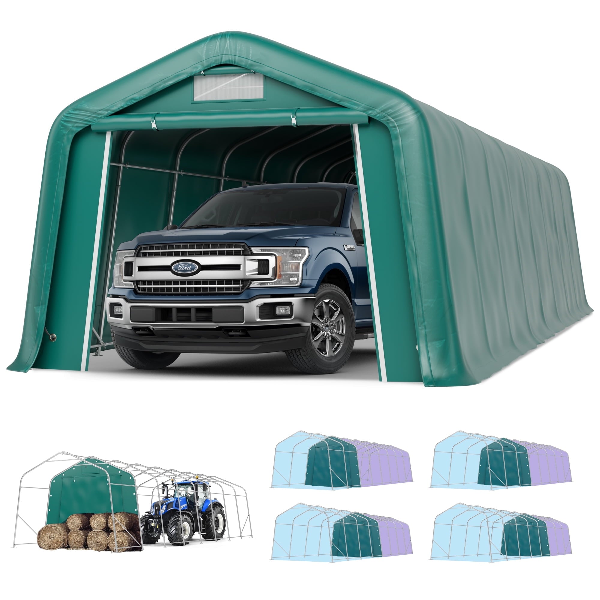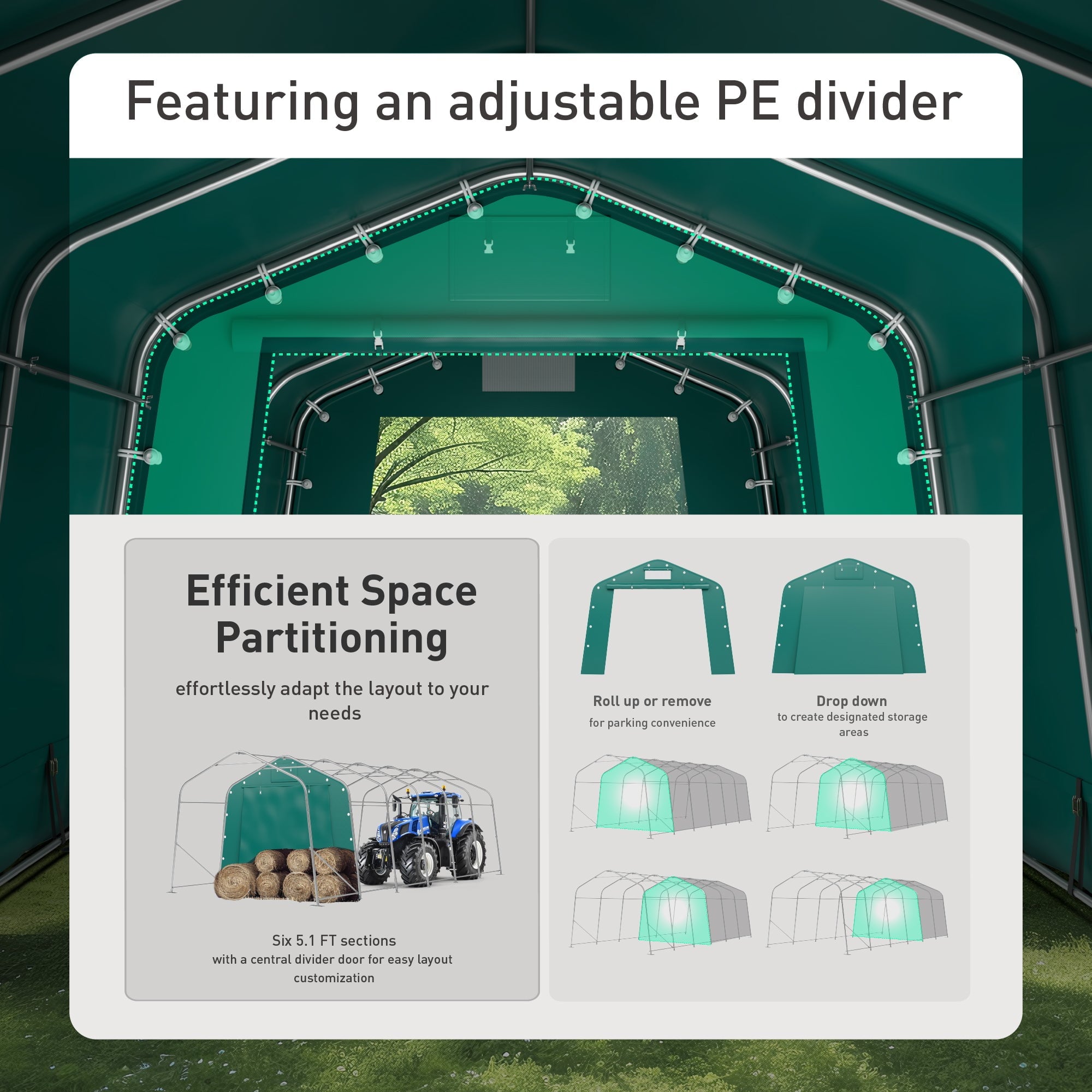 - Reliable Stability and Support: The Alpha Joy agricultural storage shed comes with tent clamps and 8 durable nail-type ground stakes (10*300mm) for a solid setup that meets all your outdoor needs. Its 5.4mm square ground panels and door tightening loops guarantee a secure hold, preventing wind lift and keeping your space safe and sound.