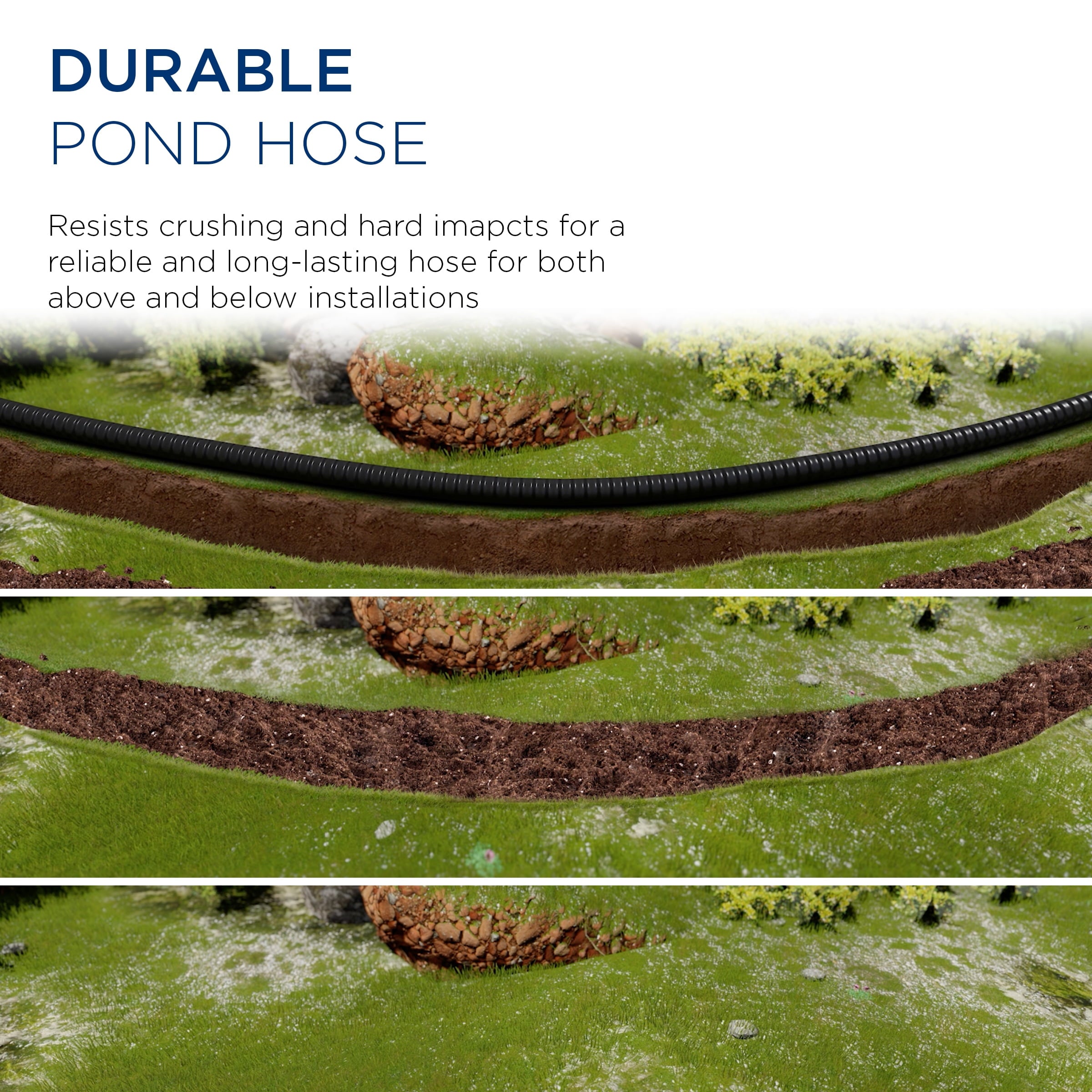 - Features an ultra flexible hose for both above or below installations use, used with sch 4 fittings, resistible to crushing and impacts