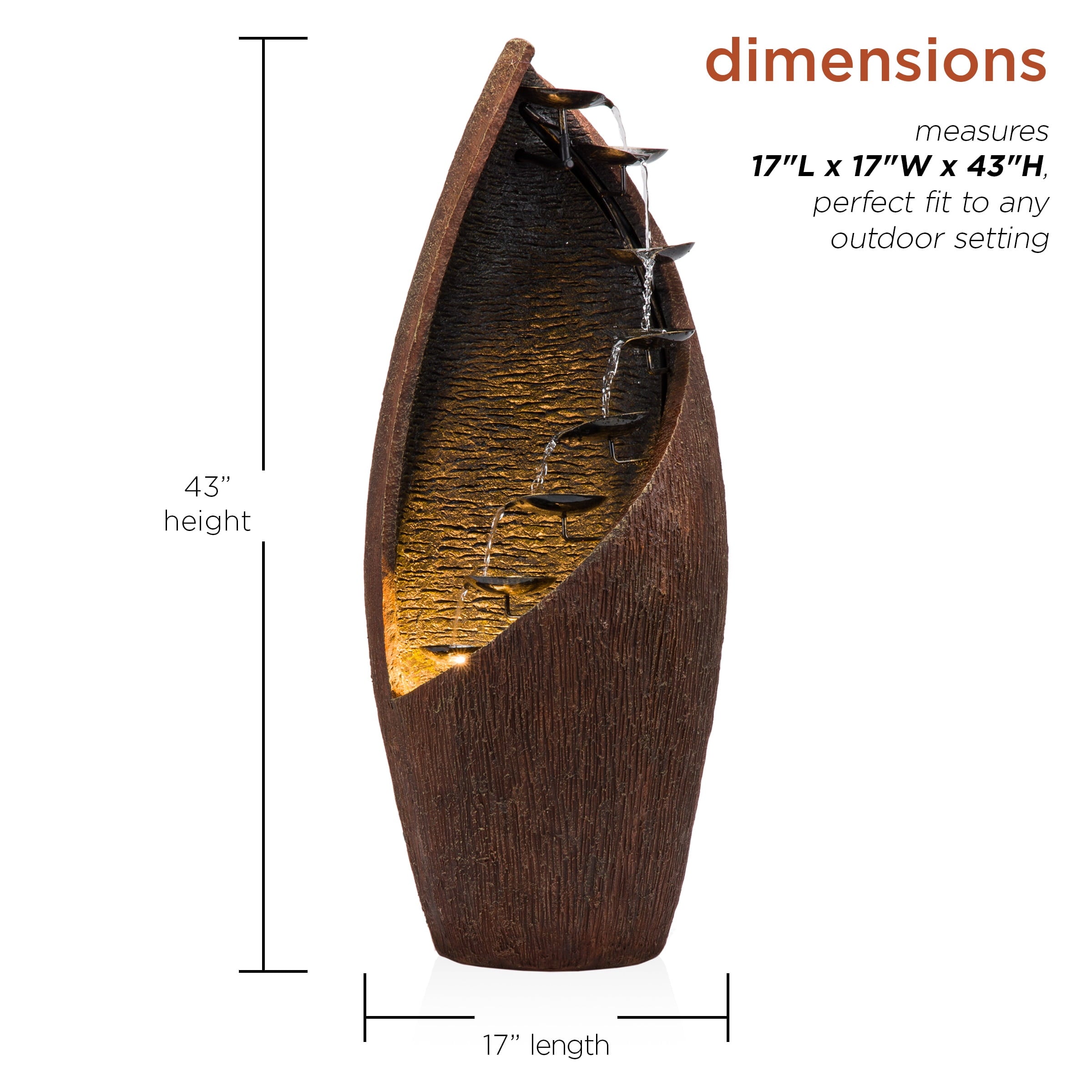 Unplug from the day and meditate to the sound of flowing water with Alpine Corporation’s 43″ tall Outdoor Tiered Fountain with Replaceable LED Lights. This relaxing floor fountain statue provides a tranquil and soothing addition to your yard, porch, or patio. Constructed from durable polystone, the fountain is weatherproof, rust-resistant, and resilient for use in your home’s interior décor or outside. This unique and versatile decor piece includes replaceable white LED lights for a tranquil and soothing addition to your home’s backyard or indoor decor. For quick installation and convenient operating, the fountain includes all necessary parts, including a pump, to begin creating an outdoor oasis. This fountain measures 17″L x 17″W x 43″H to fit almost any indoor or outdoor space and includes a one-year manufacturer’s warranty from date of purchase.