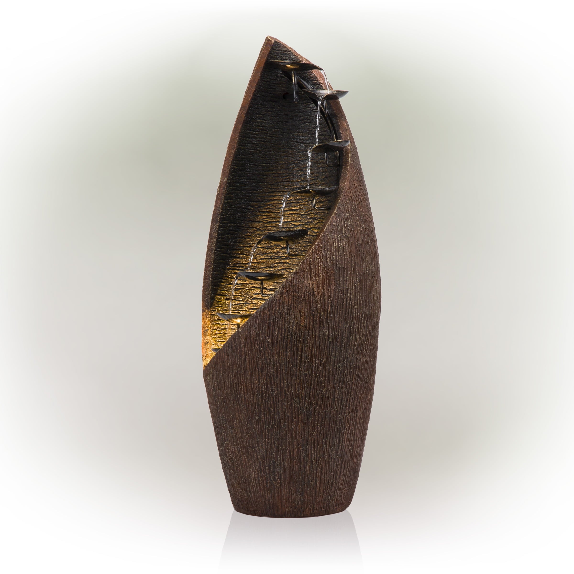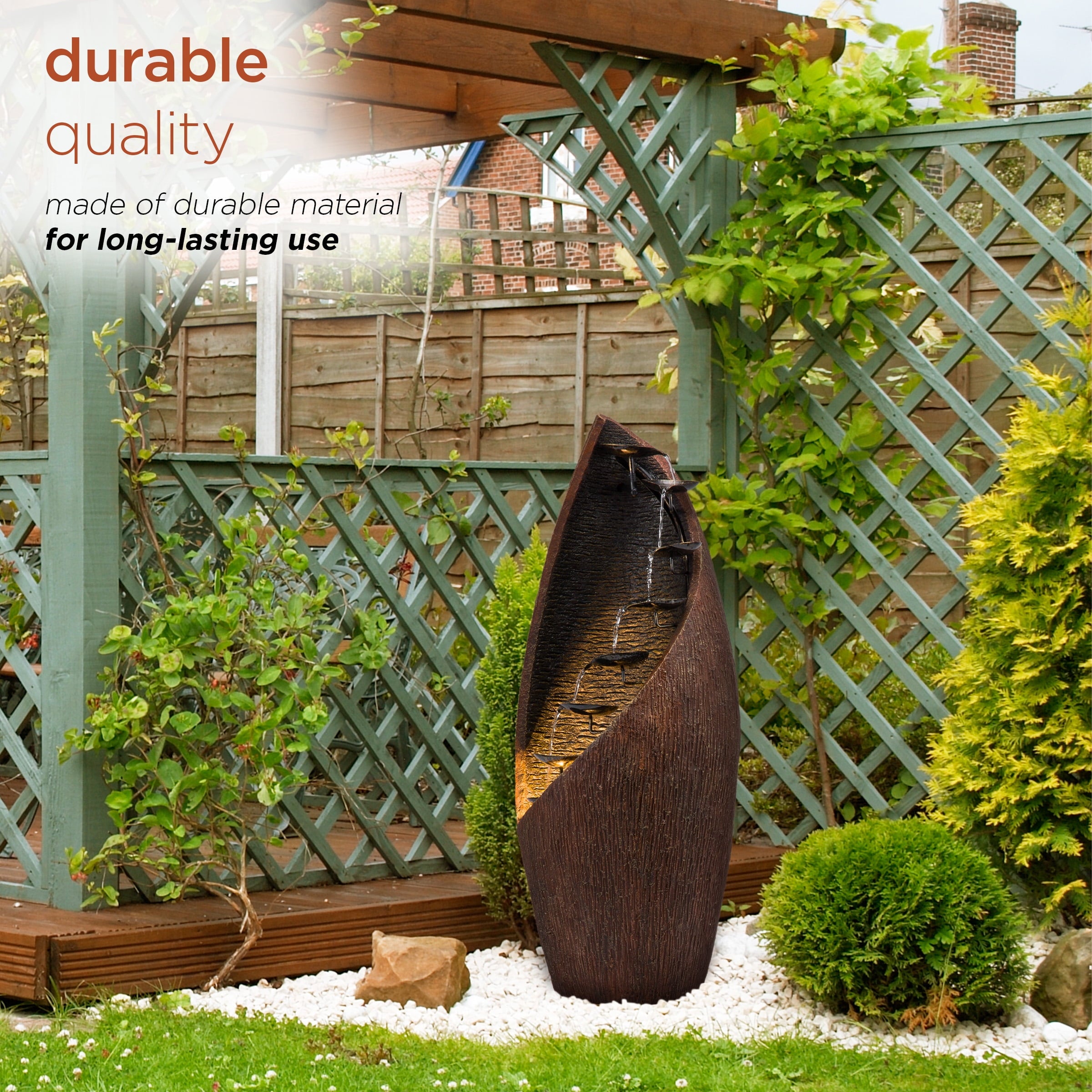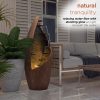 - Contemporary cascading water fountain with a natural look and replaceable white LED lights, providing a tranquil and soothing addition to your indoor or outdoor living space
