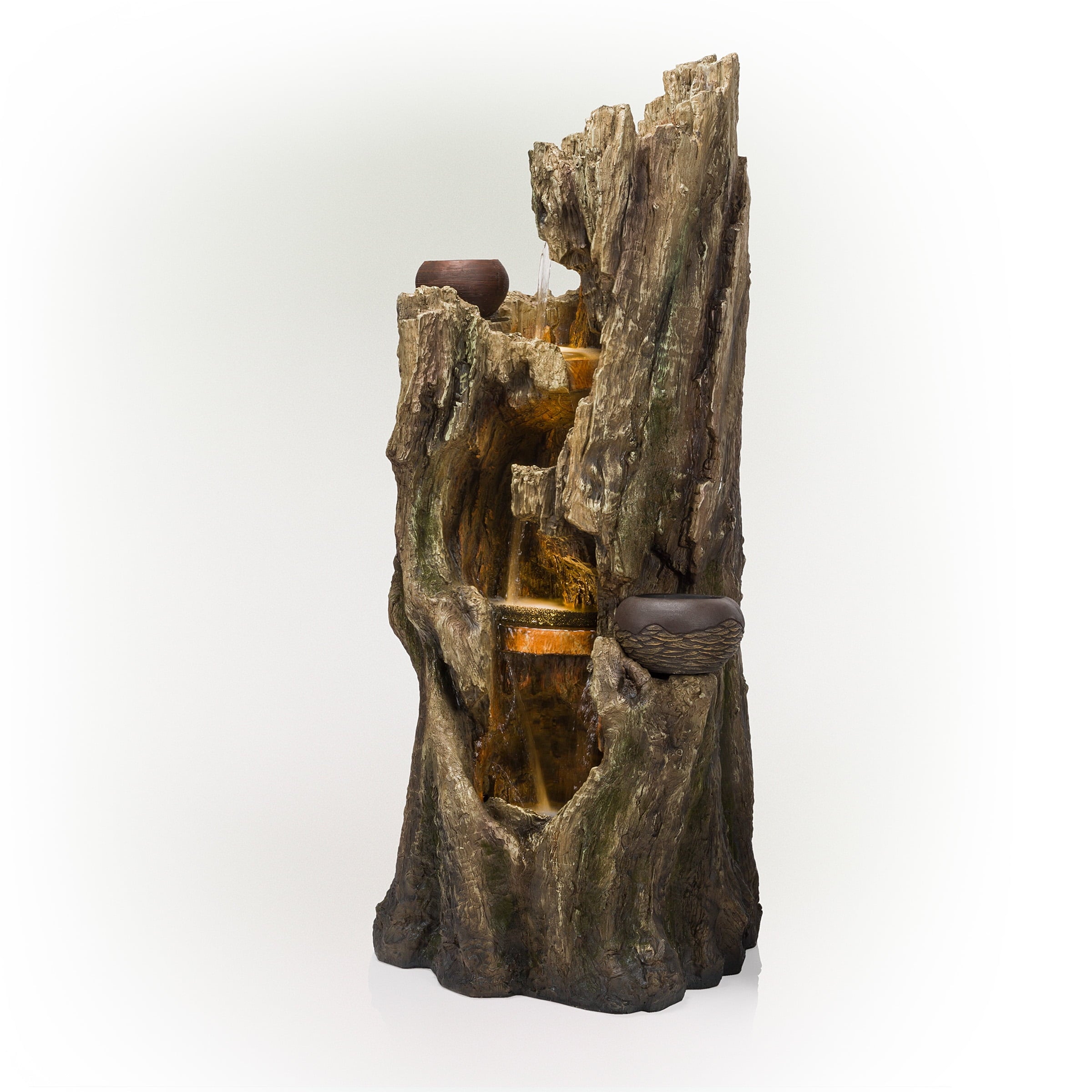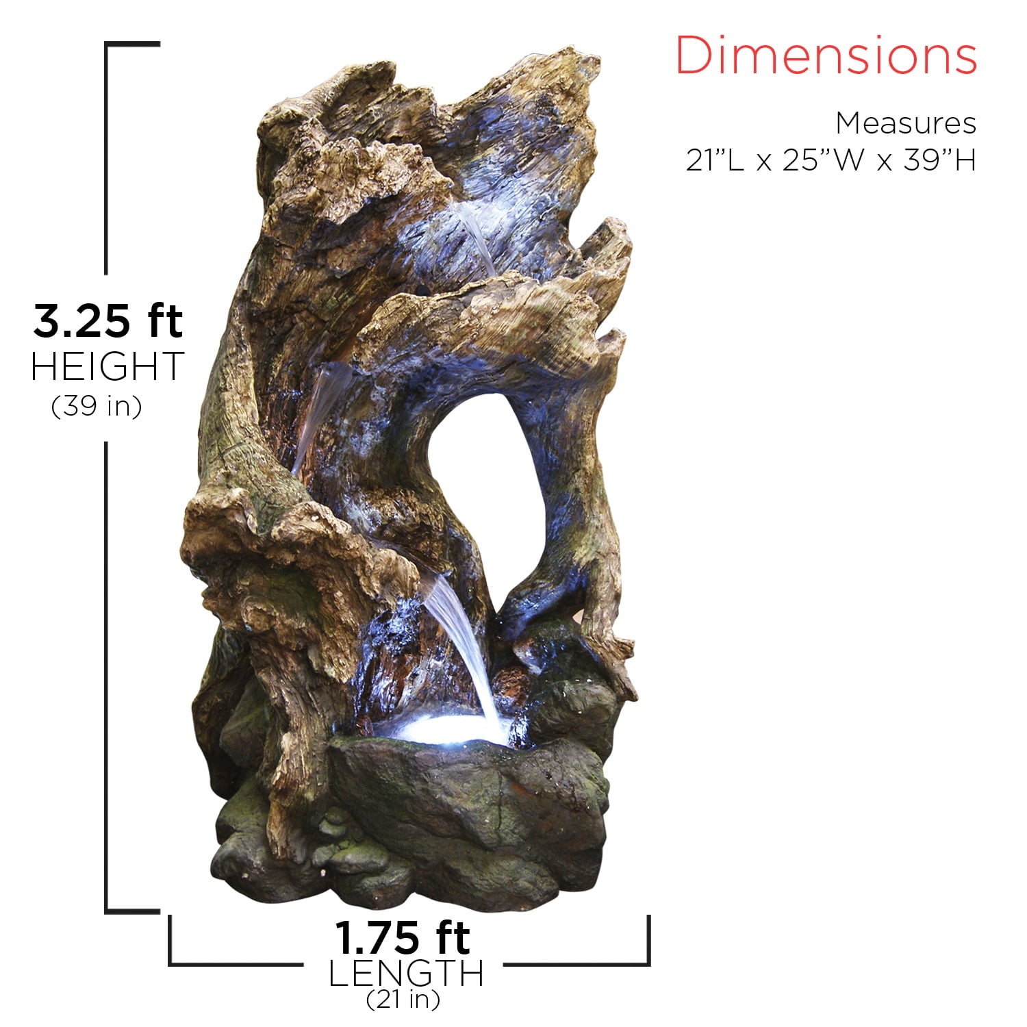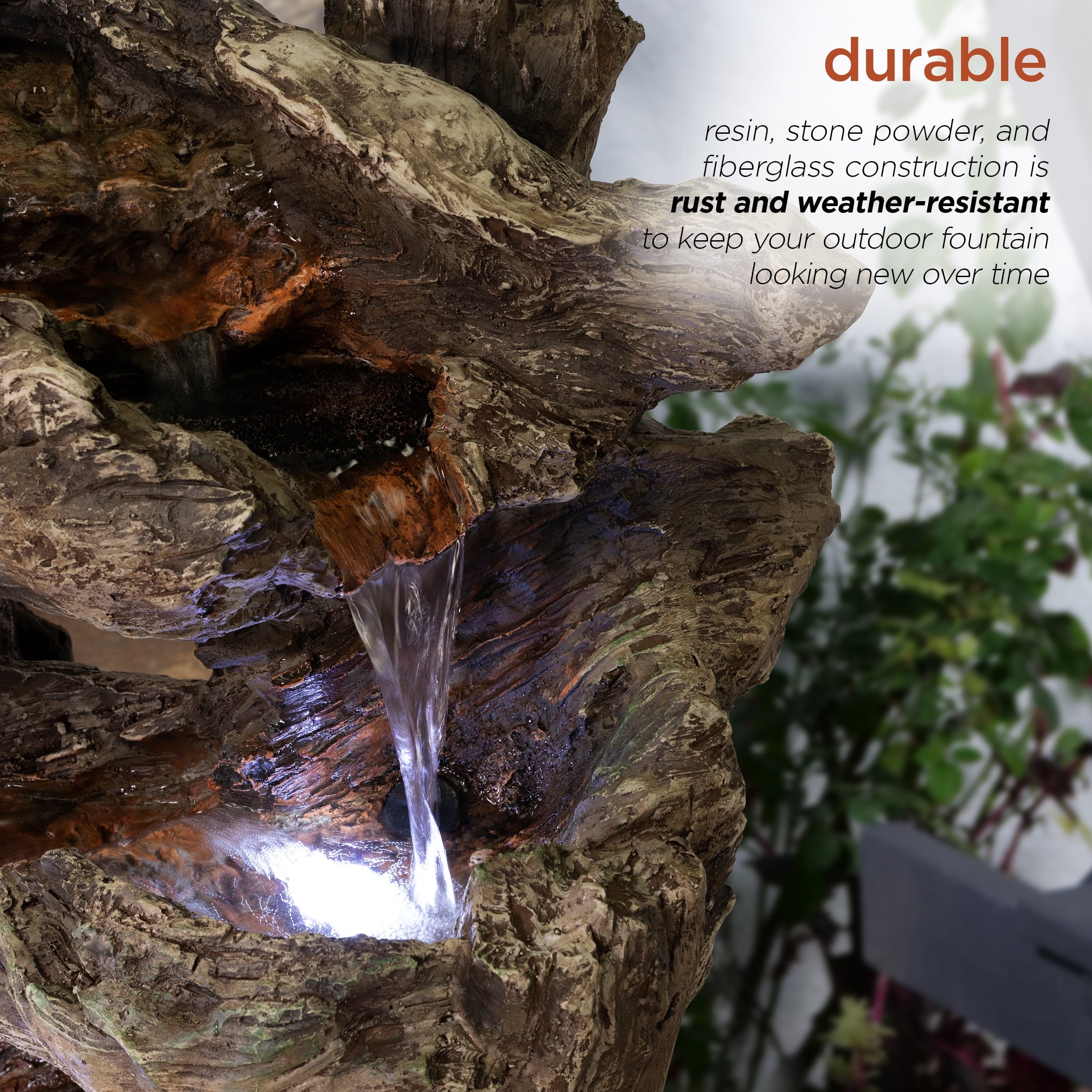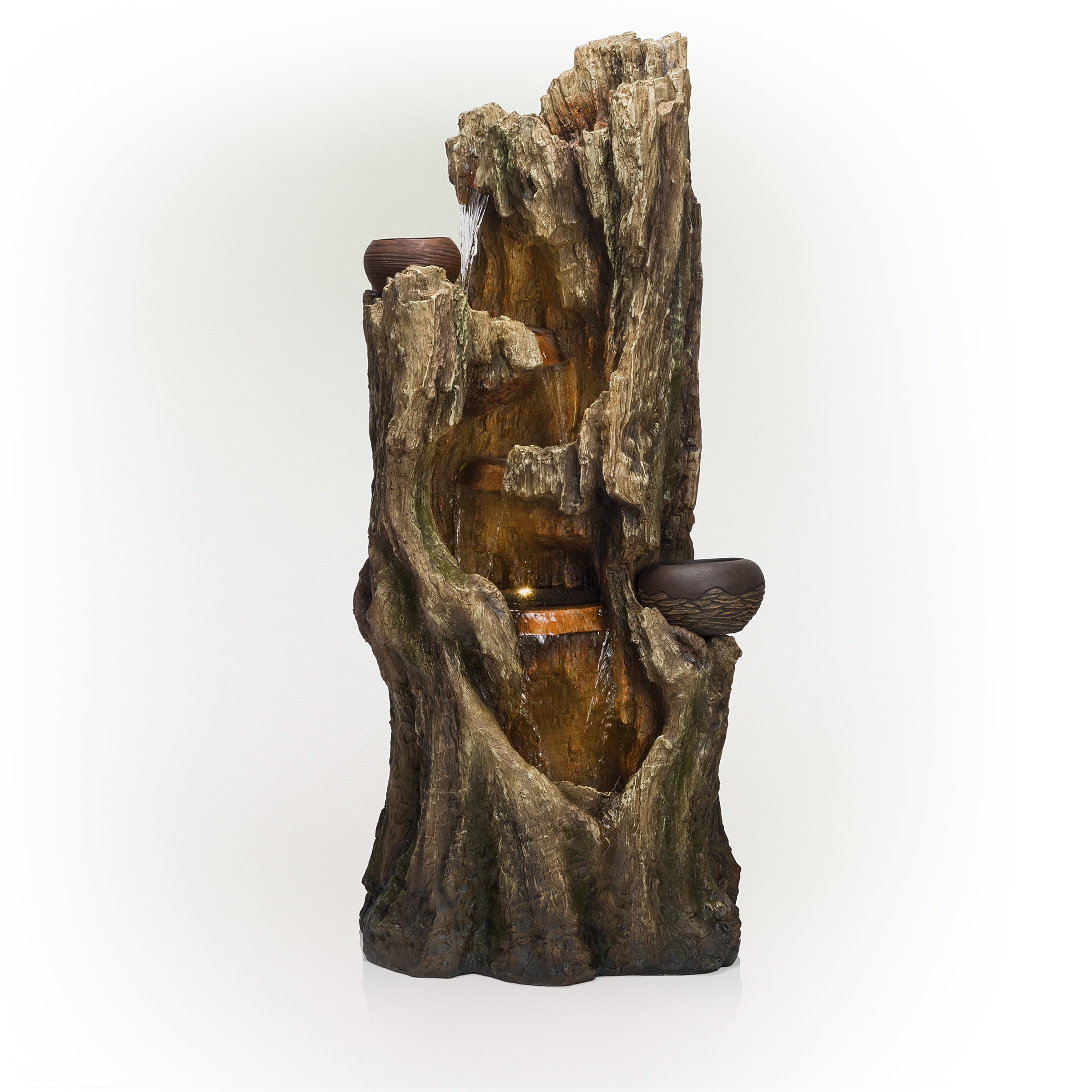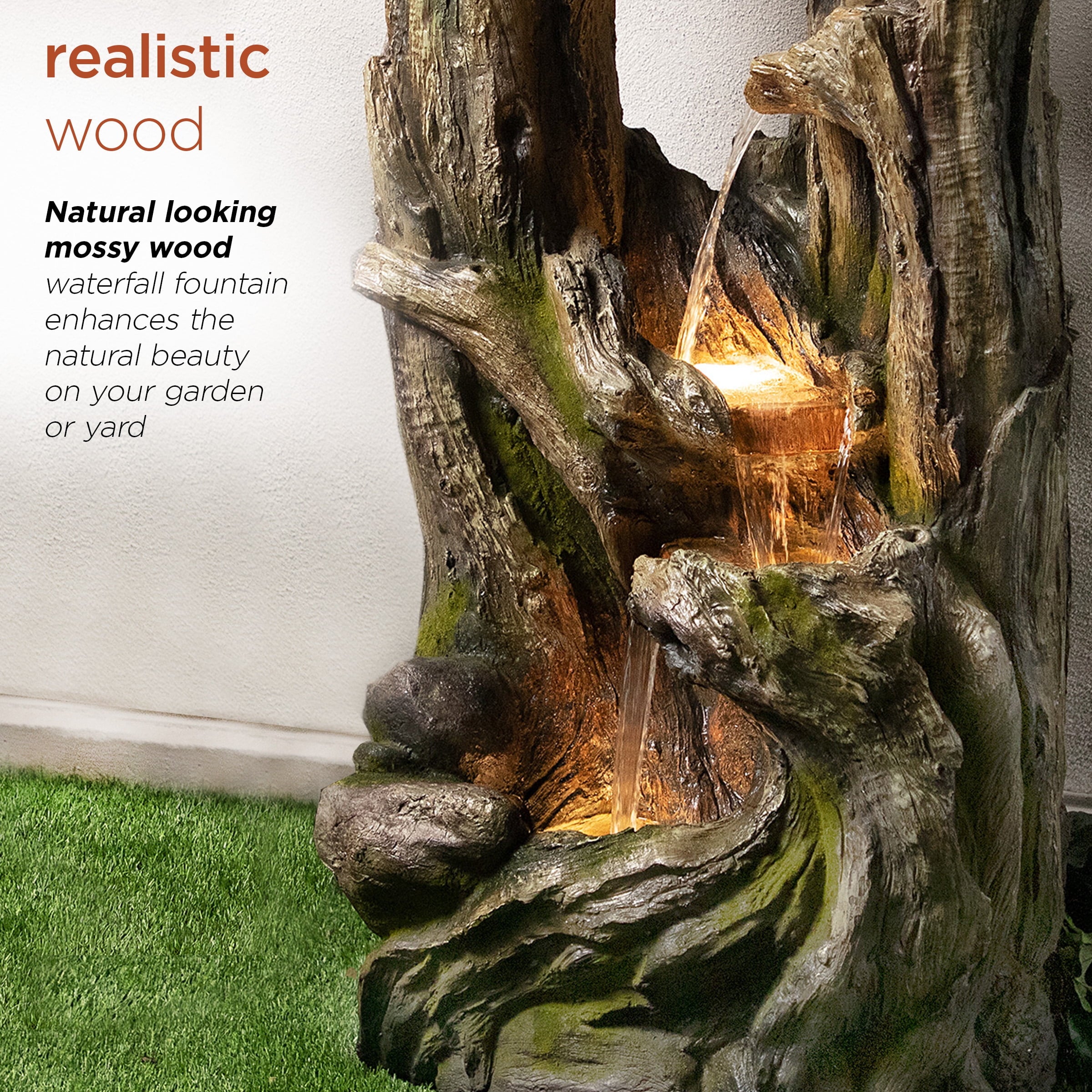 The Alpine Corporation Cascading Willow Tree Fountain with LED Lights features 4 warm white LED light that’s perfect for your home. The interior pump keeps water flowing by just plugging it in (1.8m cord is included). Constructed of weather-resistant durable resin, stone powder and fiber glass for lasting use. Create a peaceful, meditative atmosphere even in an urban jungle as you rejuvenate with our natural style fountains. You will feel like you are sitting next to a majestic mountain stream in the great outdoors all while relaxing in your own lush garden. The sound of birds frolicking to the running water will create the tranquil environment of everyone’s envy. With the water gently cascading over natural-looking stone, Alpines cascading fountain is sure to be a vivid focal point to your outdoor décor.